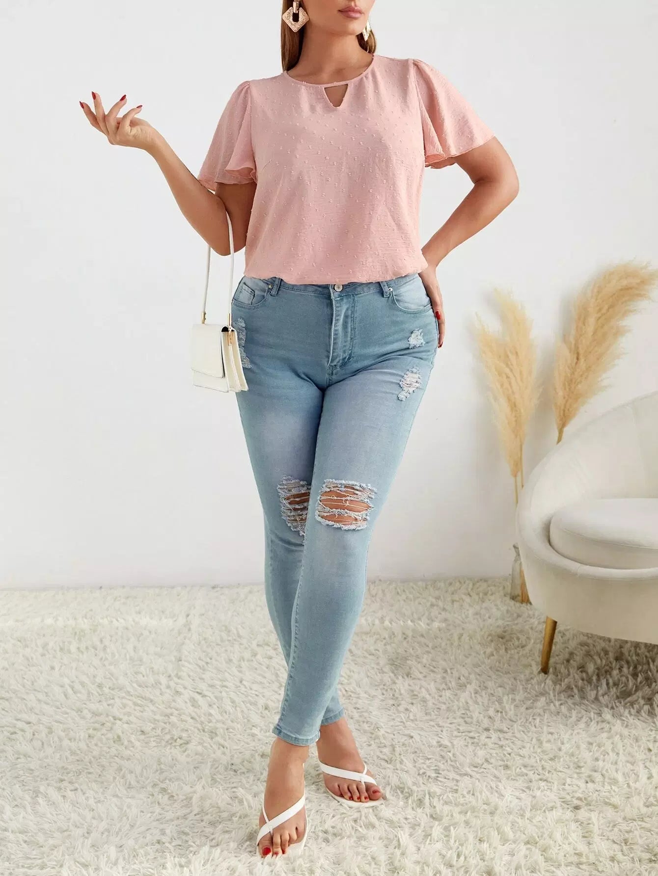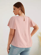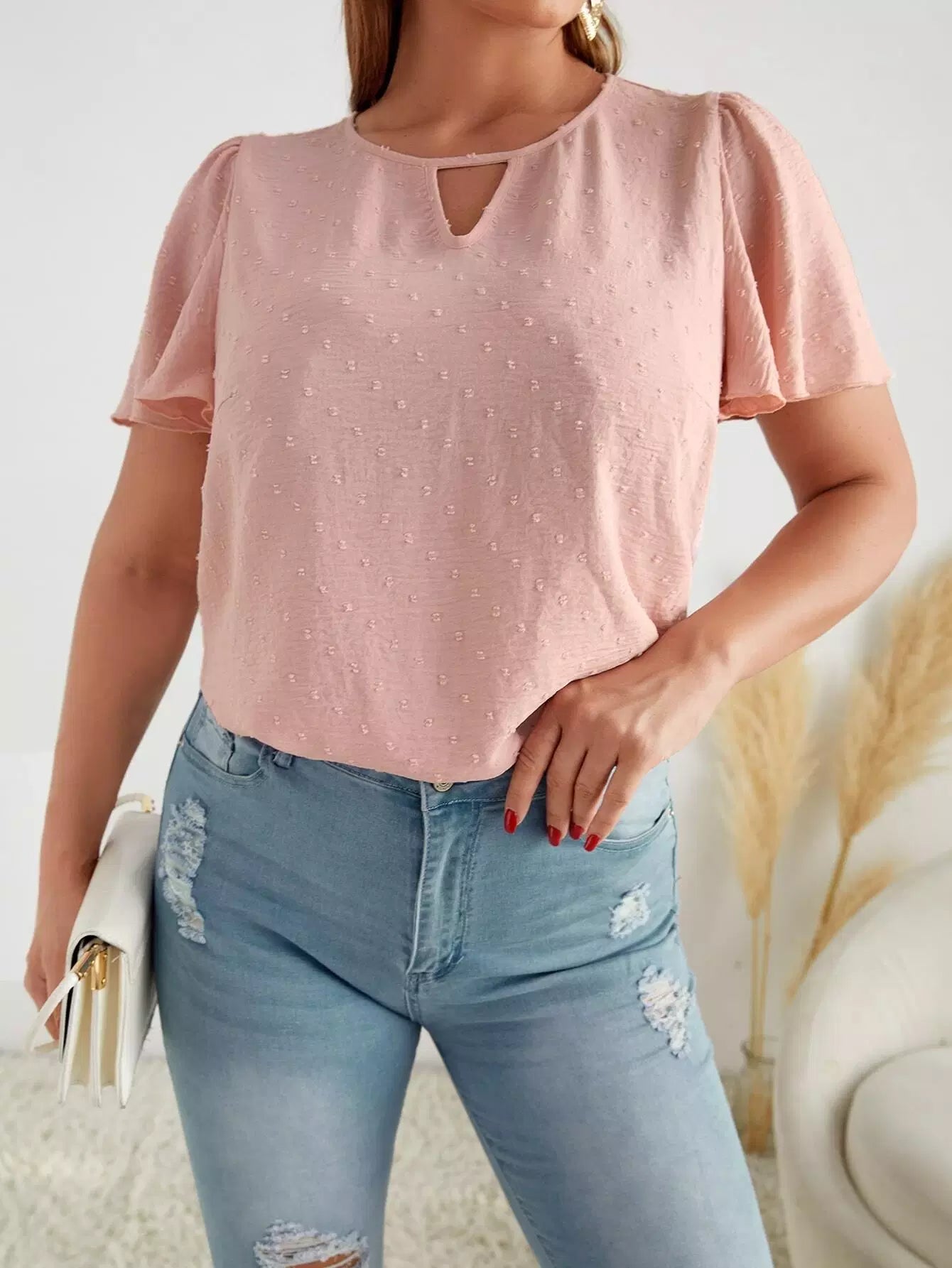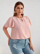 Plus Keyhole Neck Swiss Dot Butterfly Sleeve Blouse