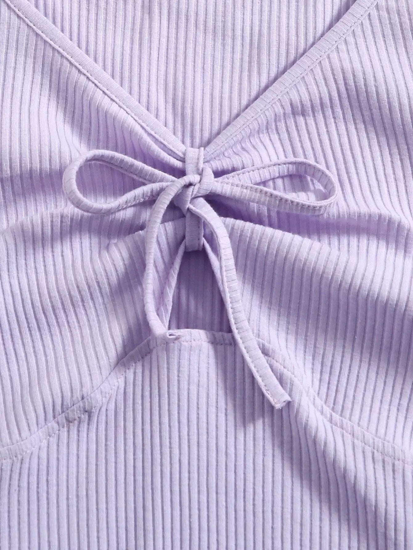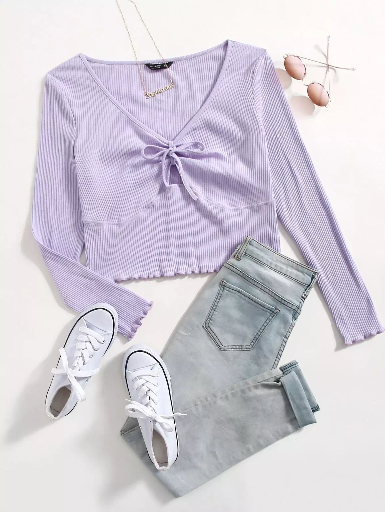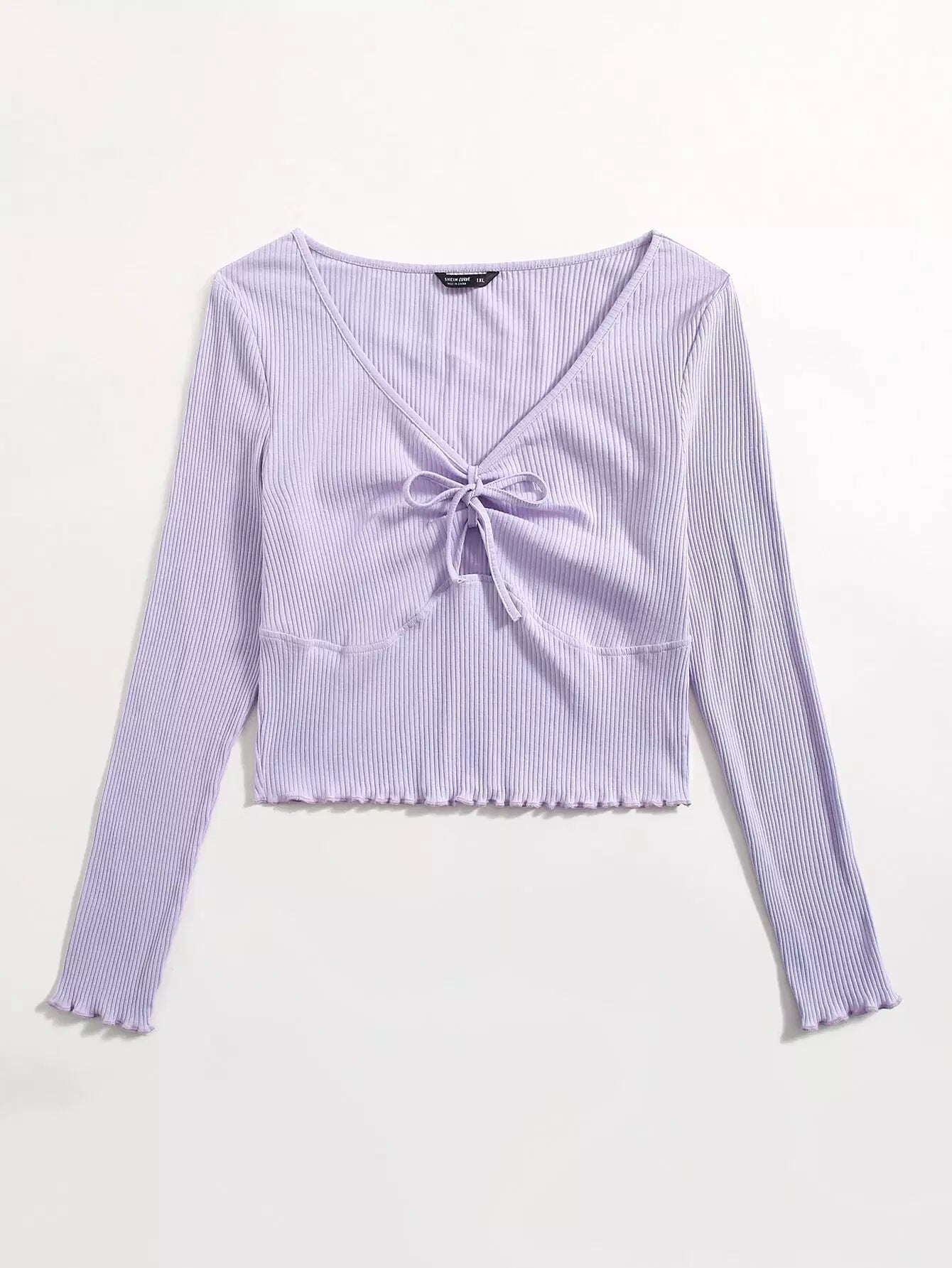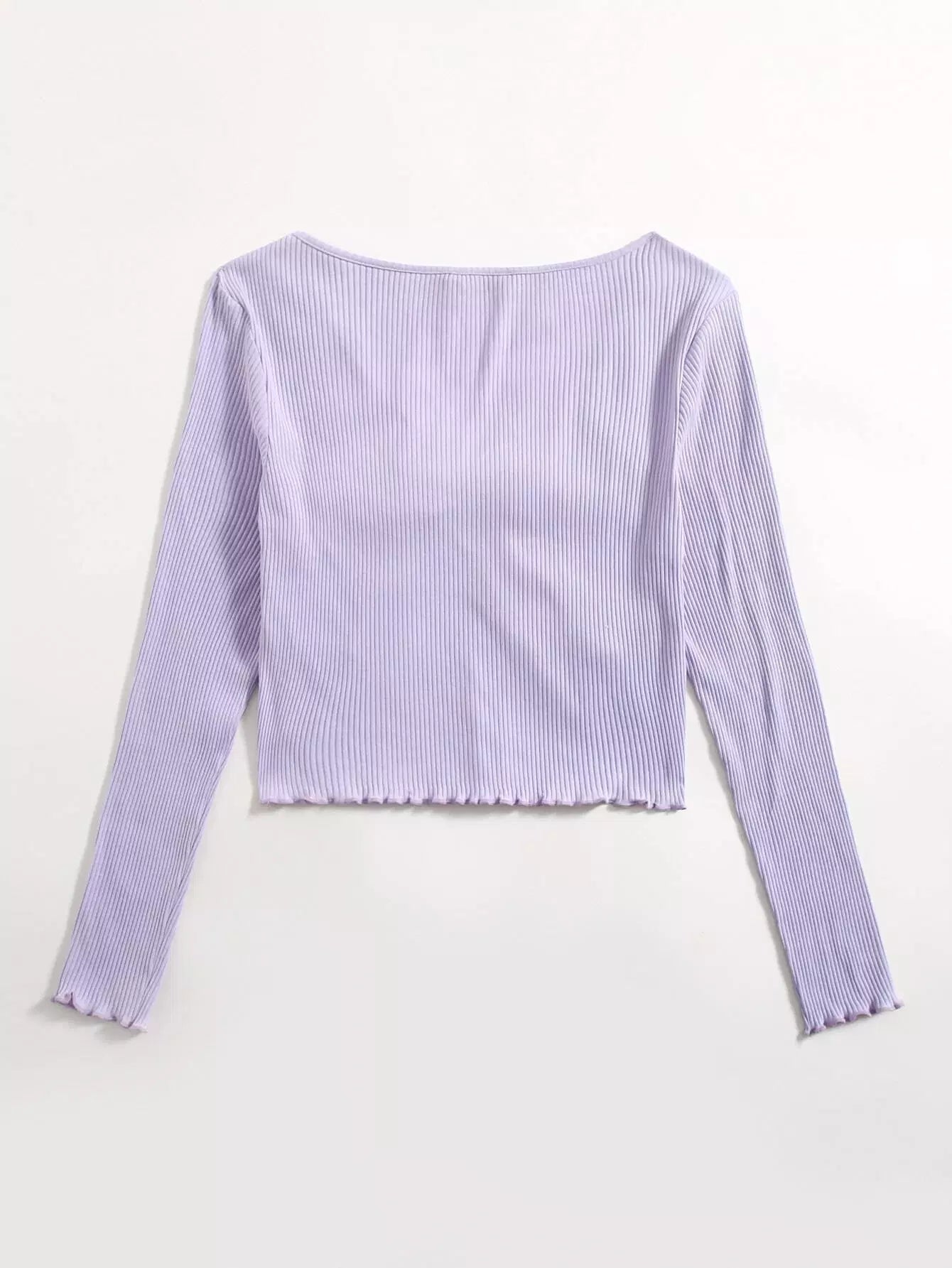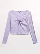 Plus Knot Front Lettuce Trim Rib-knit Tee