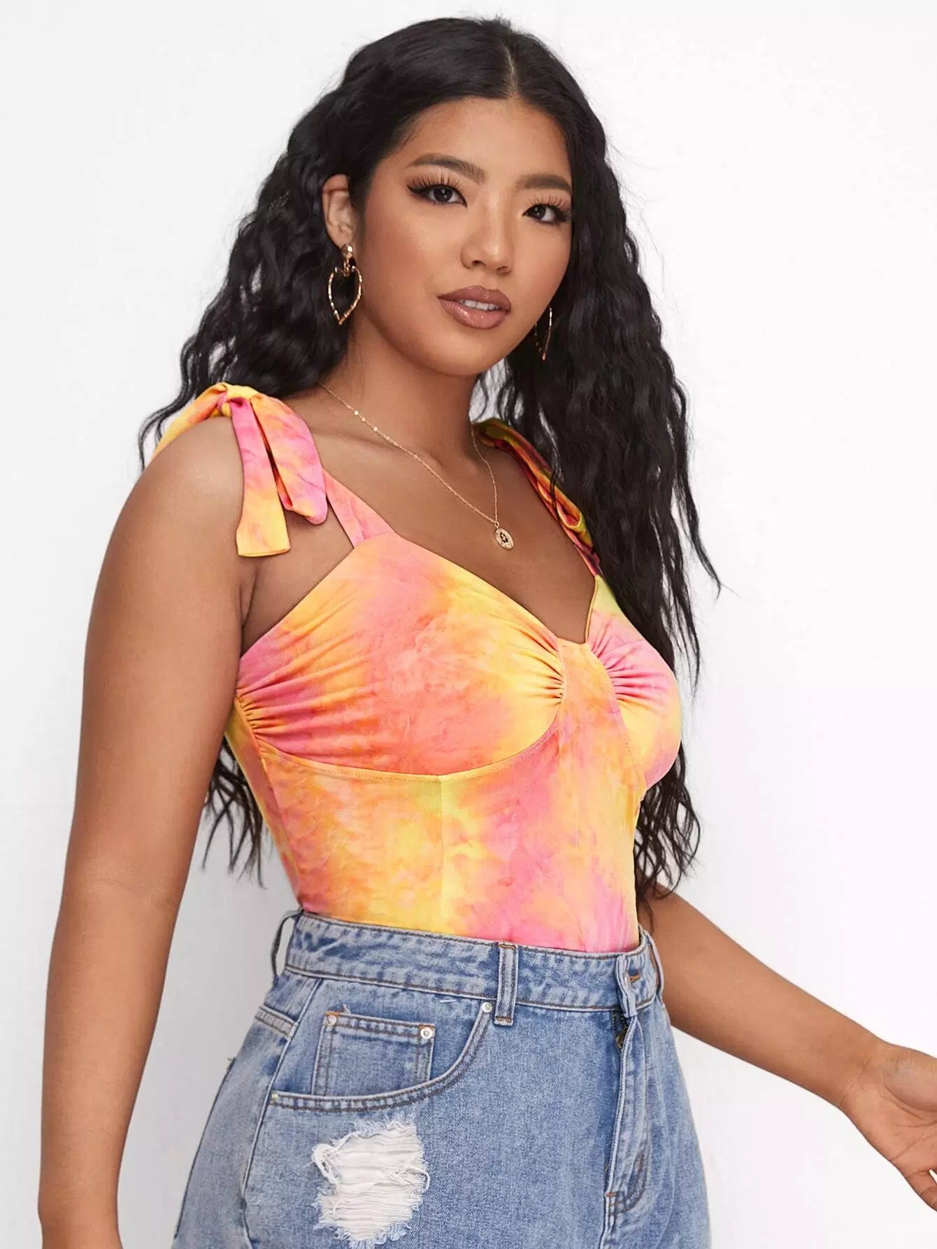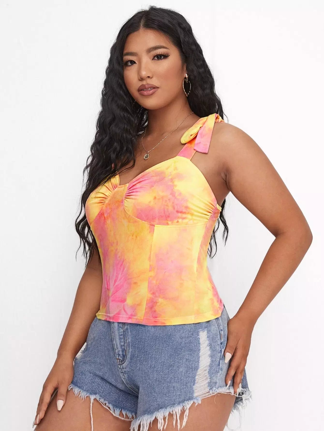 Women - Plus Knot Shoulder Tie Dye Cami Top