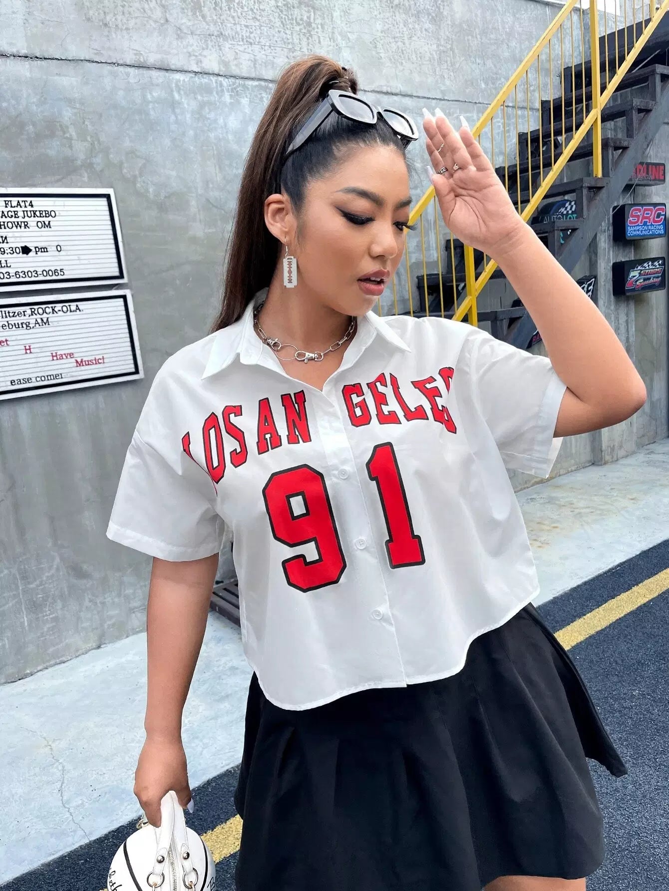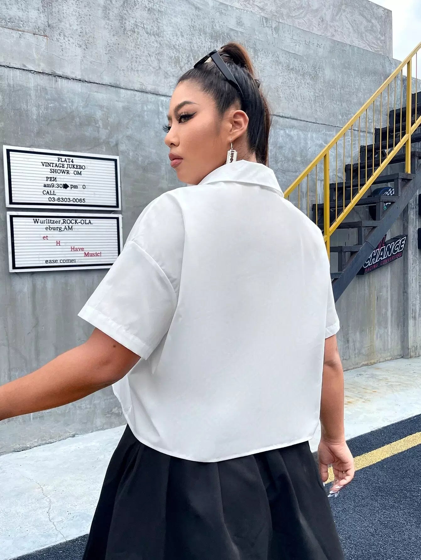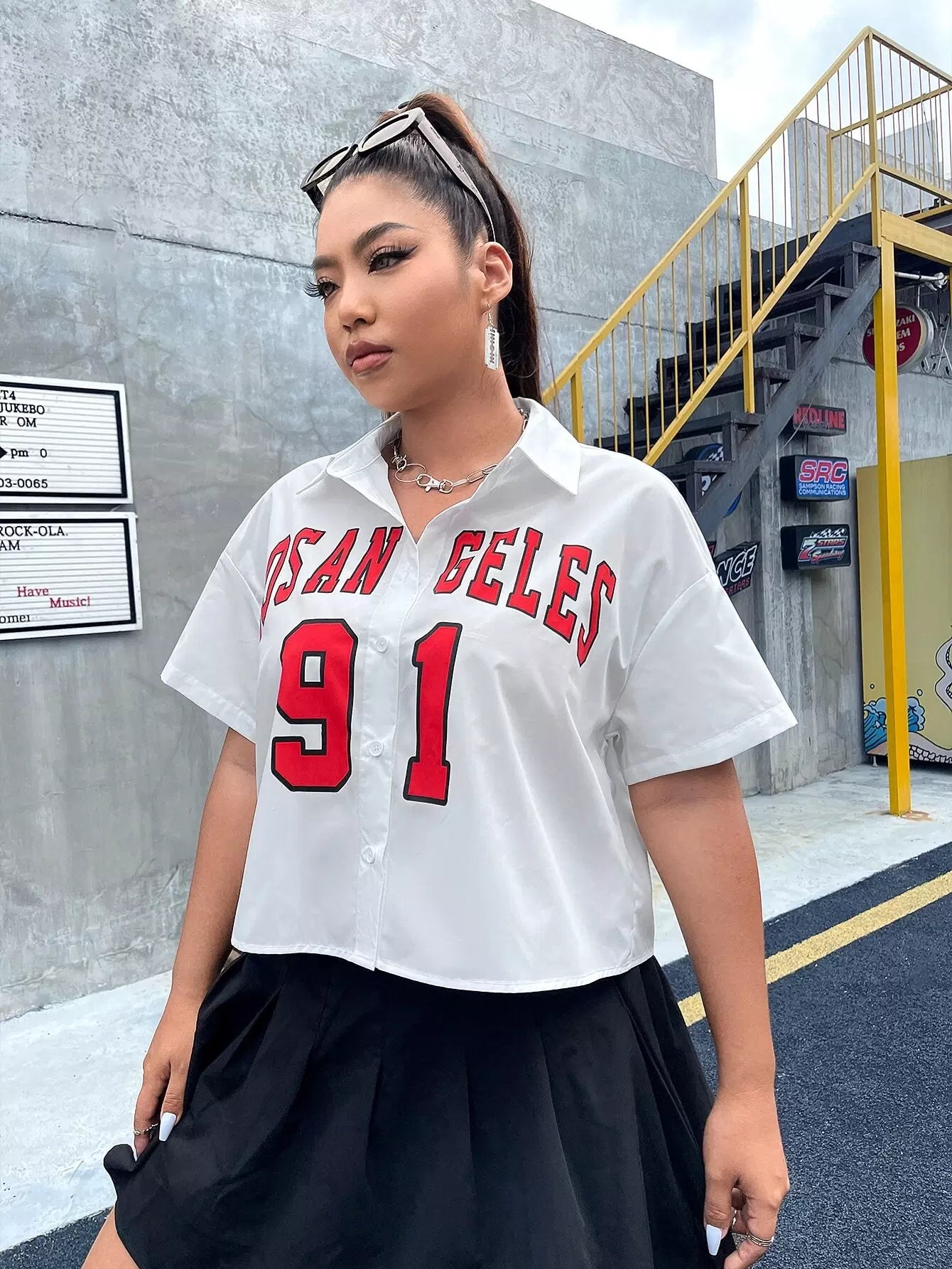 Plus Letter Graphic Button Front Shirt