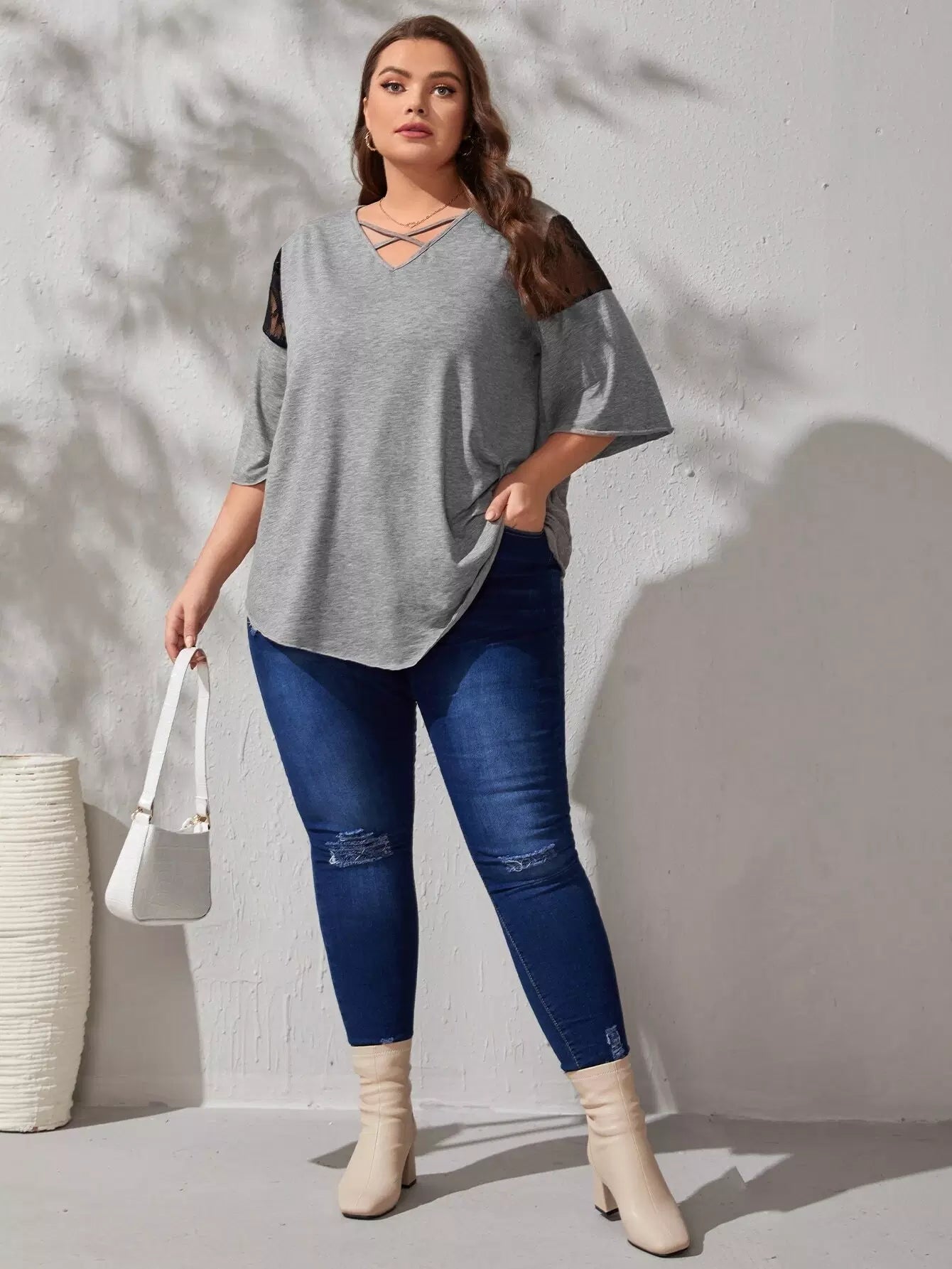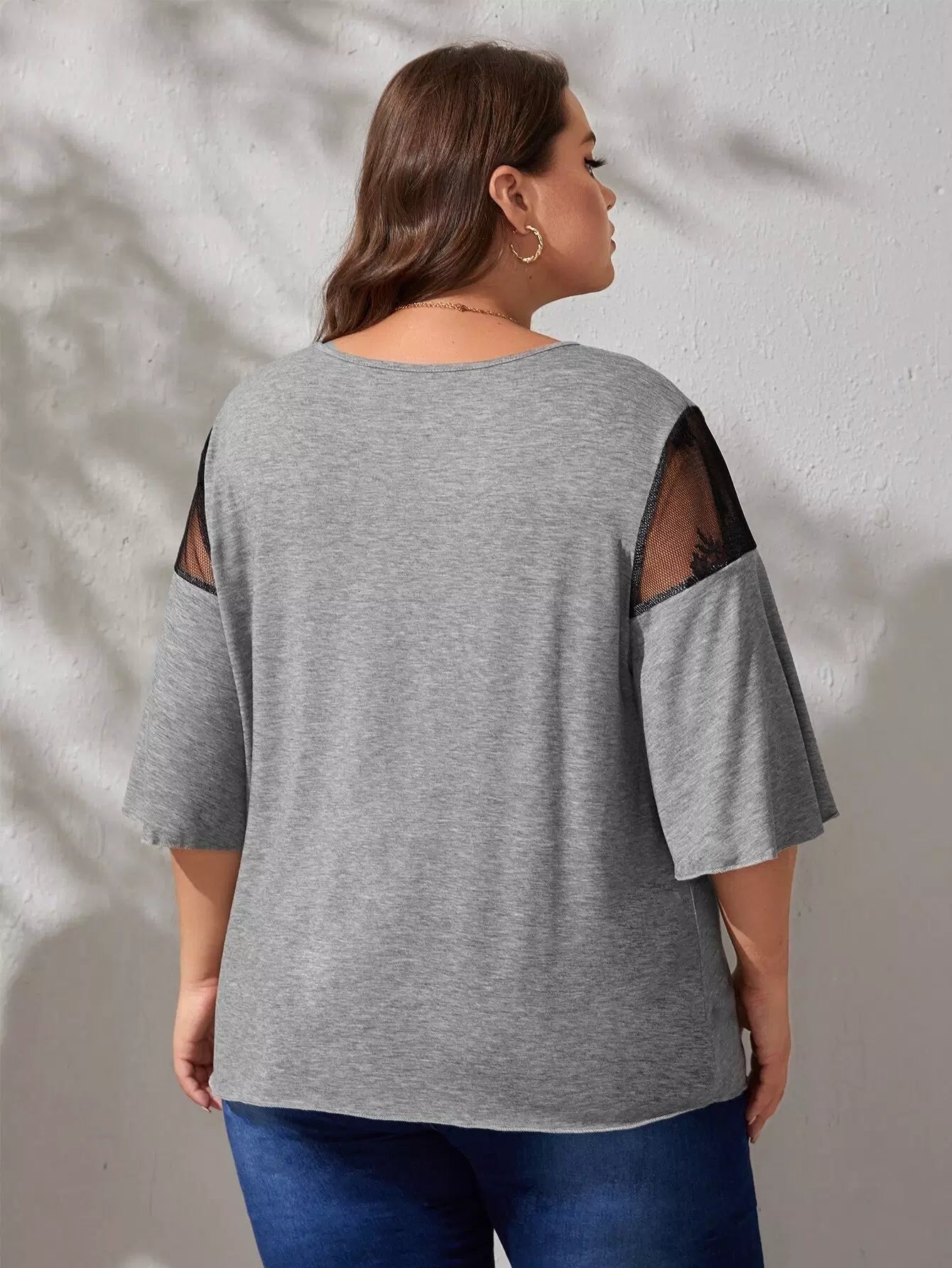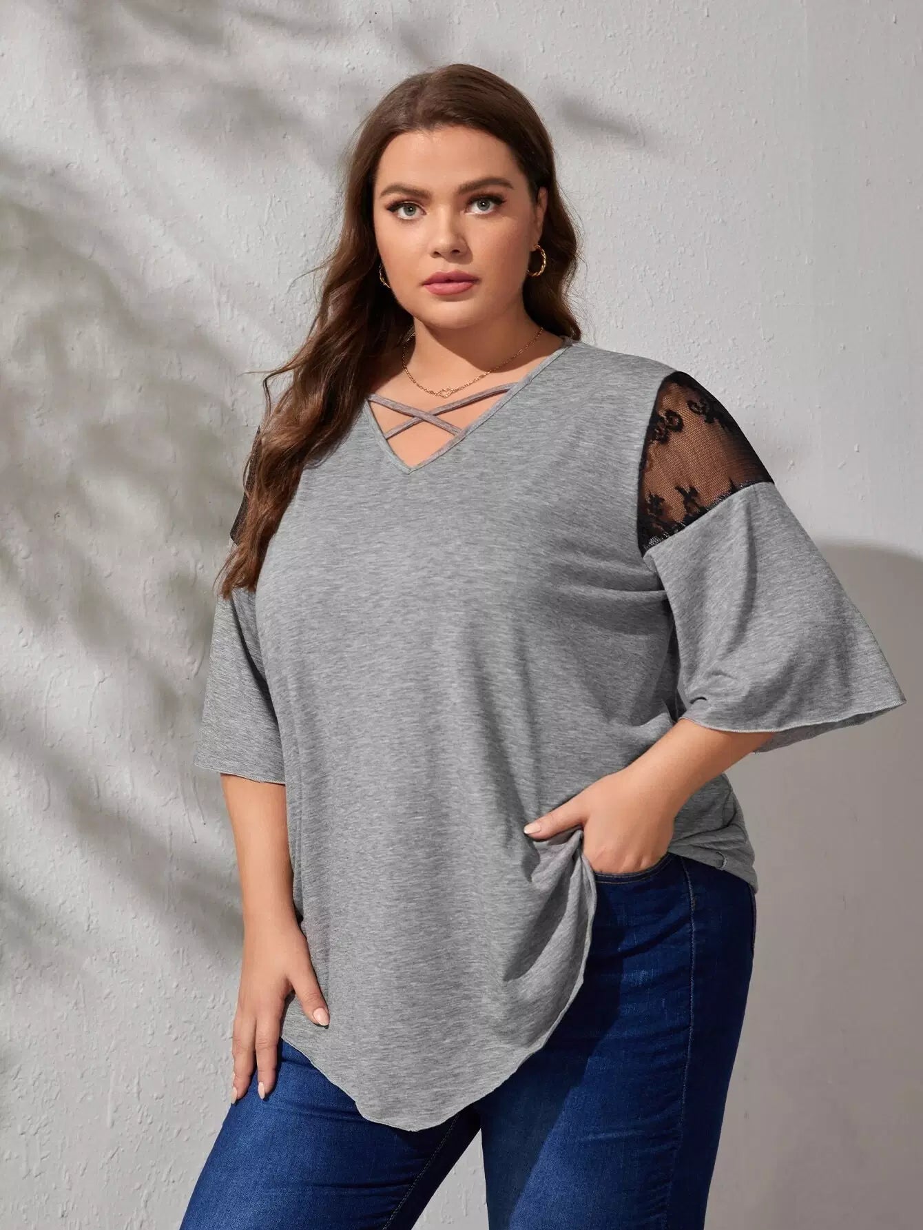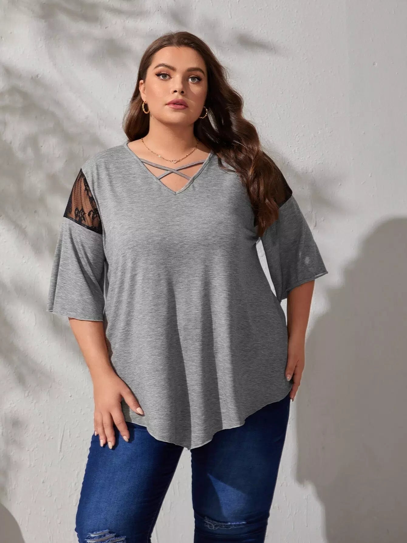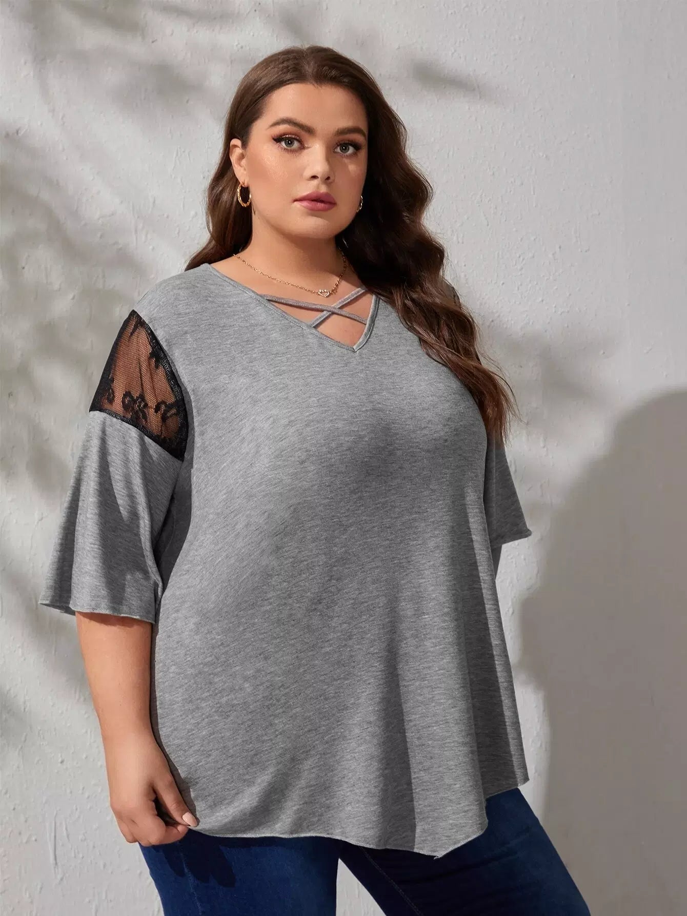 Plus Mesh Insert Criss Cross Tee