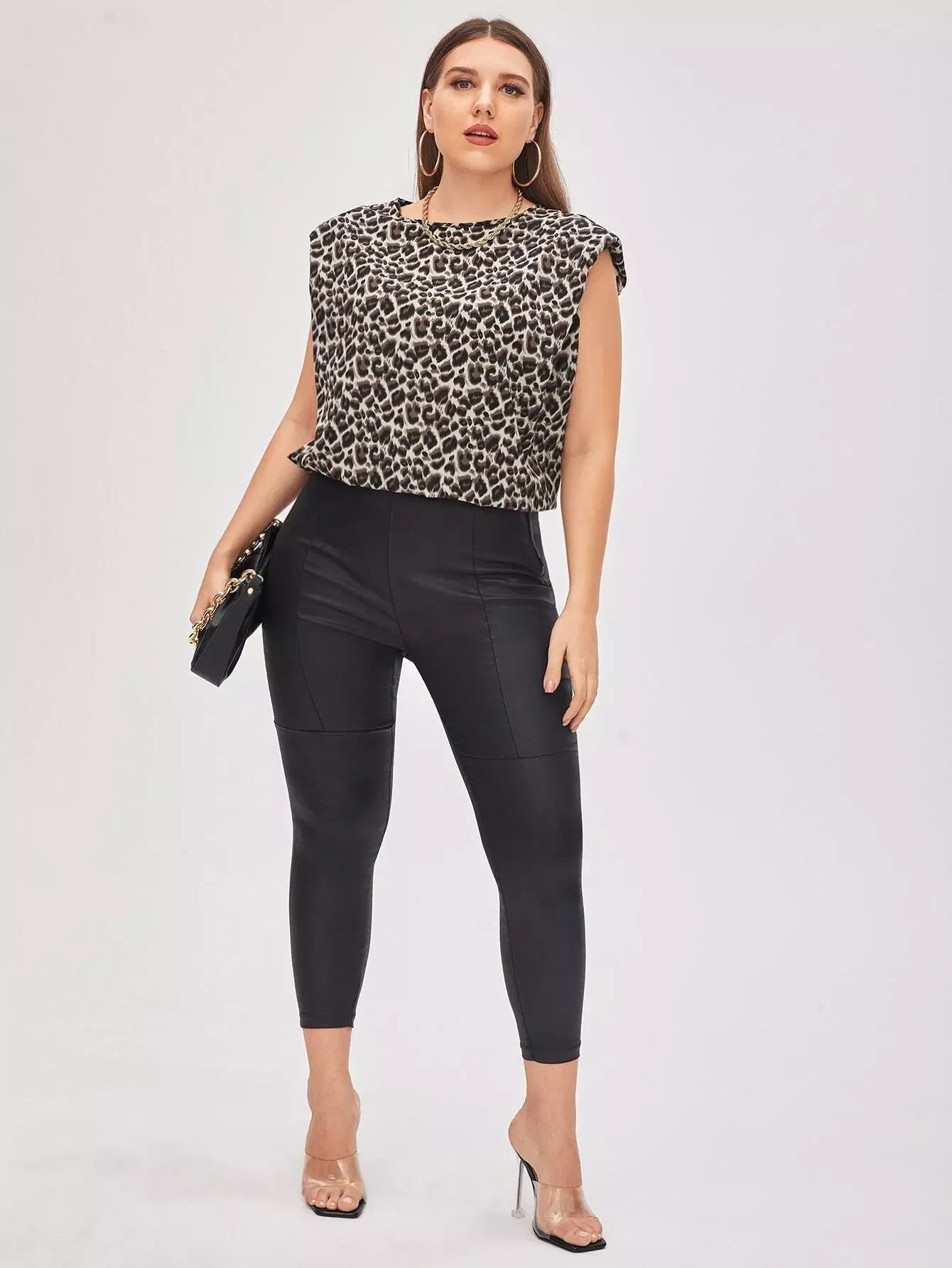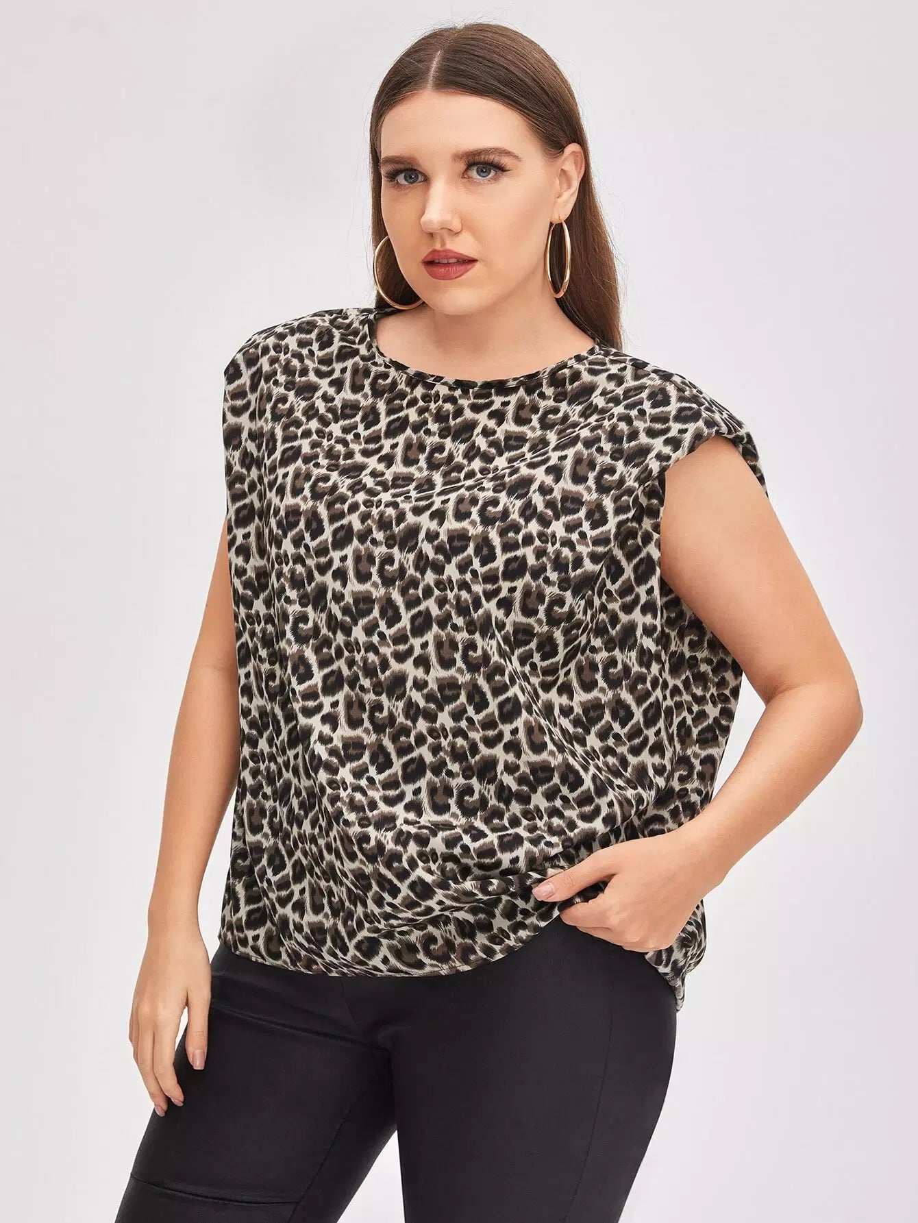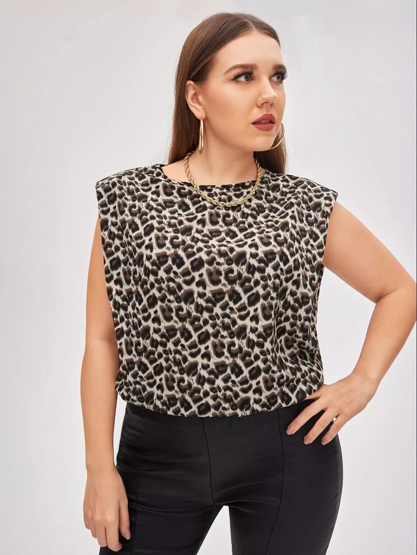 Plus Padded Shoulder Leopard Top