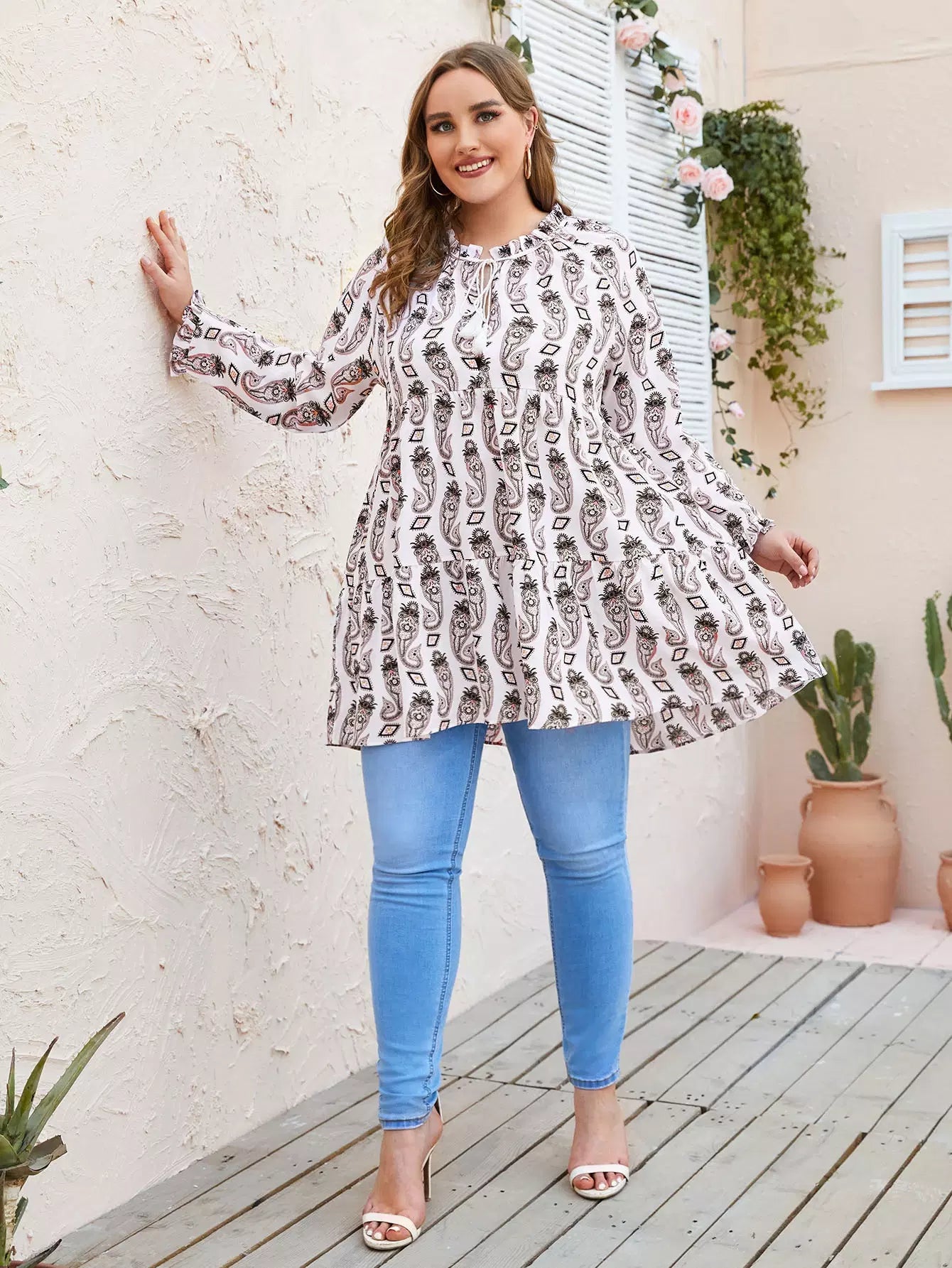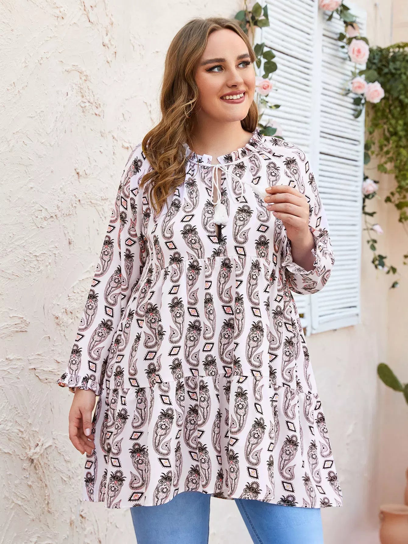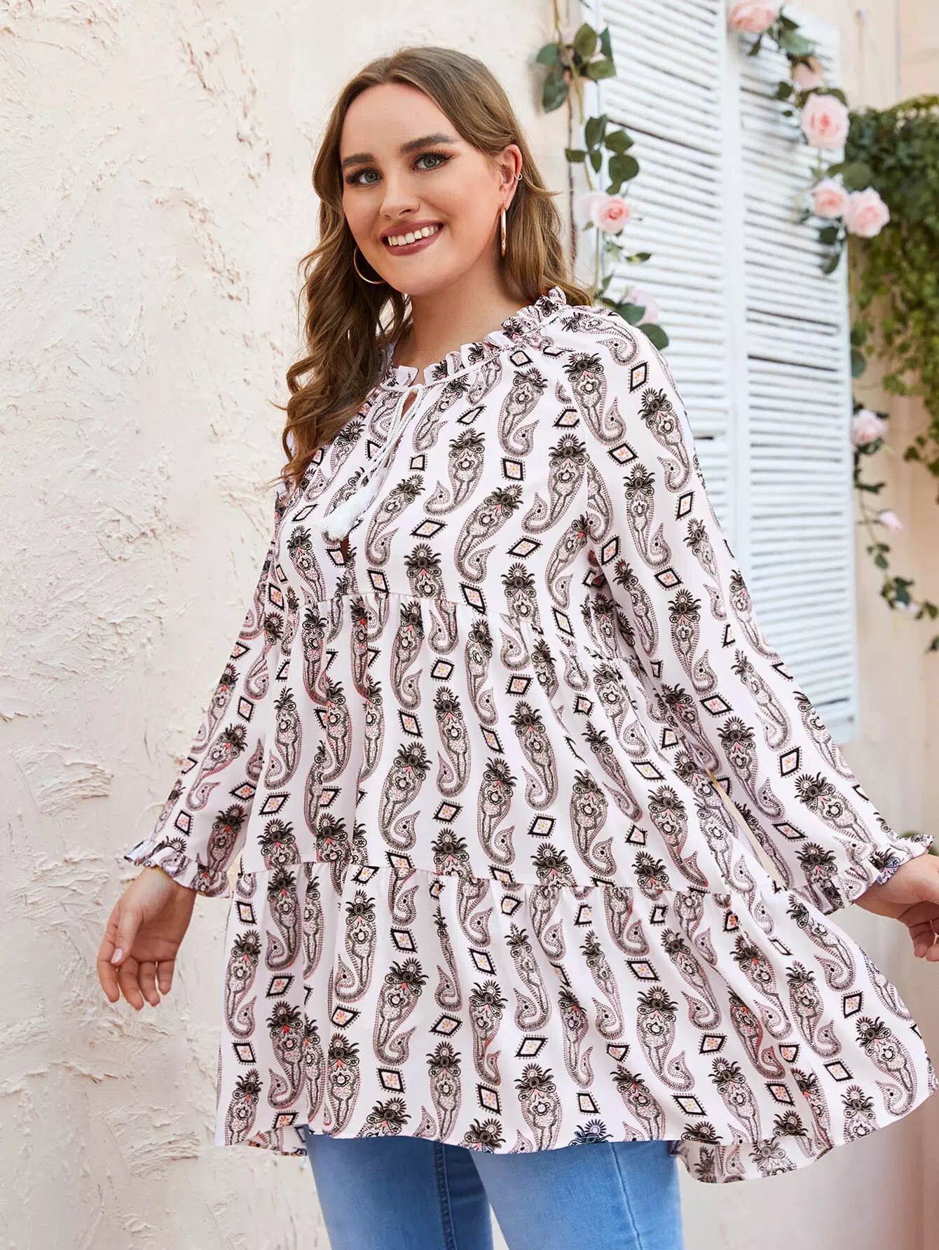 Plus Paisley Print Ruffle Hem Longline Blouse
