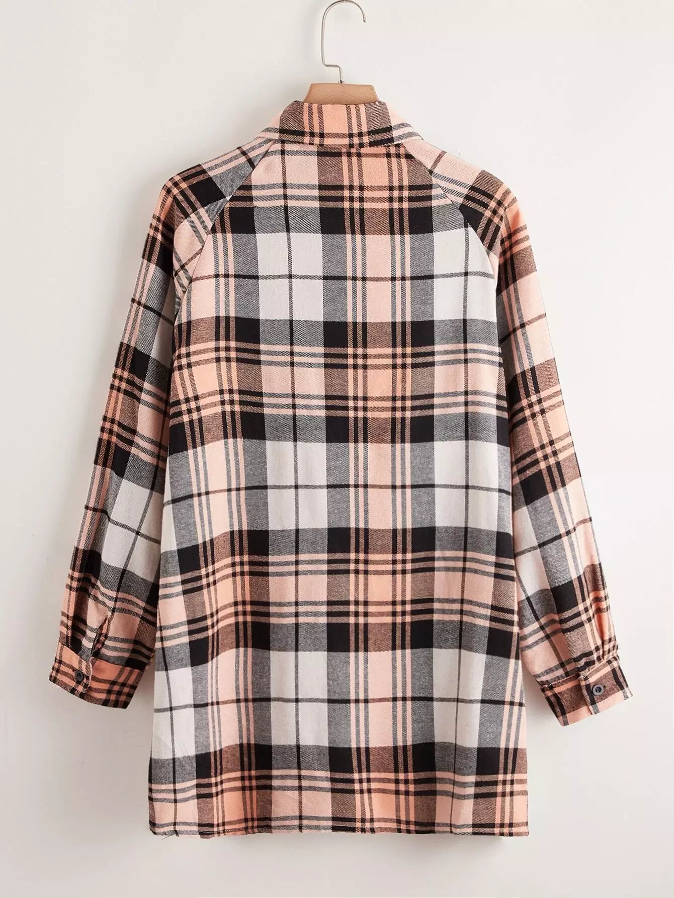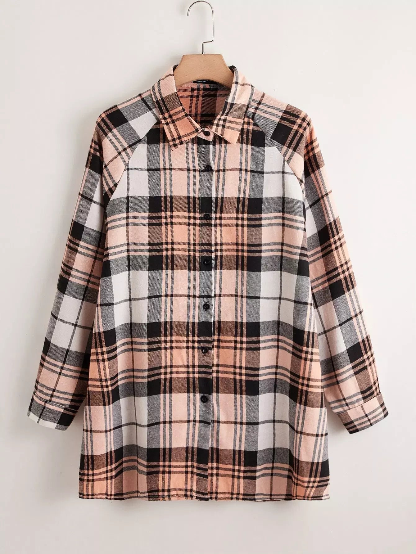 Plus Plaid Button Up Raglan Sleeve Blouse