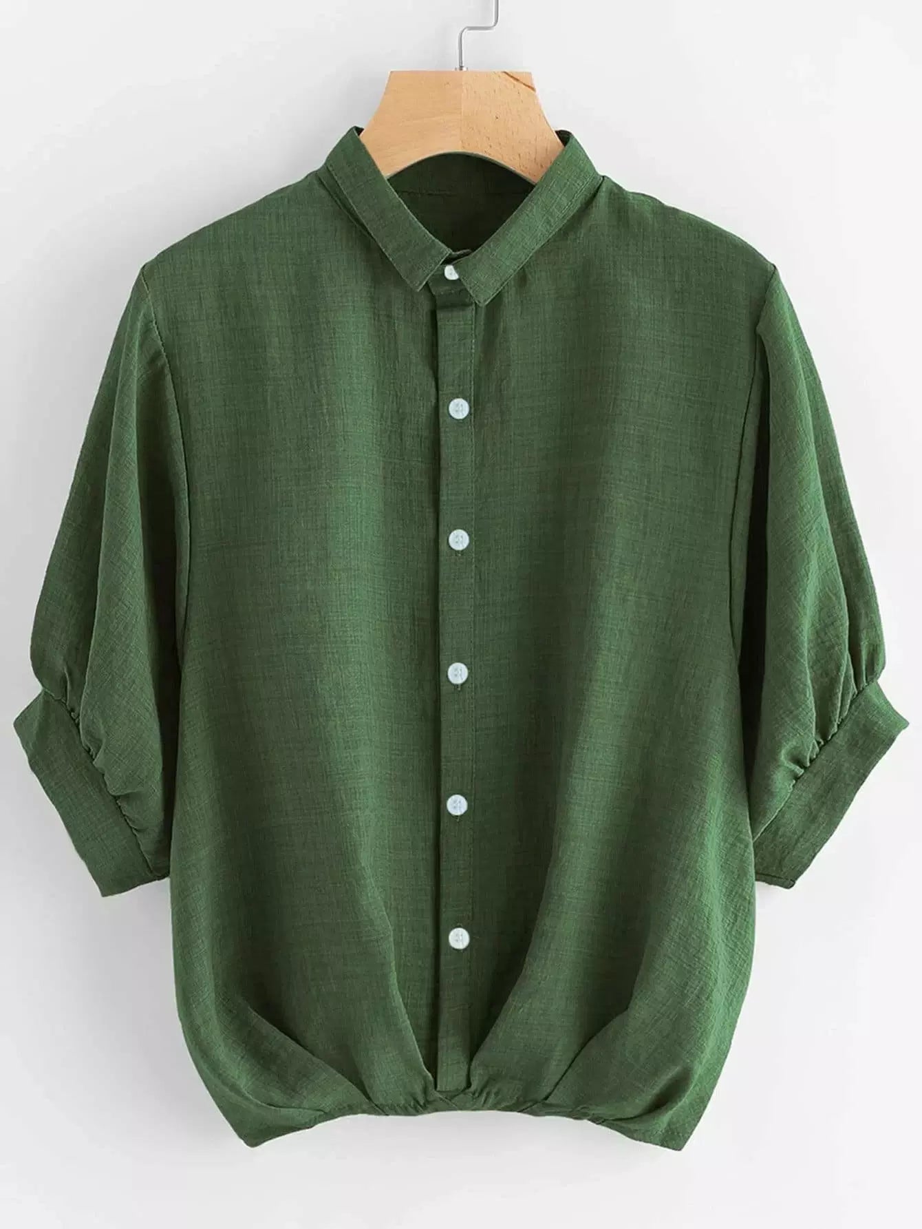 Women - Plus Puff Sleeve Collar Solid Shirt