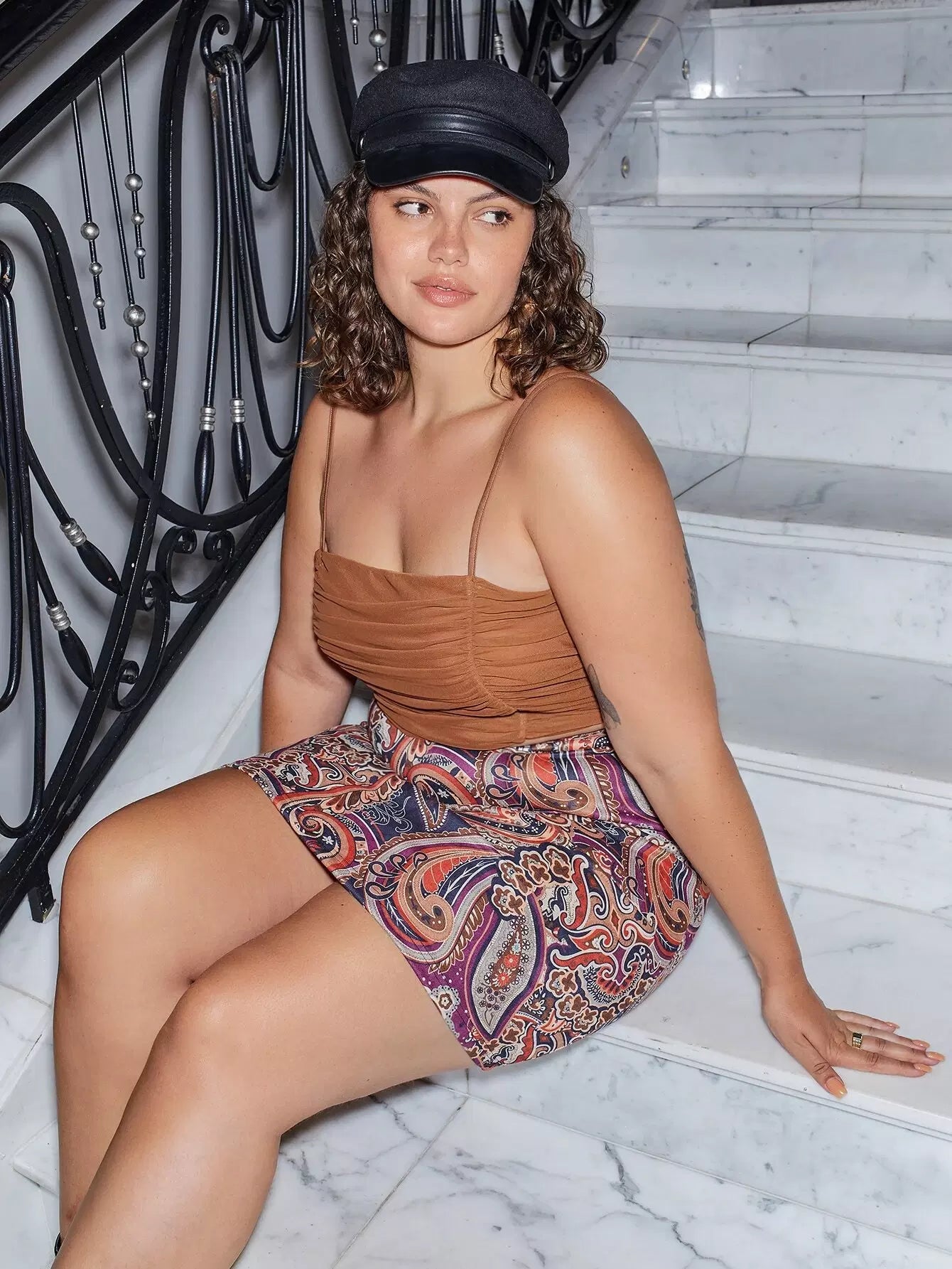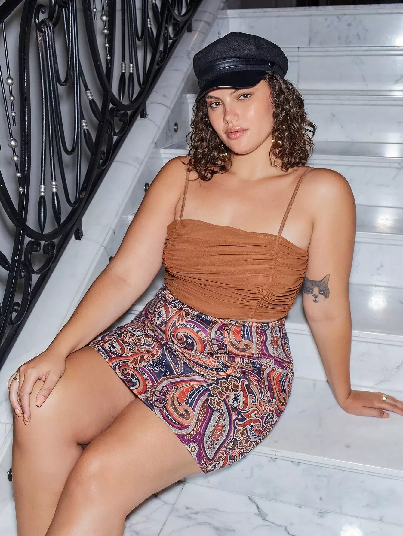 Plus Ruched Mesh Cropped Cami Top