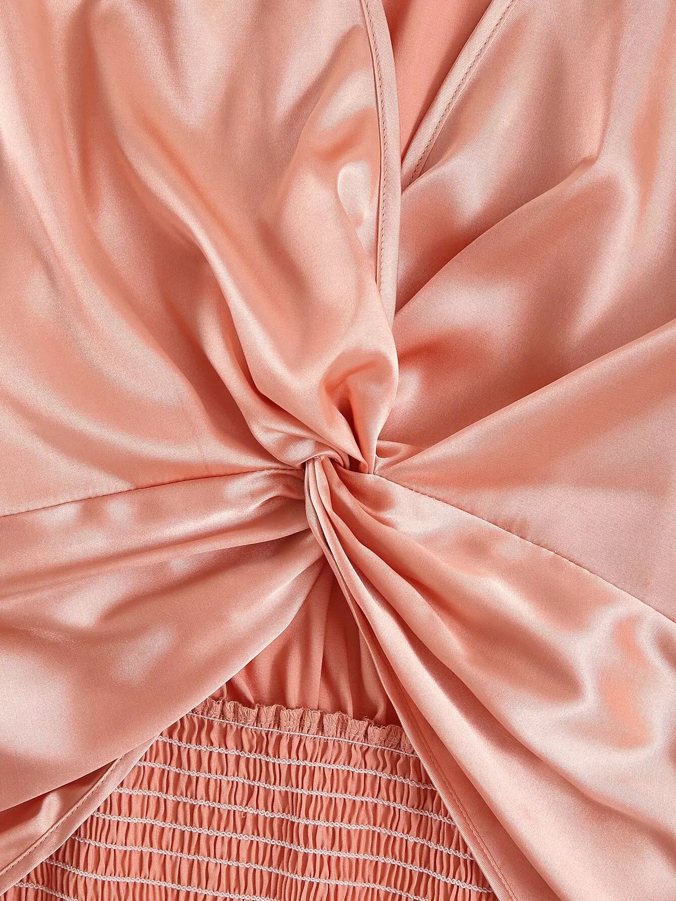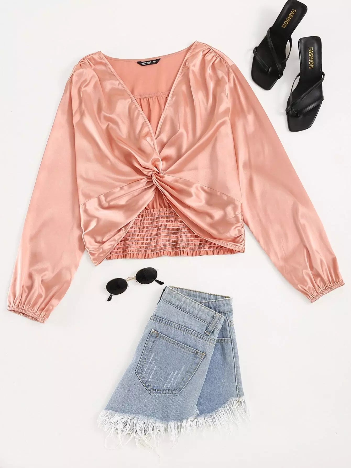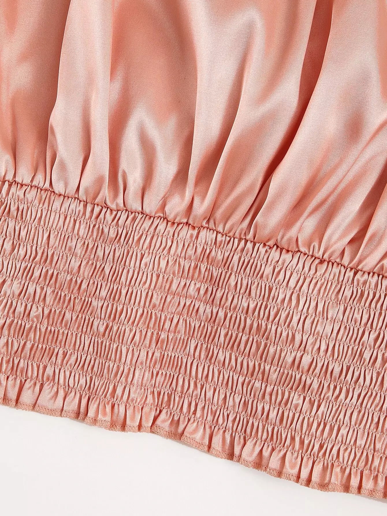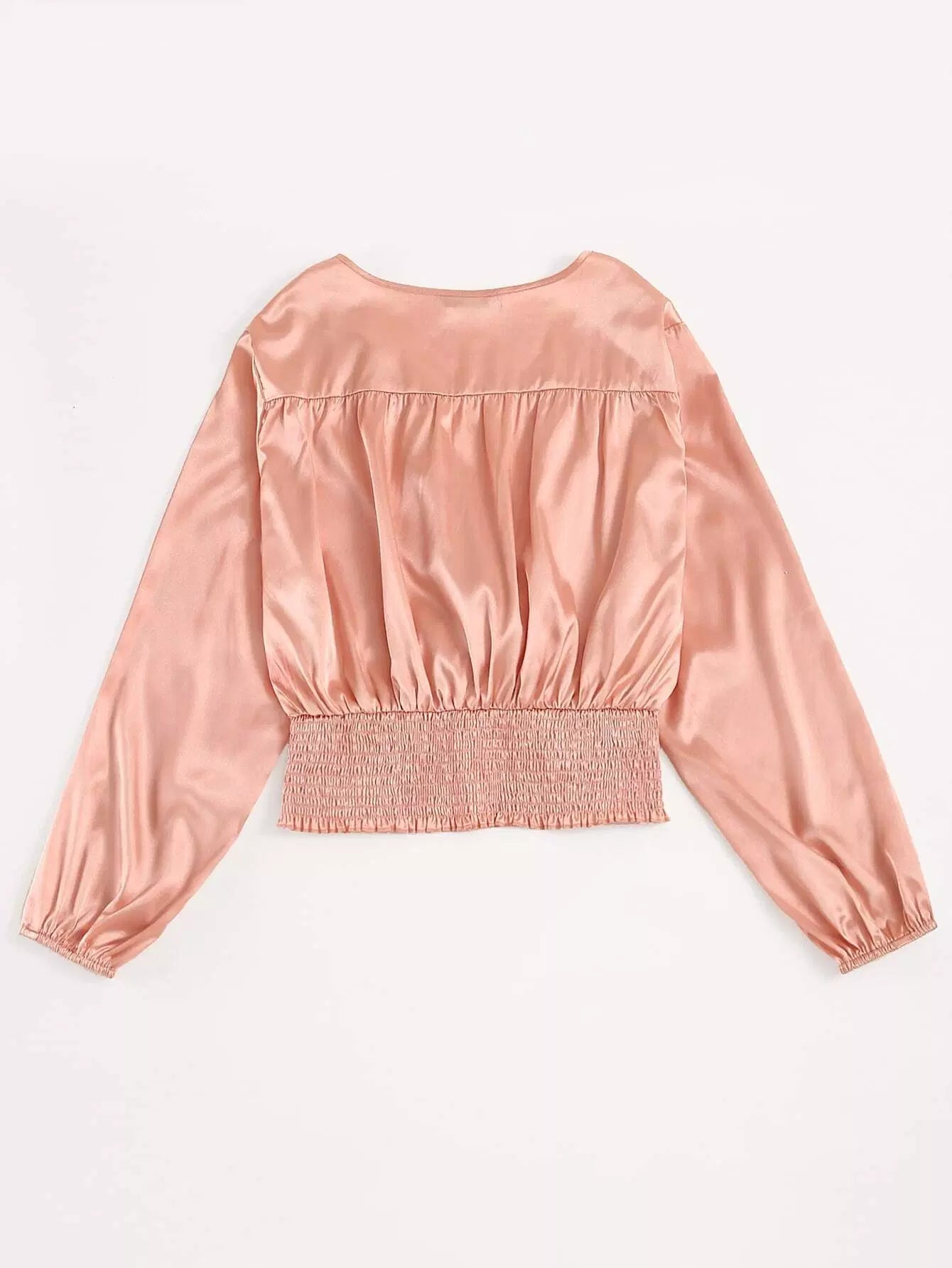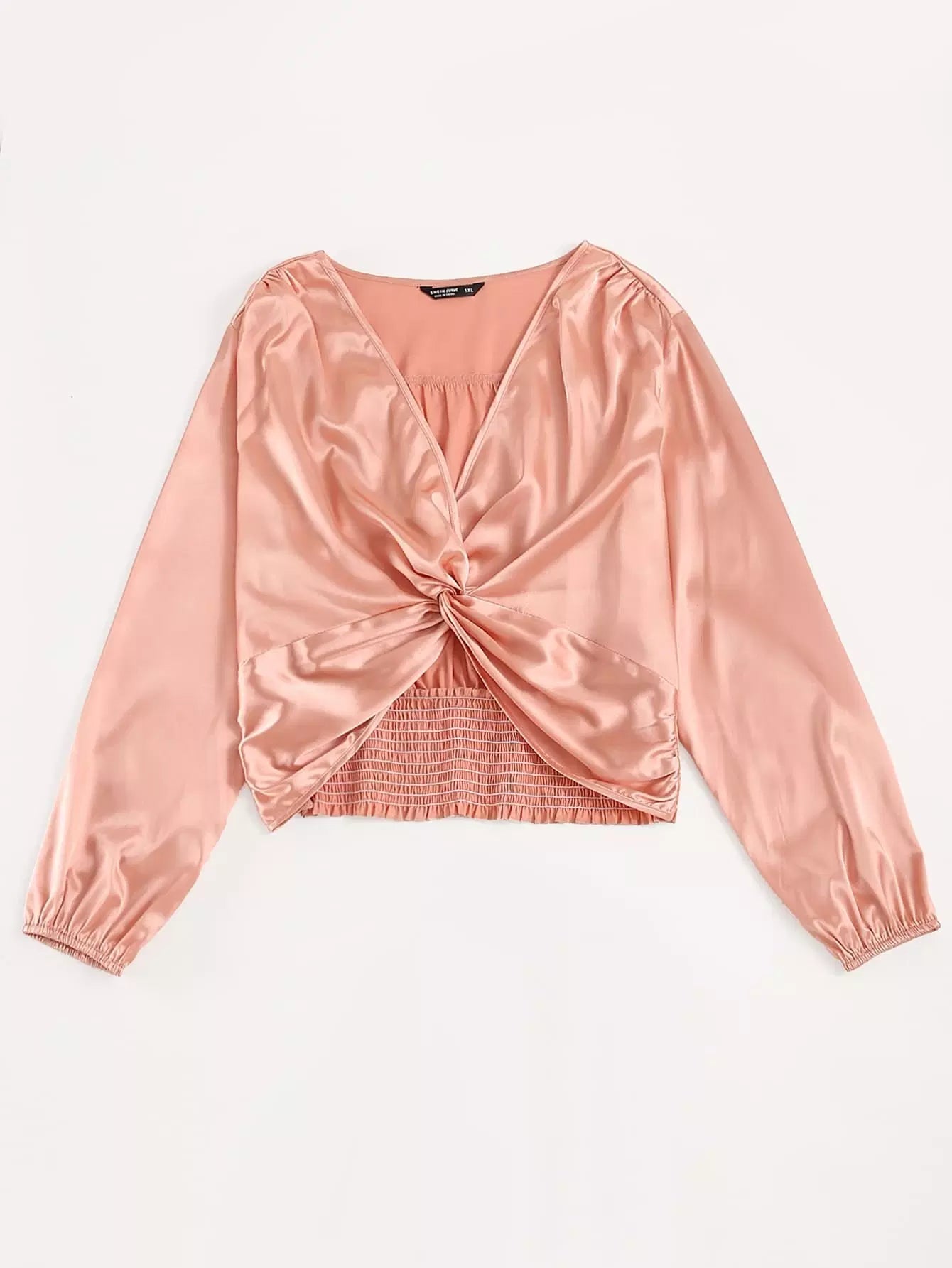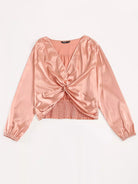 Plus Satin Shirred Back Twist Front Crop Blouse