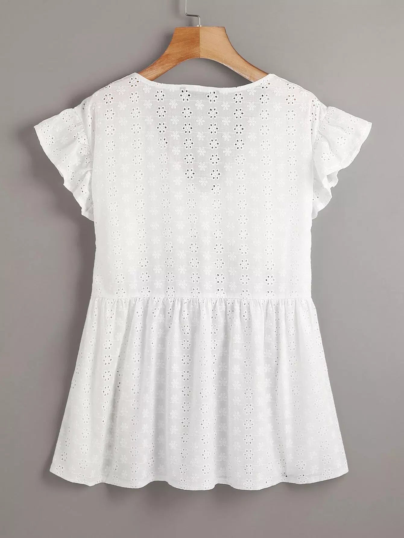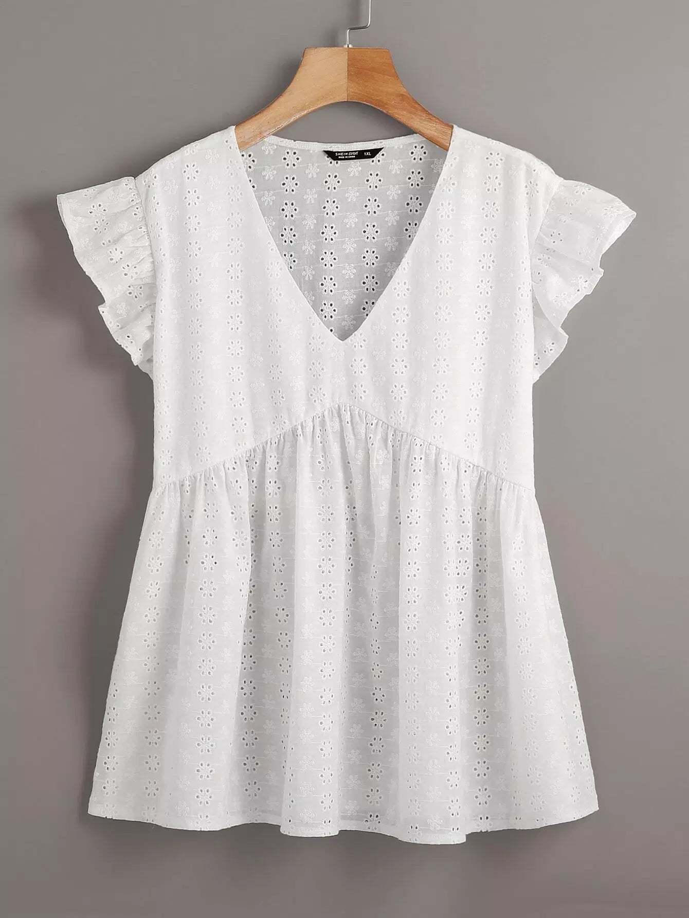 Plus Schiffy Ruffle Trim Peplum Blouse