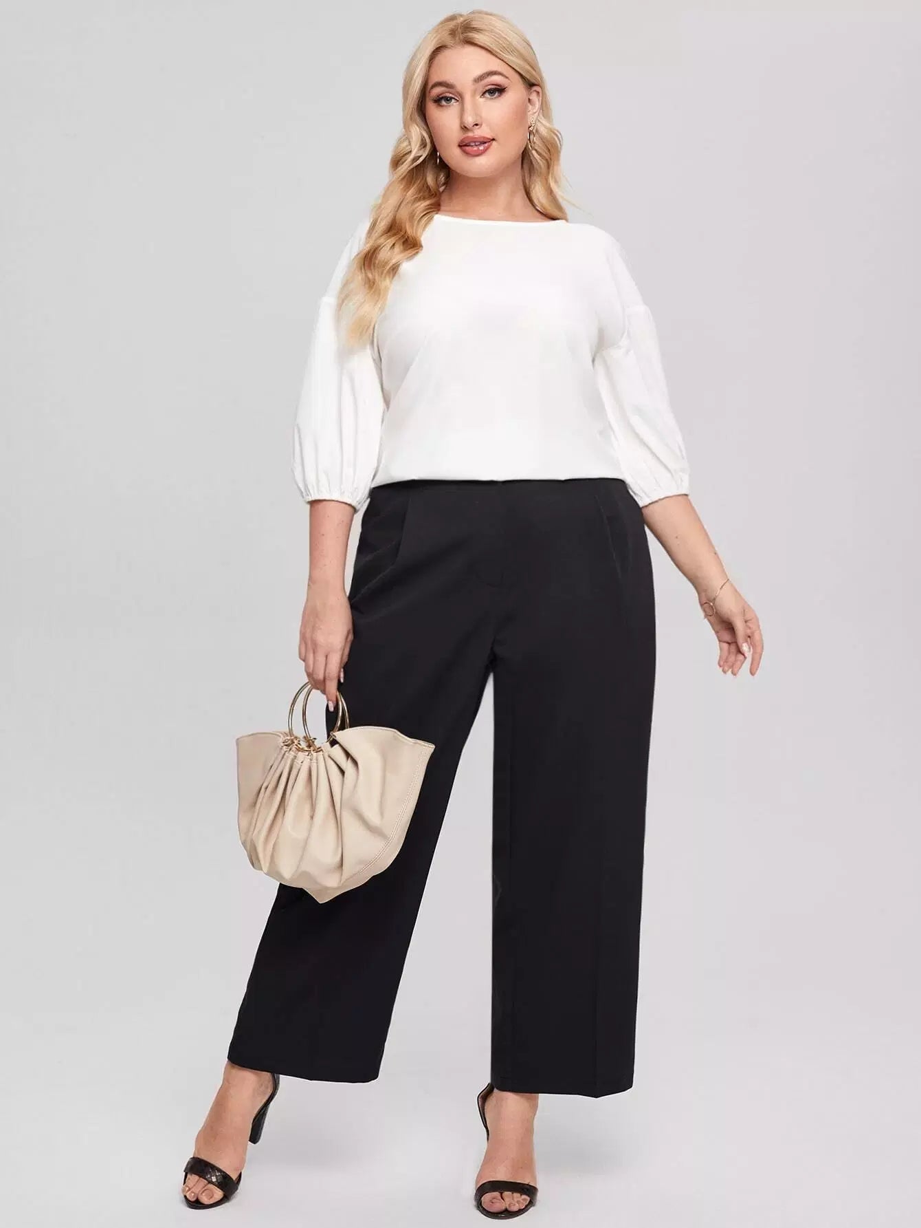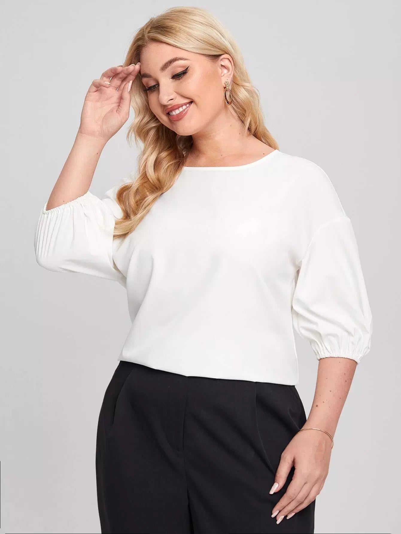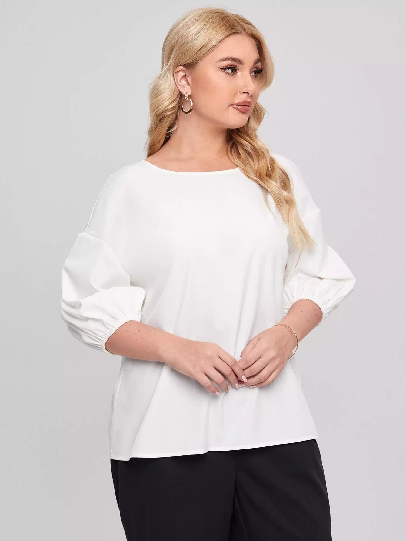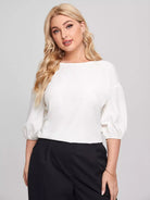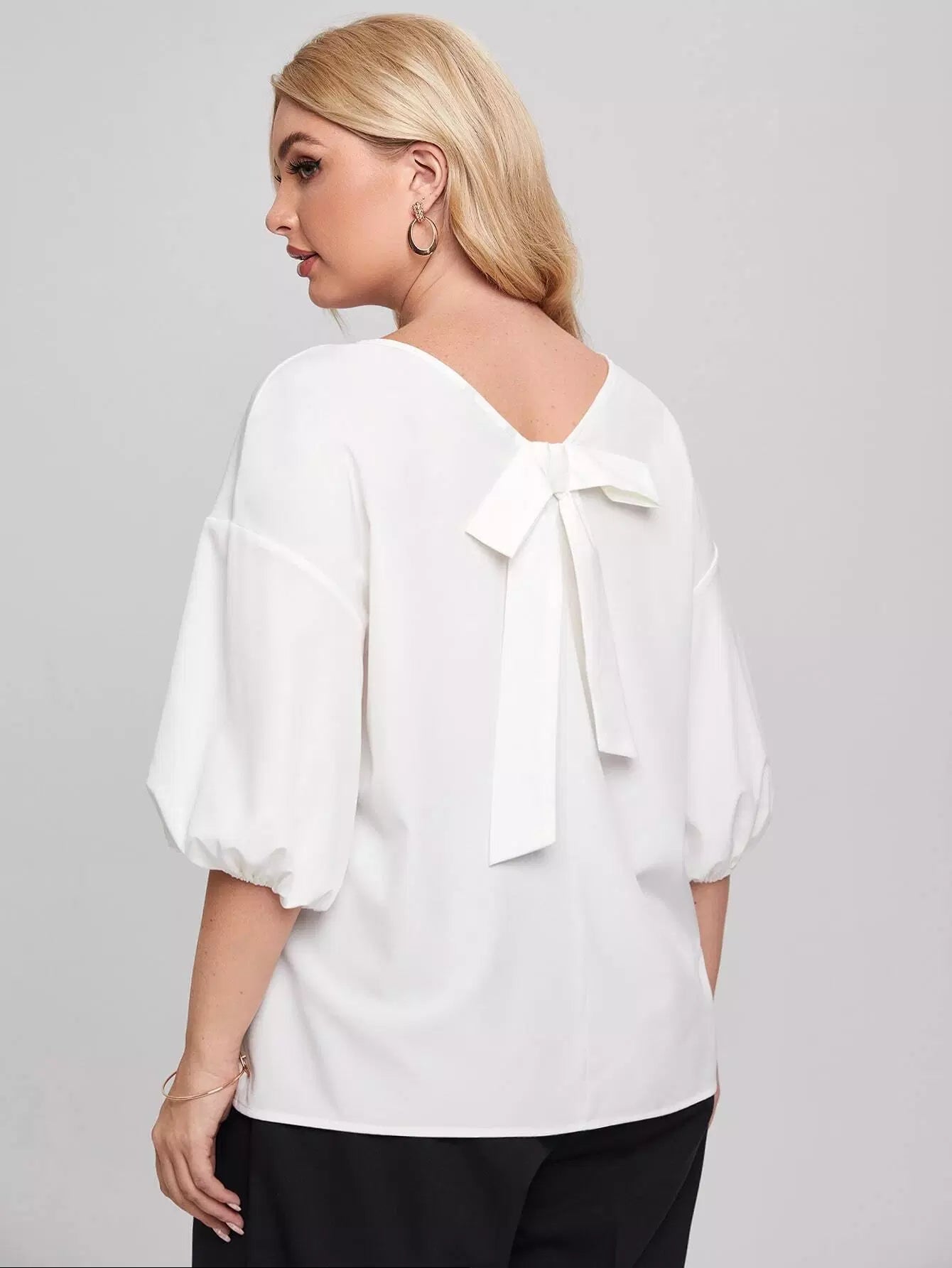 Plus Solid Bow Back Bishop Sleeve Blouse