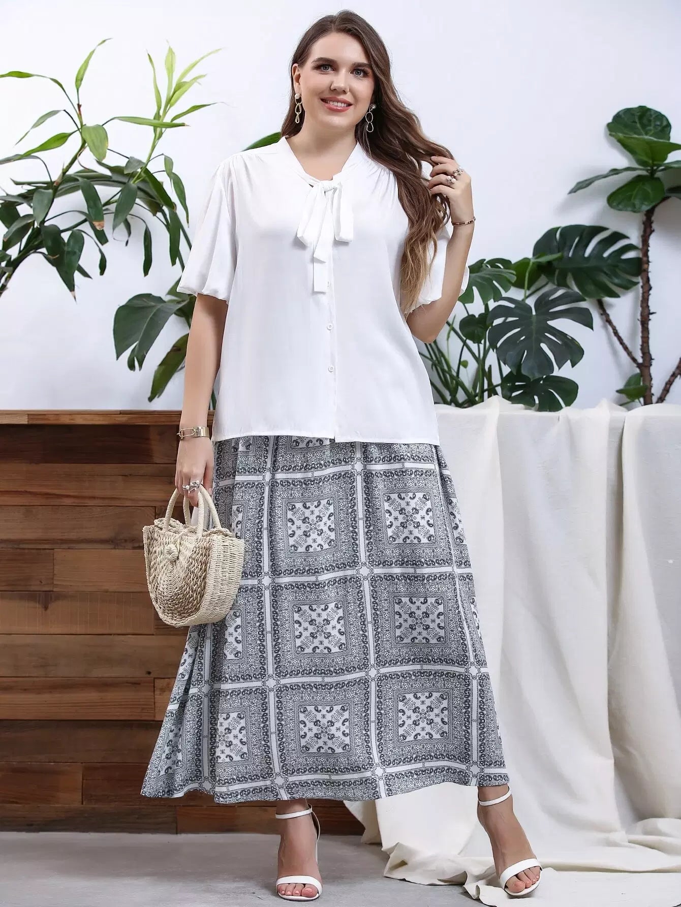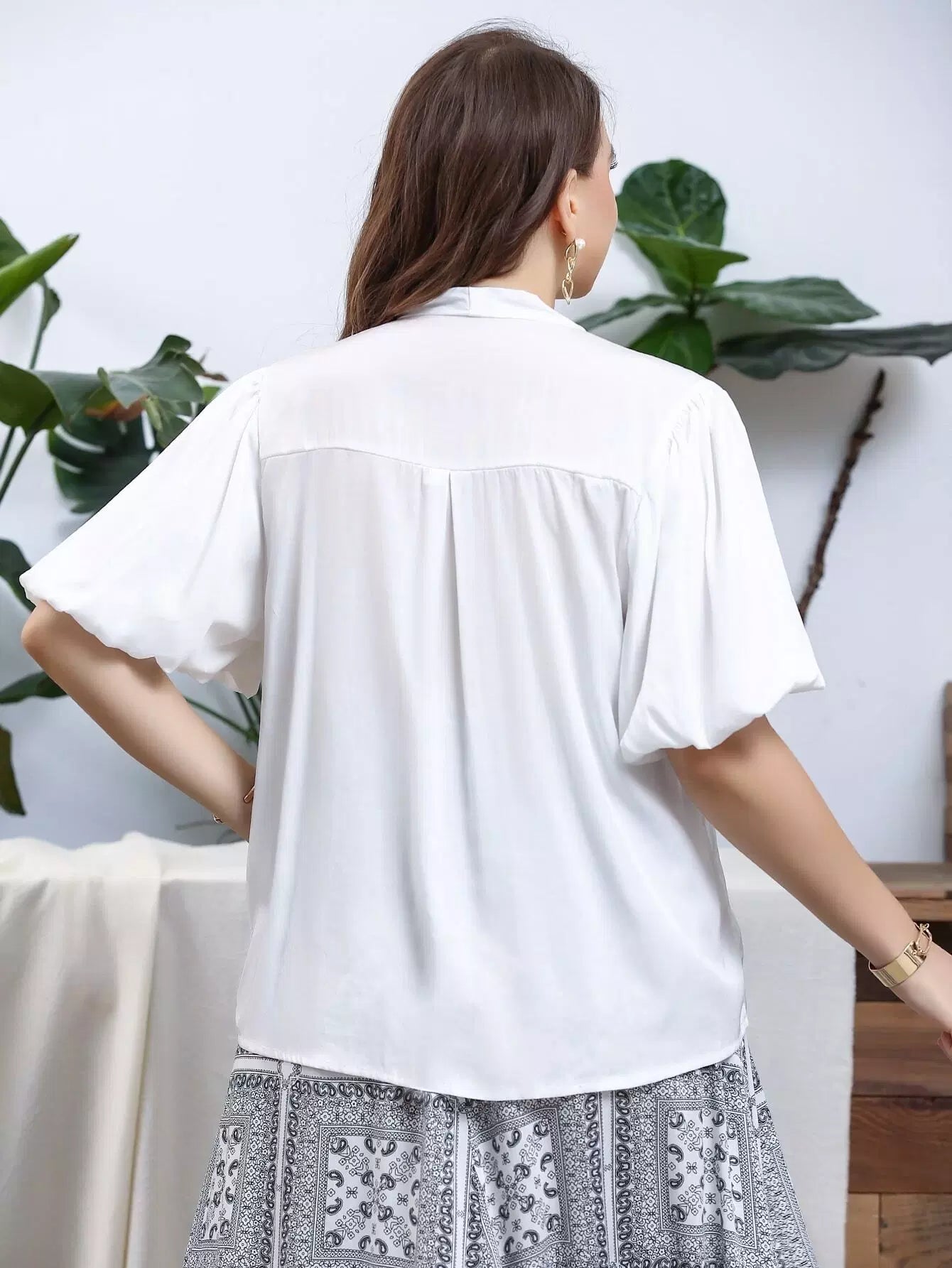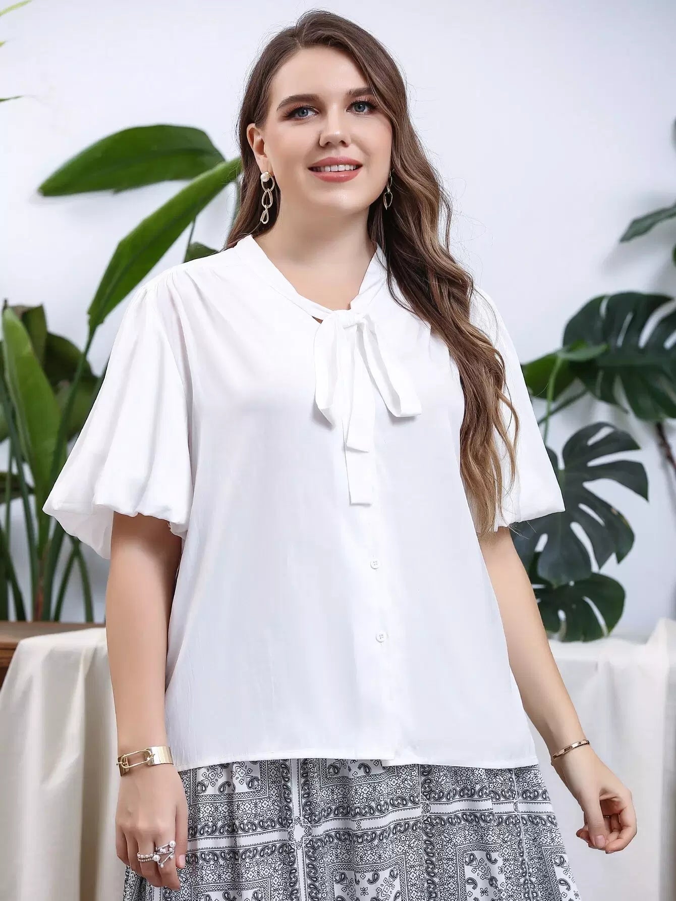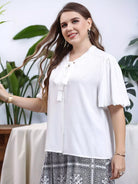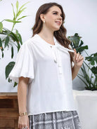 Plus Solid Butterfly Sleeve Knot Neck Blouse