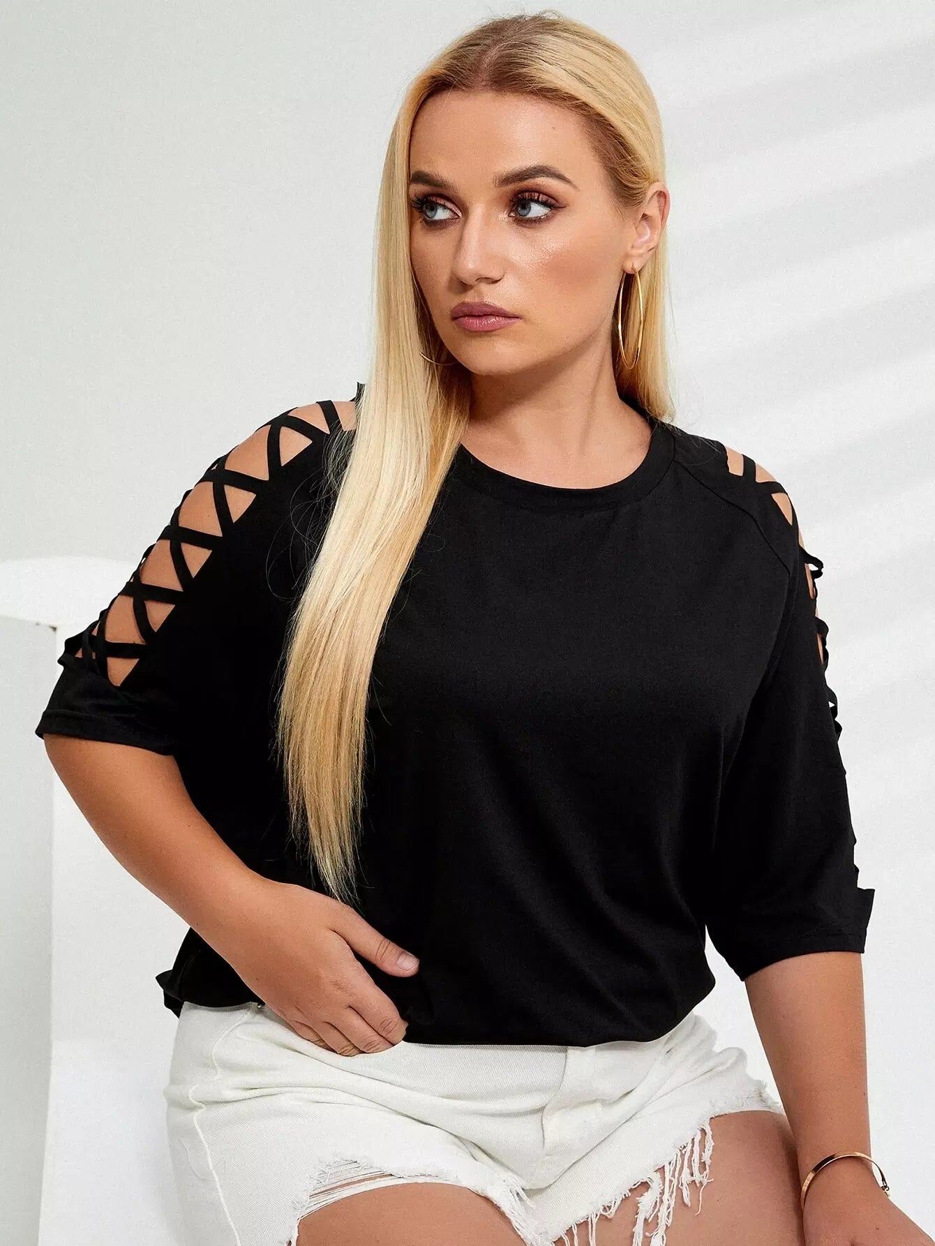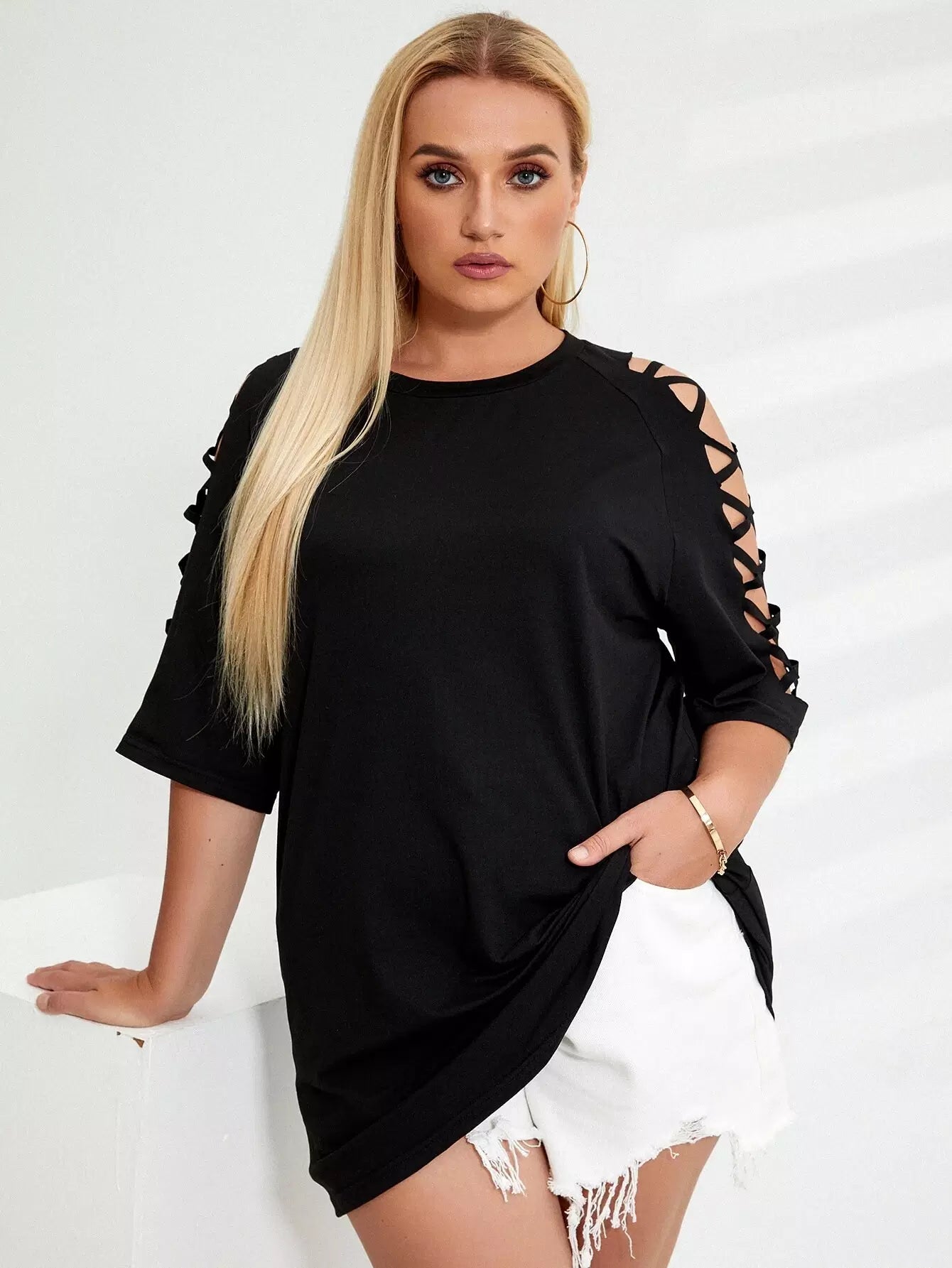 Plus Solid Criss Cross Tee
