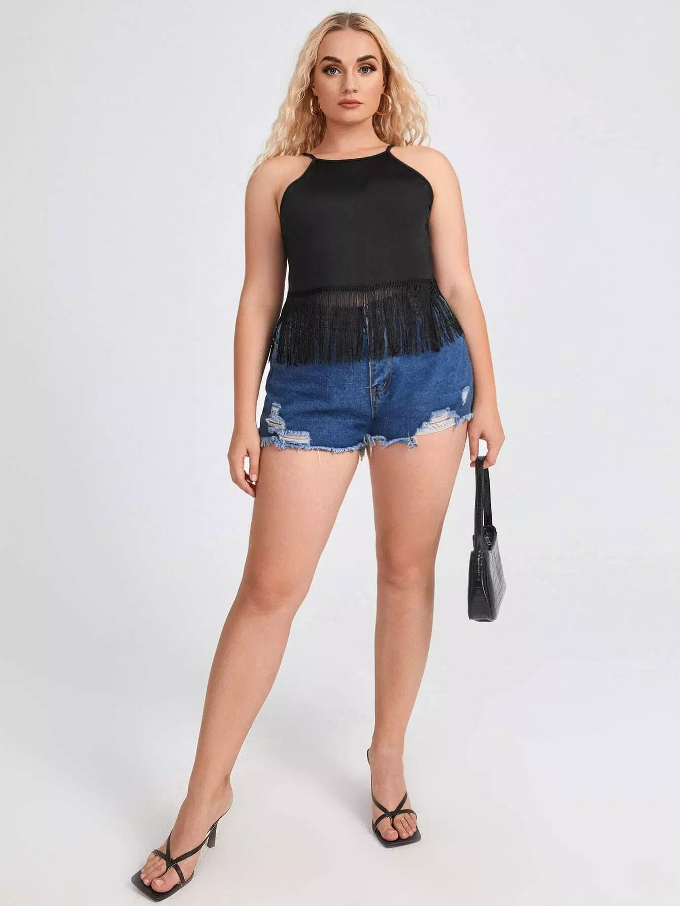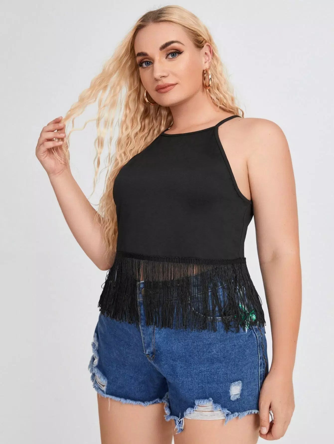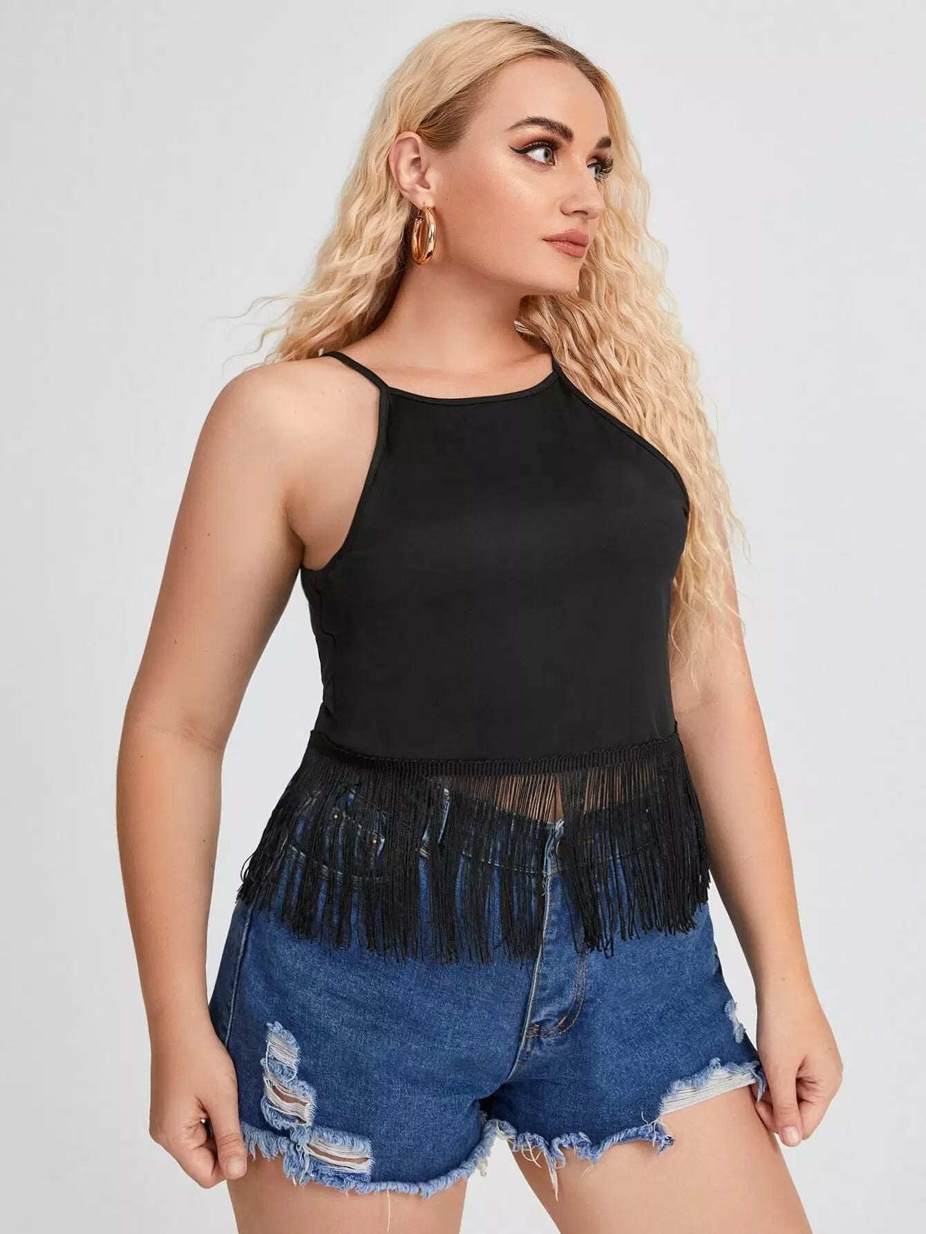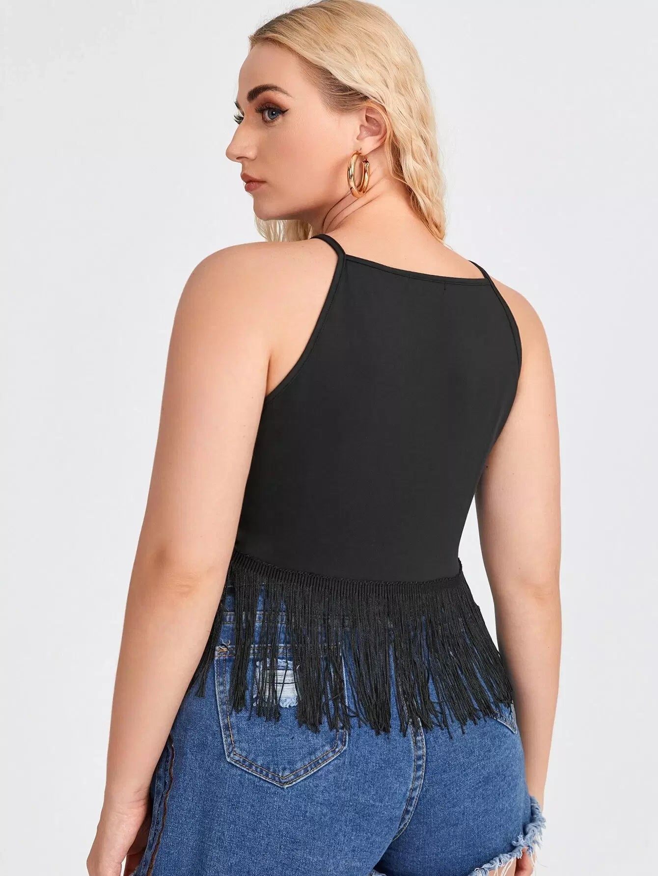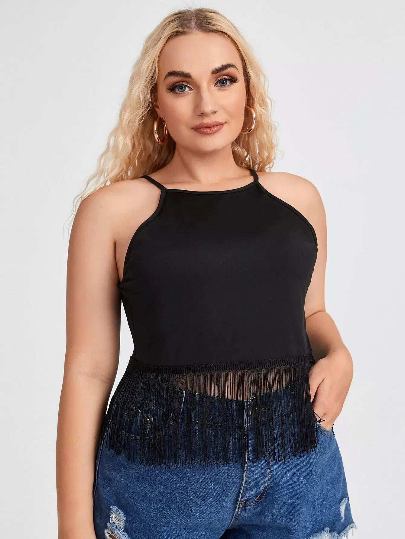 Plus Solid Fringe Hem Cami Top