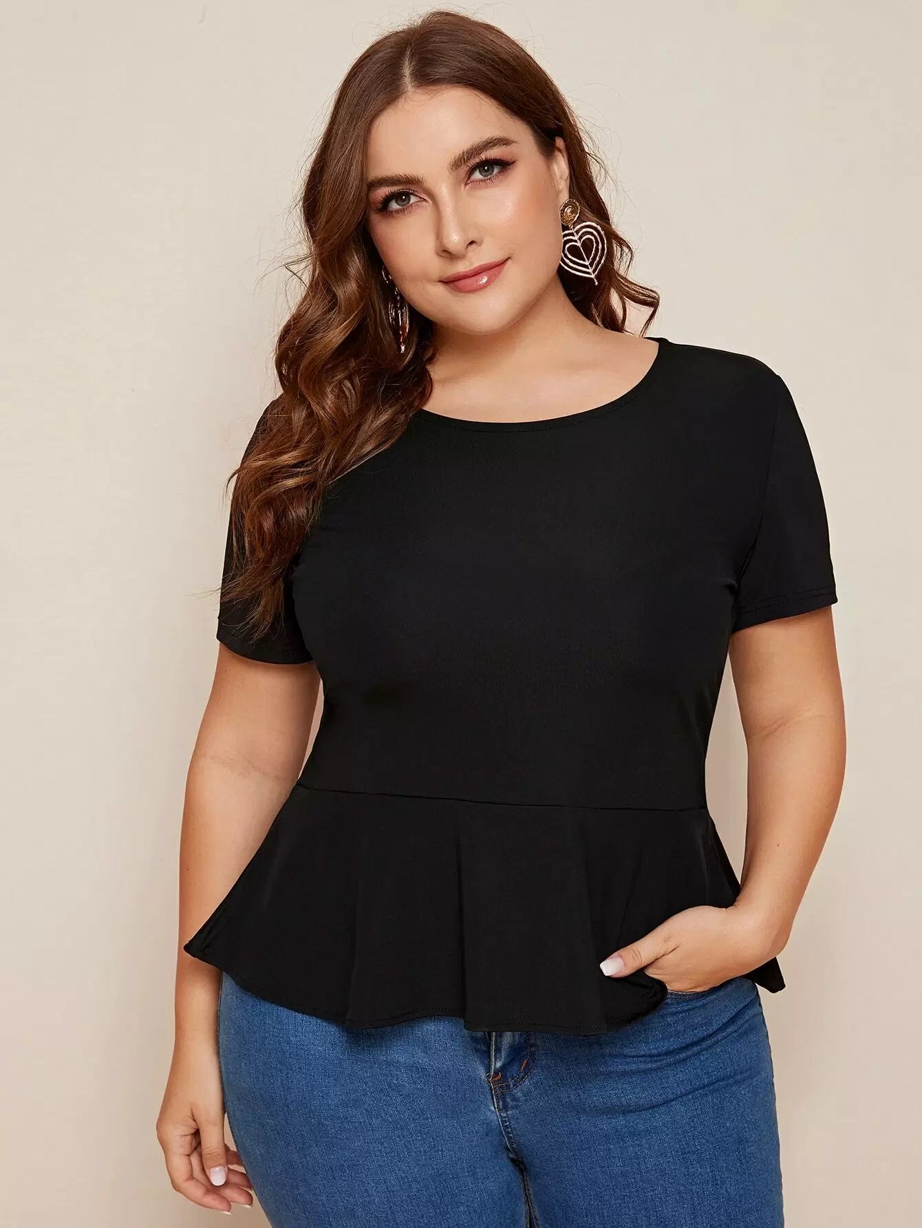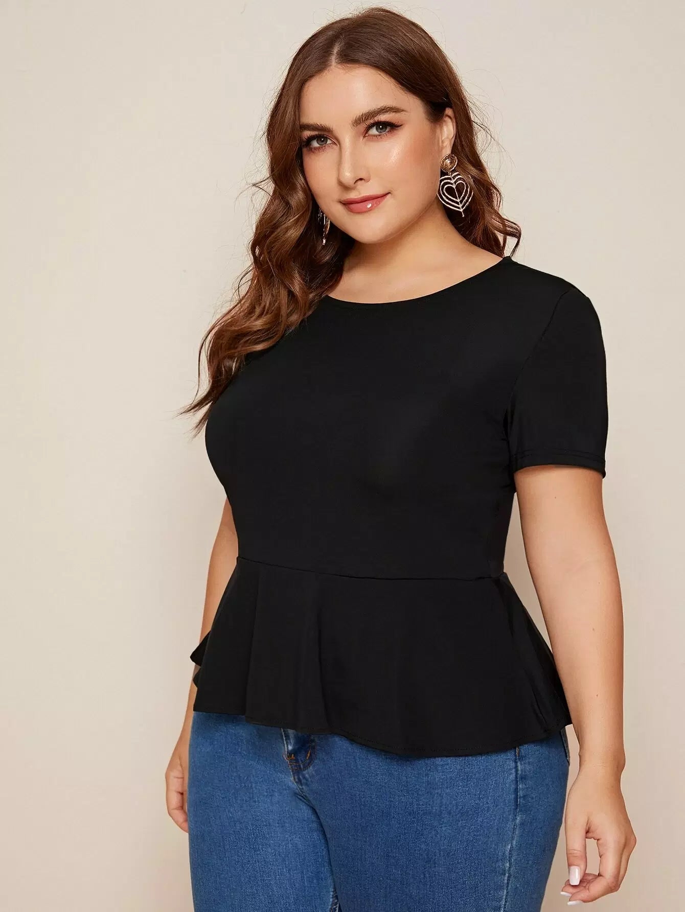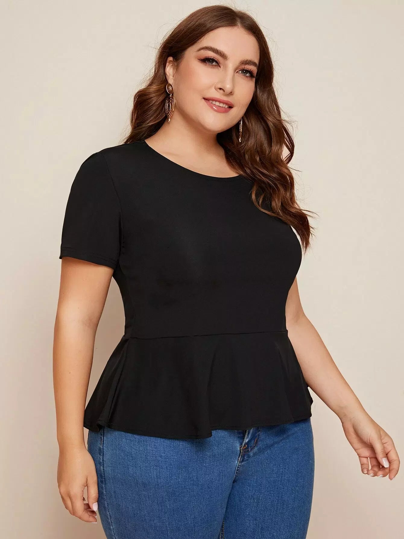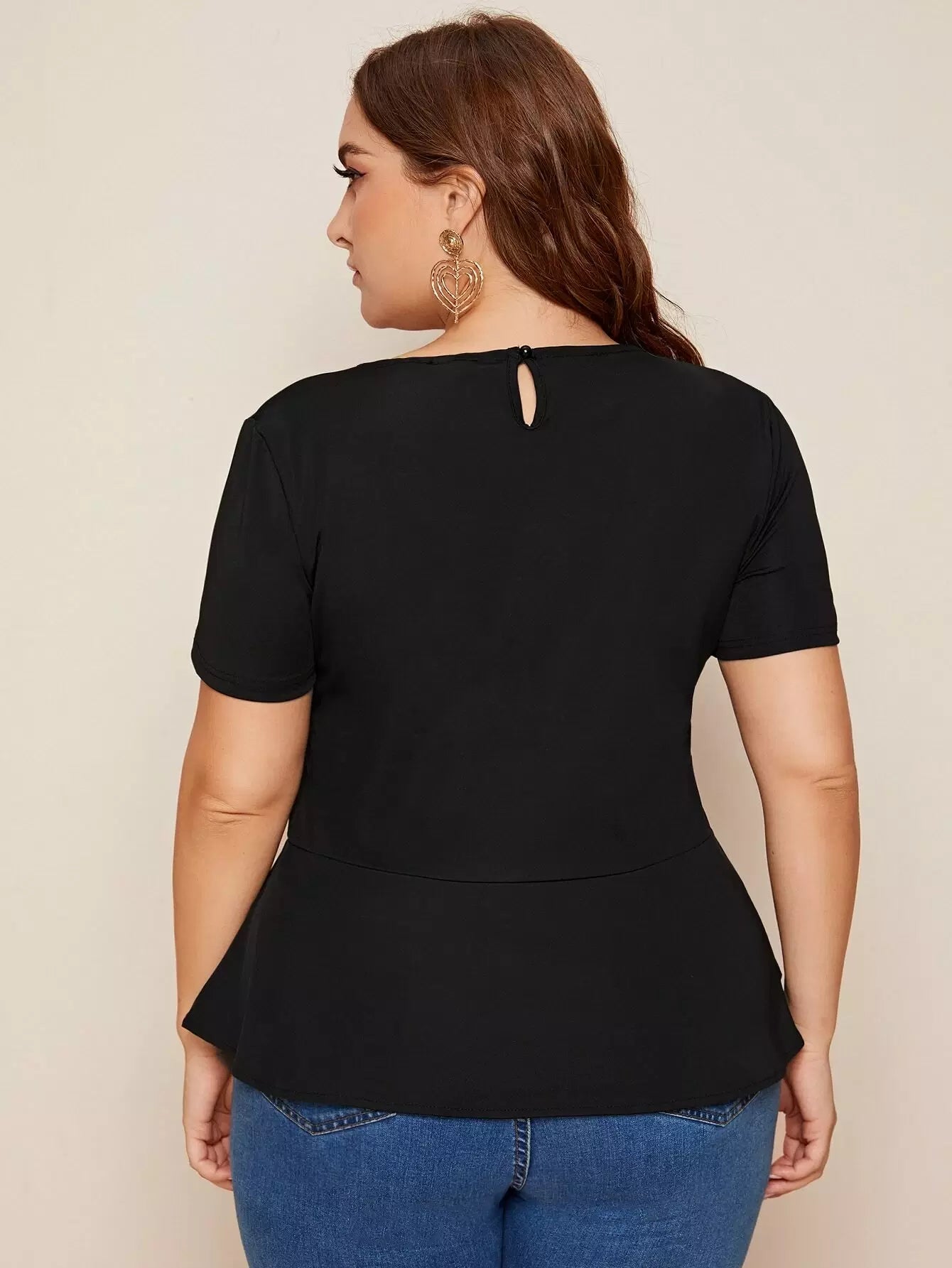 Plus Solid Keyhole Back Peplum Blouse