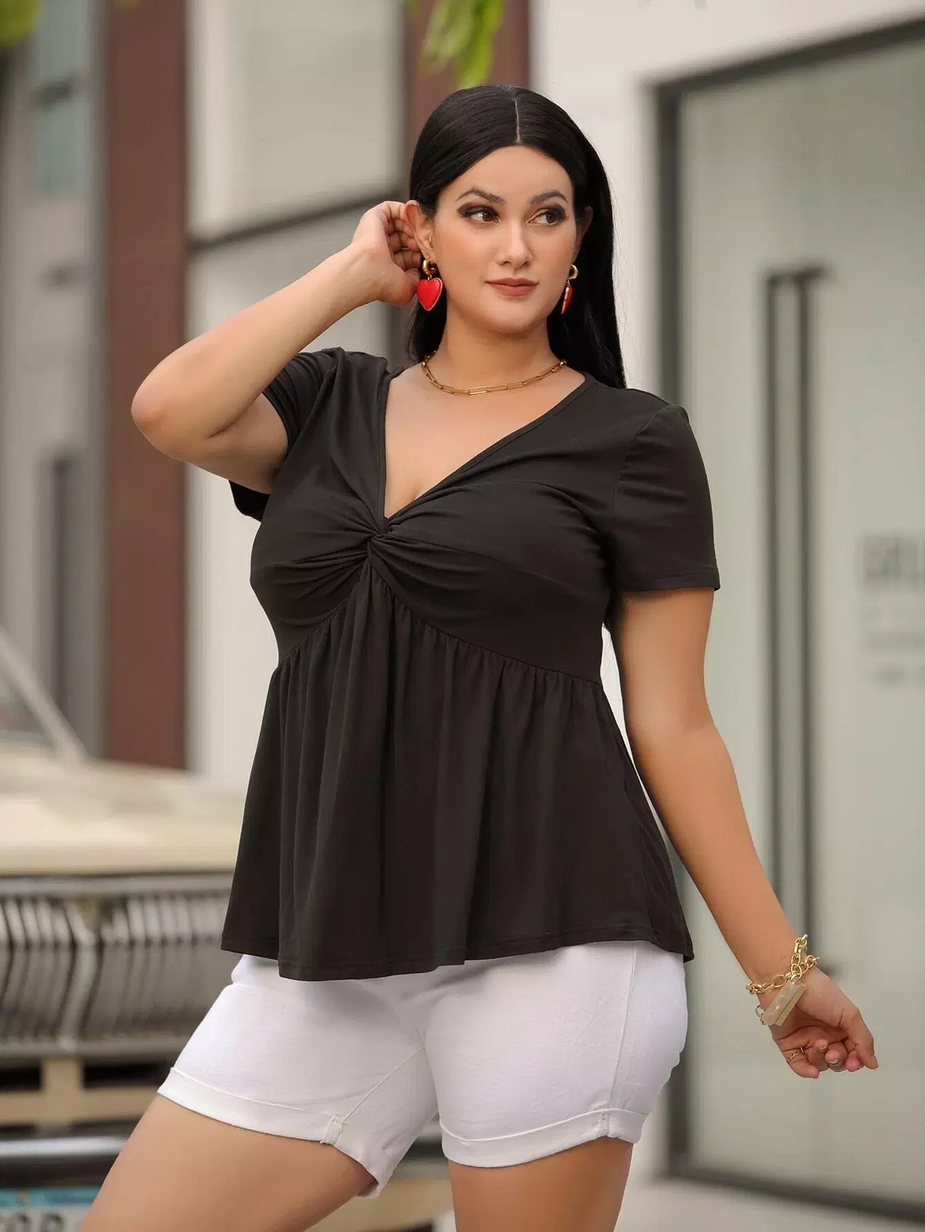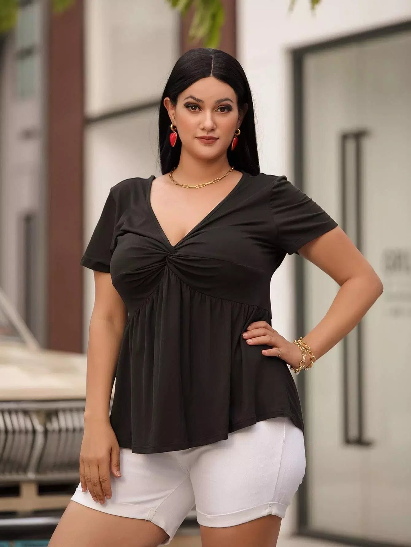 Plus Solid Twist Bust Smock Top