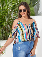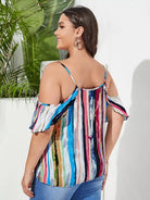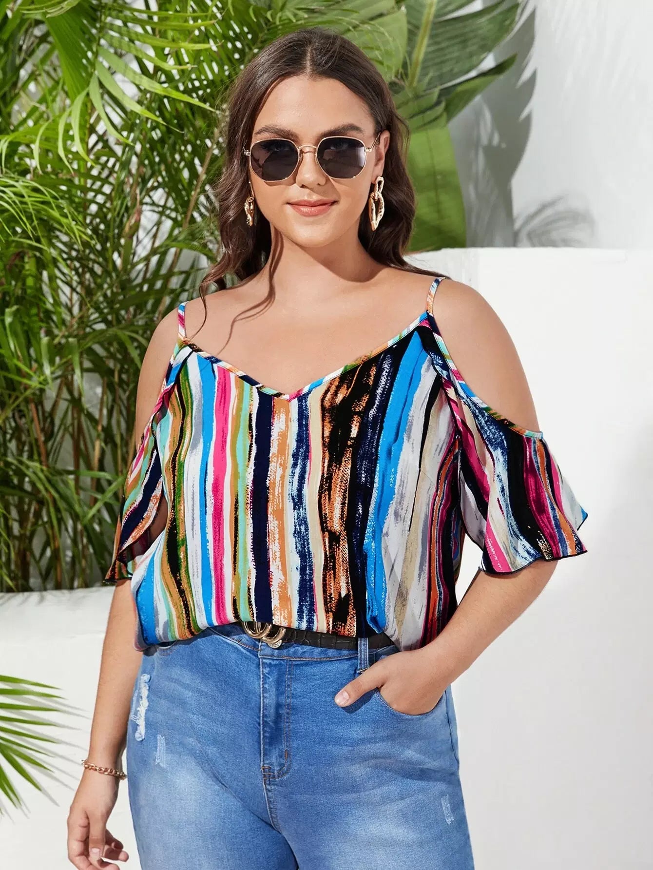 Plus Stripe Brush Print Cold Shoulder Blouse