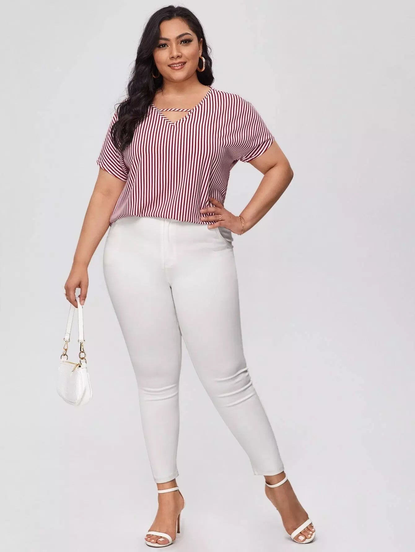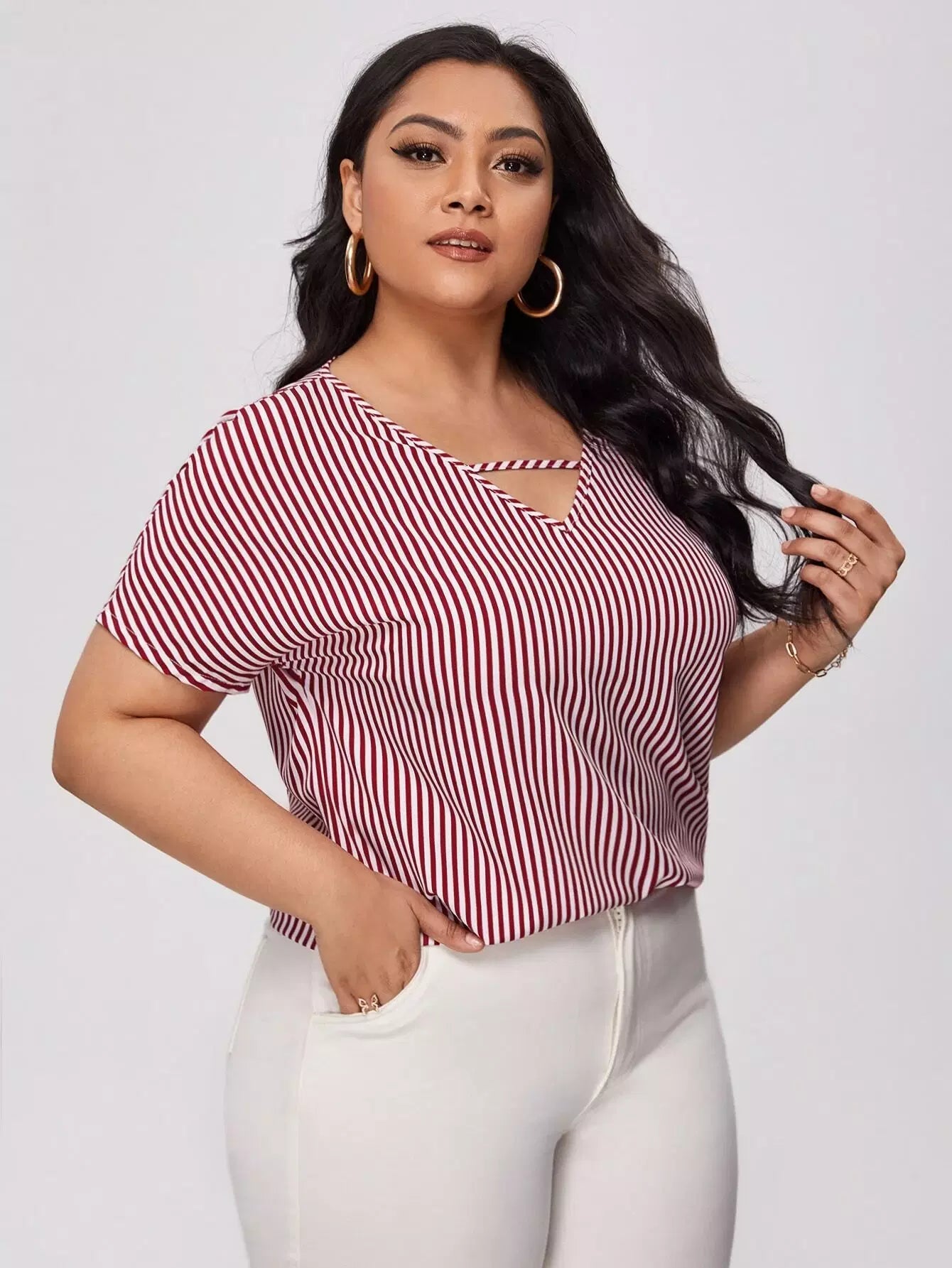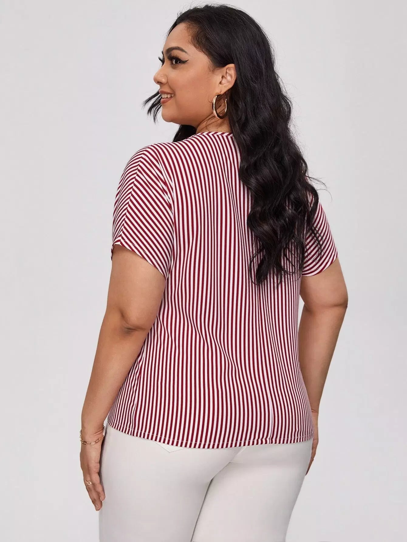 Women - Plus Striped Print Batwing Sleeve Blouse
