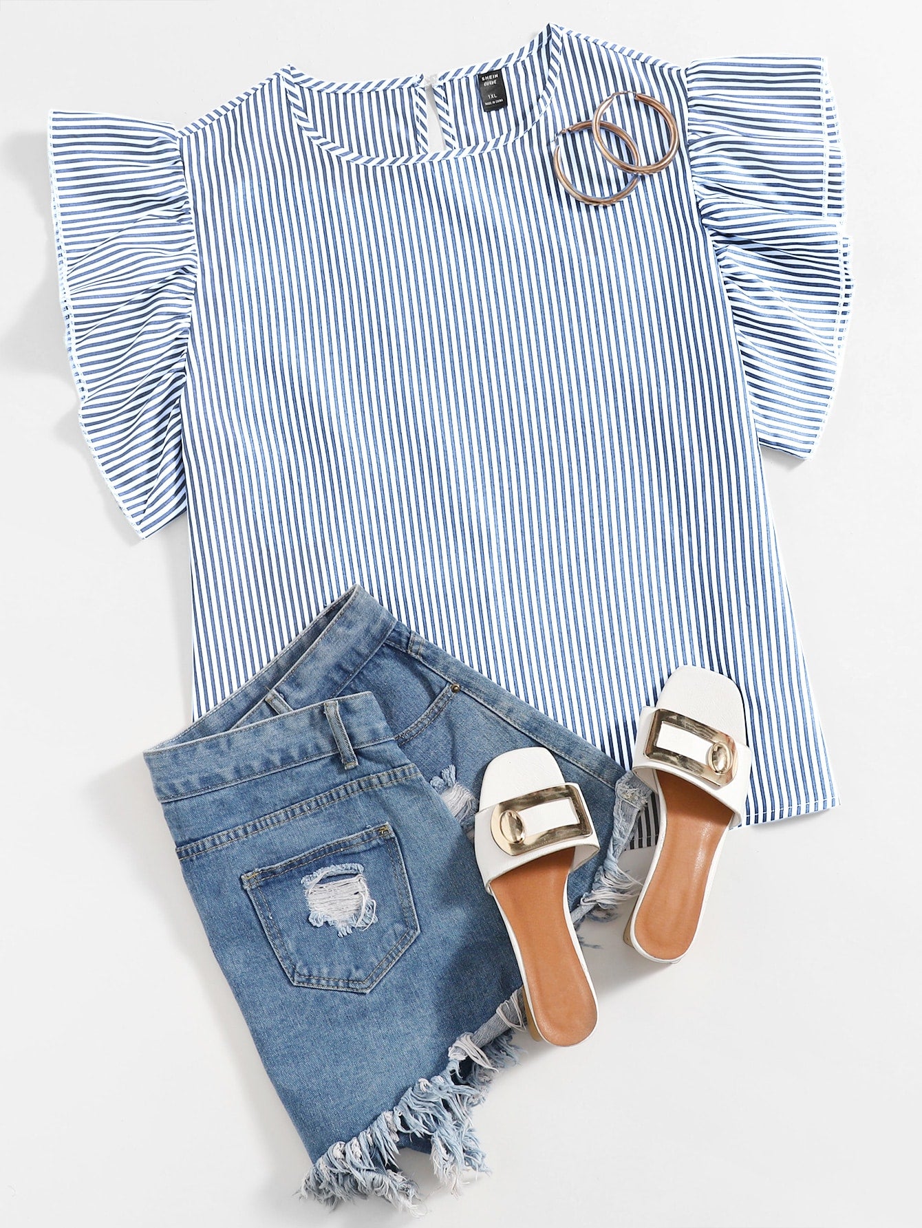 Plus Striped Ruffle Cuff Blouse