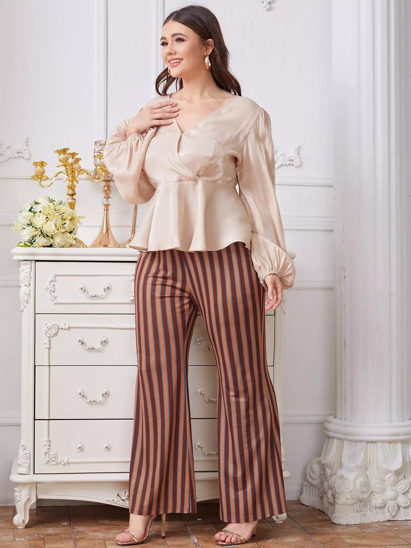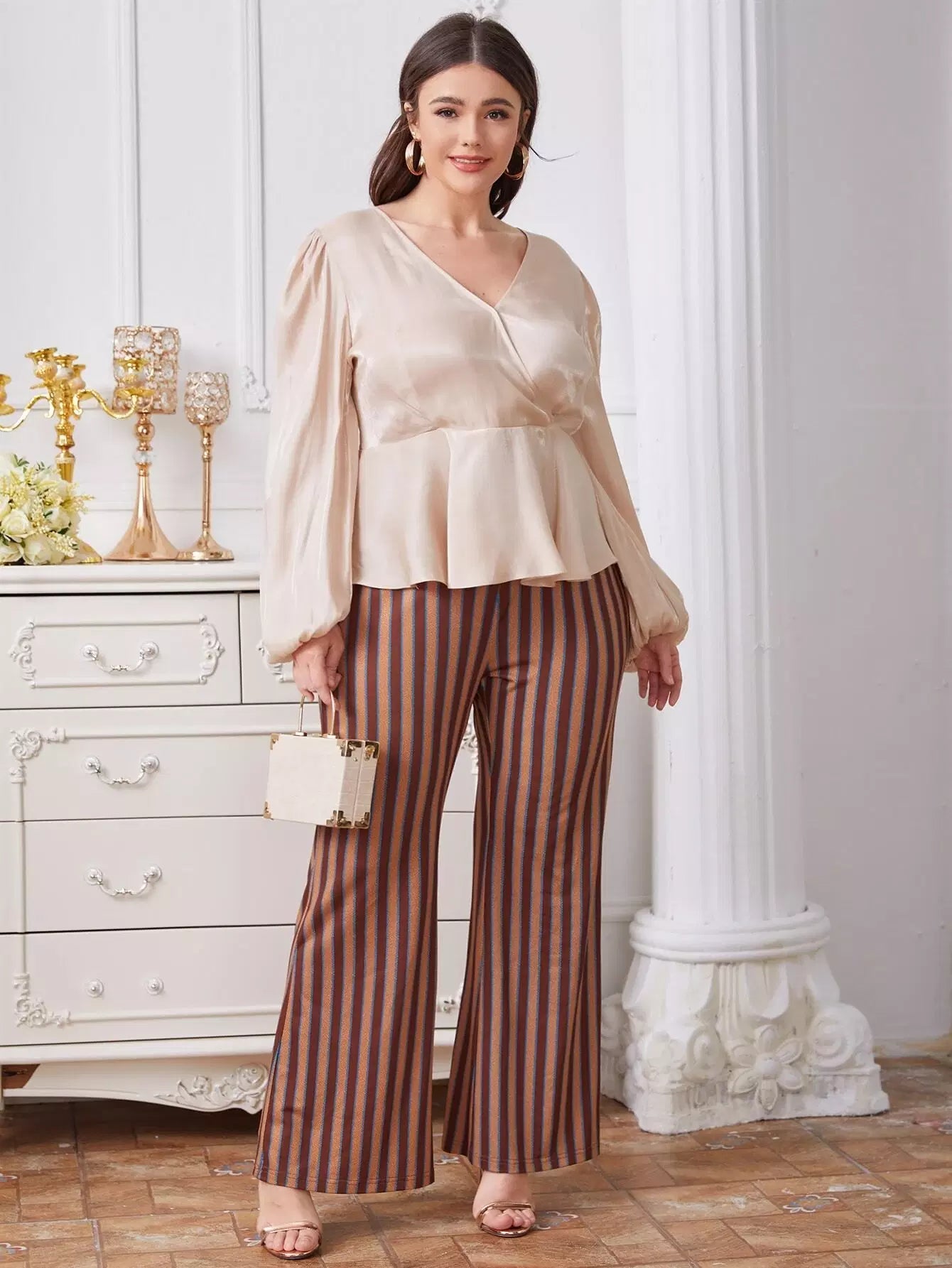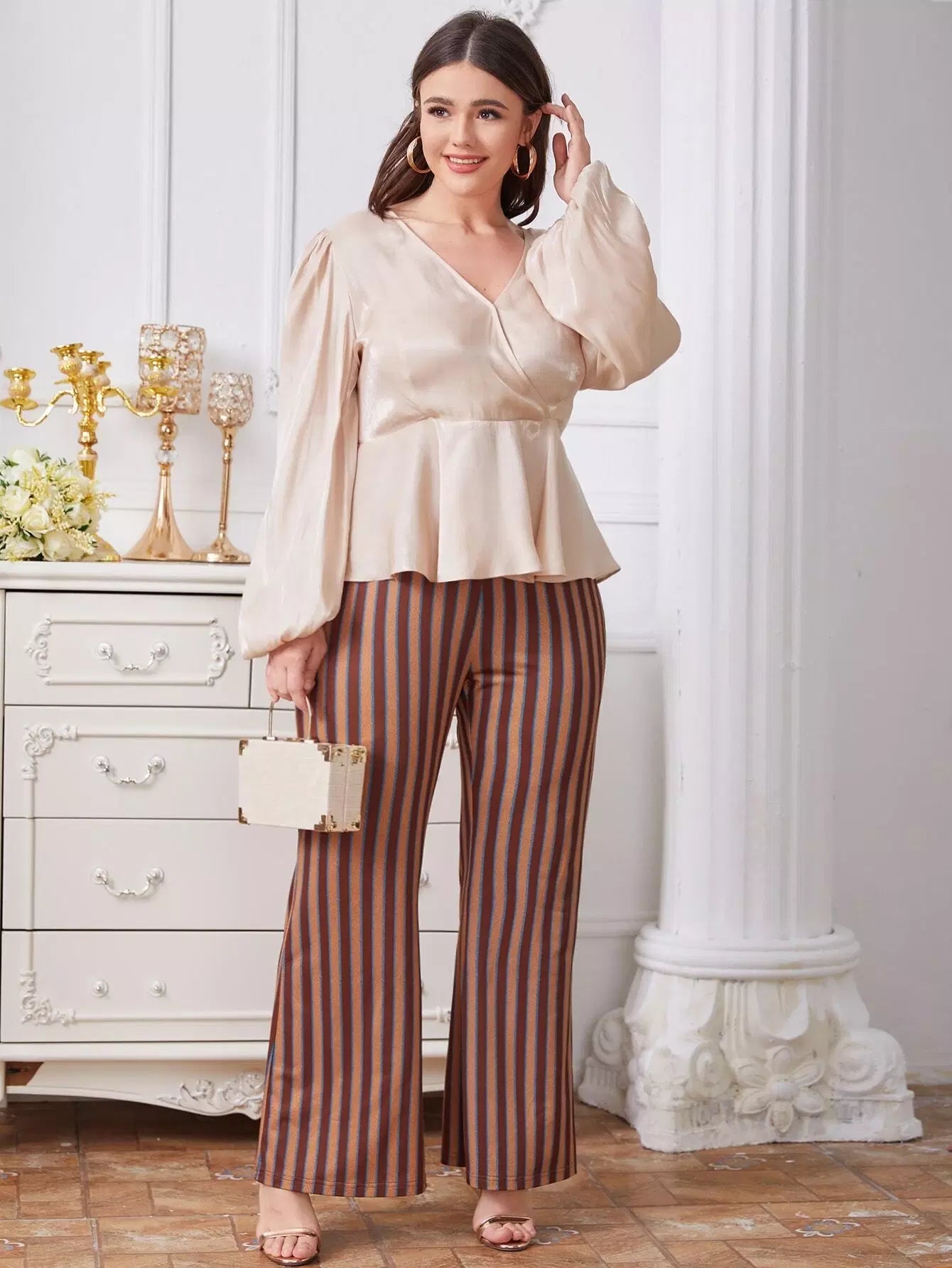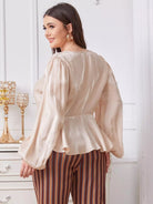 Plus Surplice Neck Bishop Sleeve Peplum Top