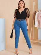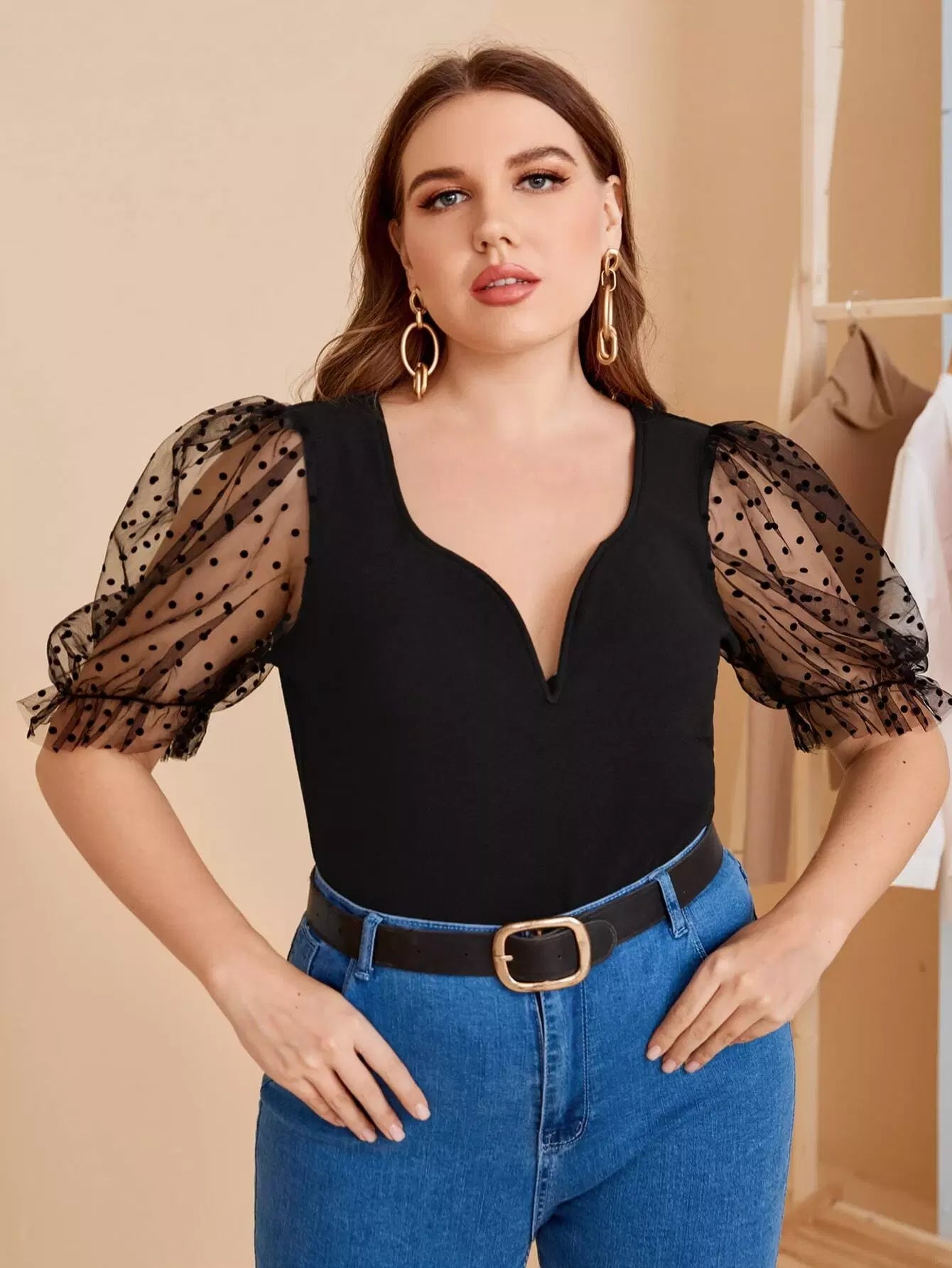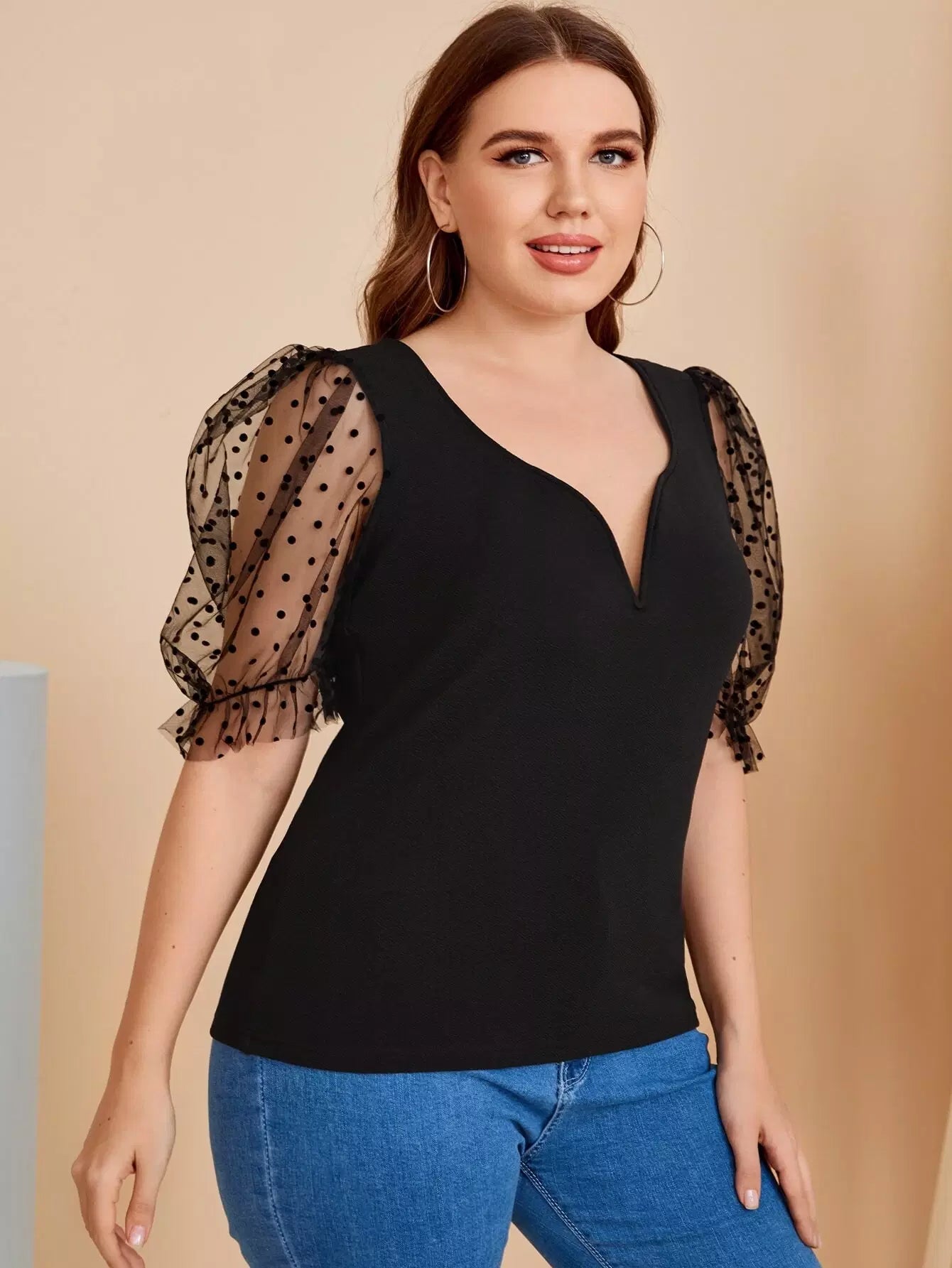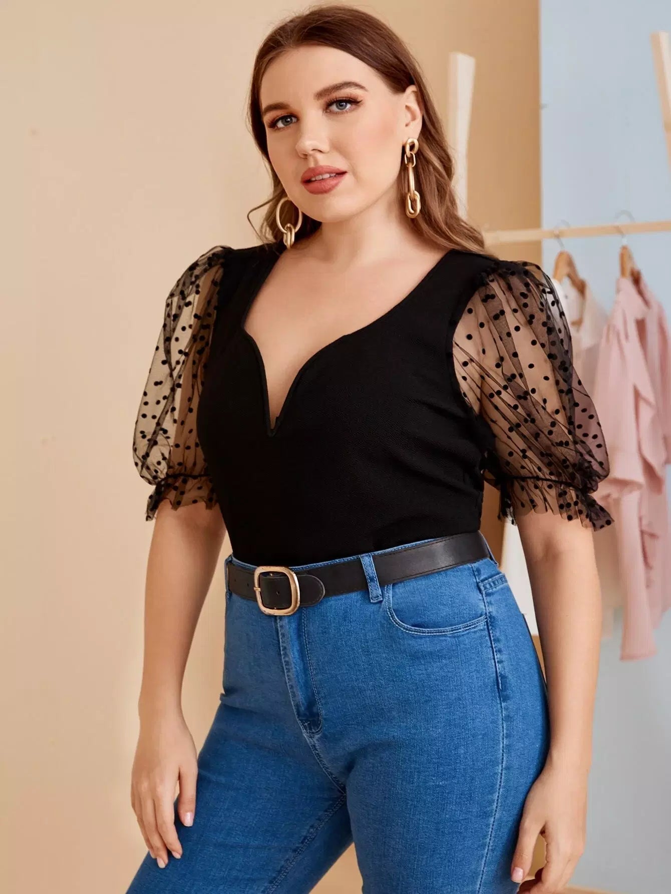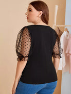 Plus Sweetheart Neck Mesh Puff Sleeve Top