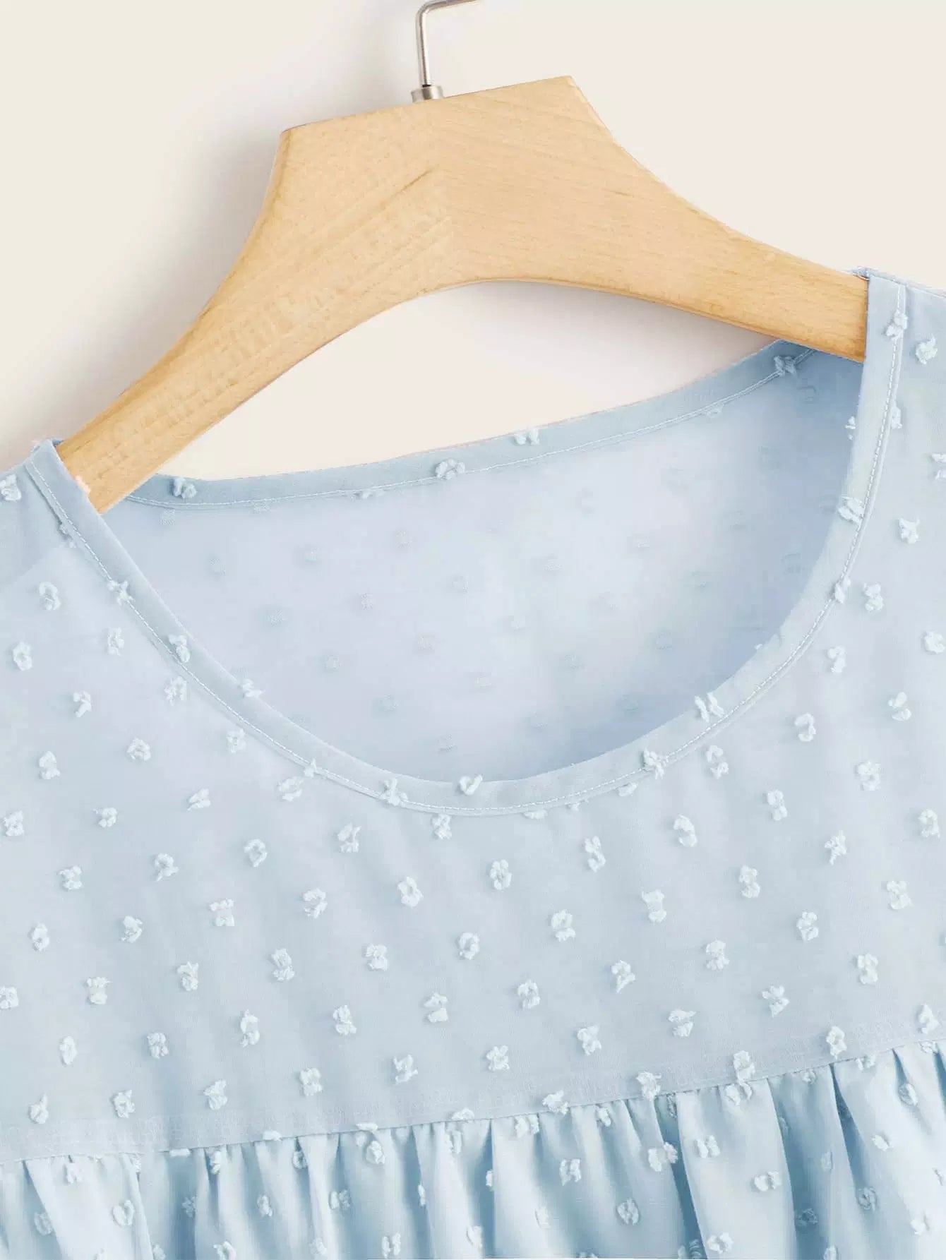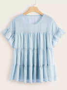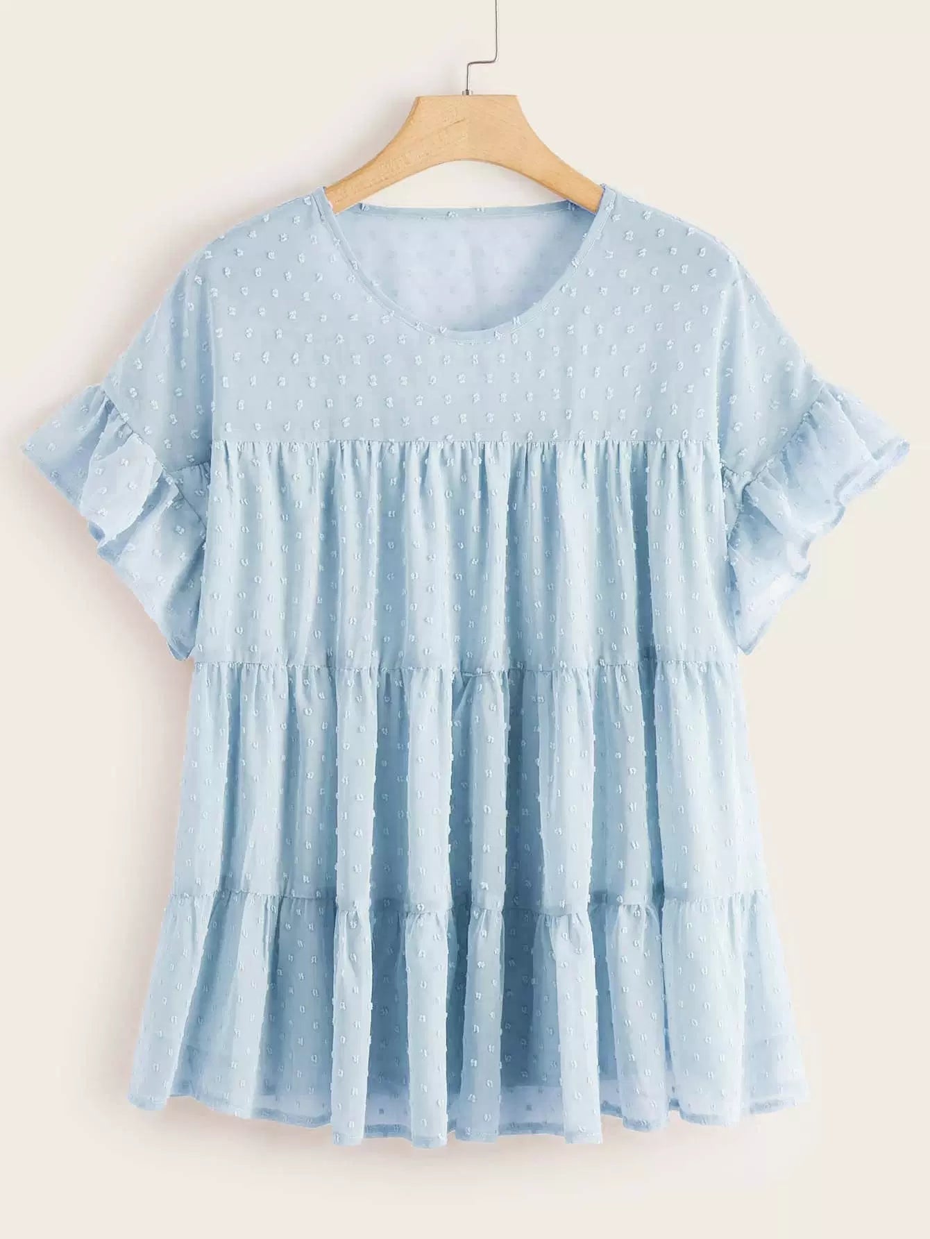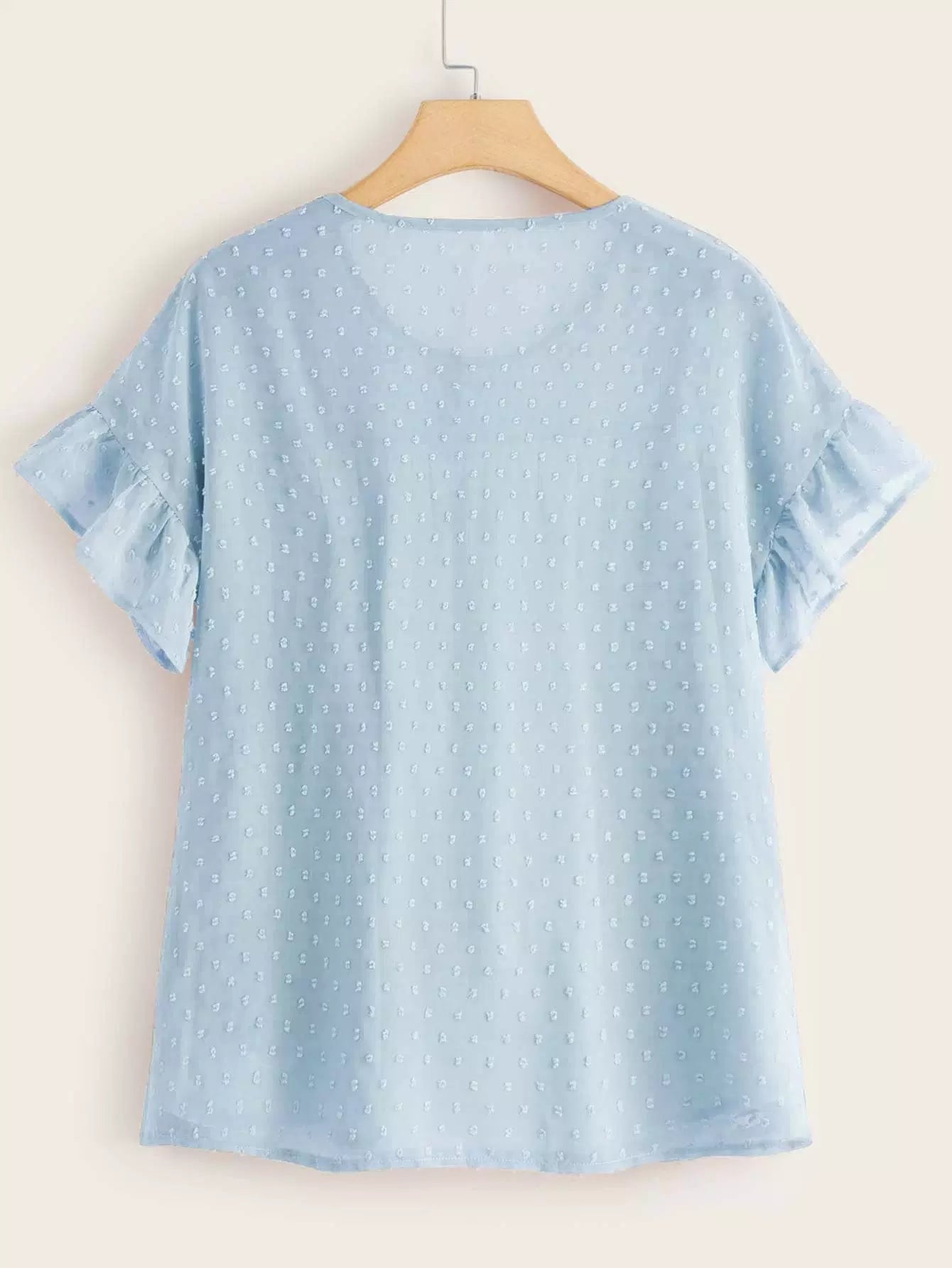 Plus Swiss Dot Flounce Sleeve Chiffon Top