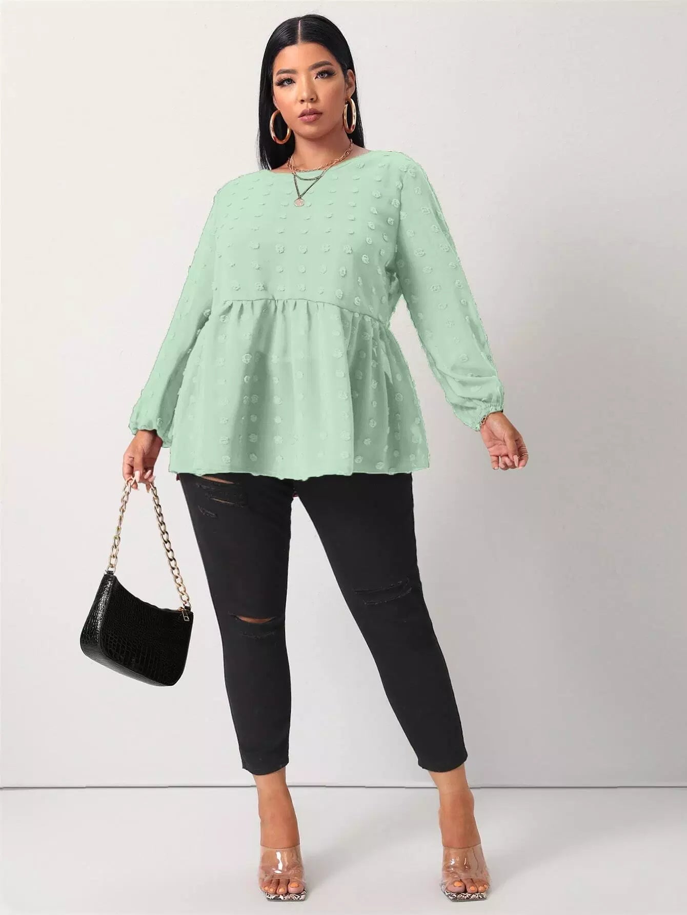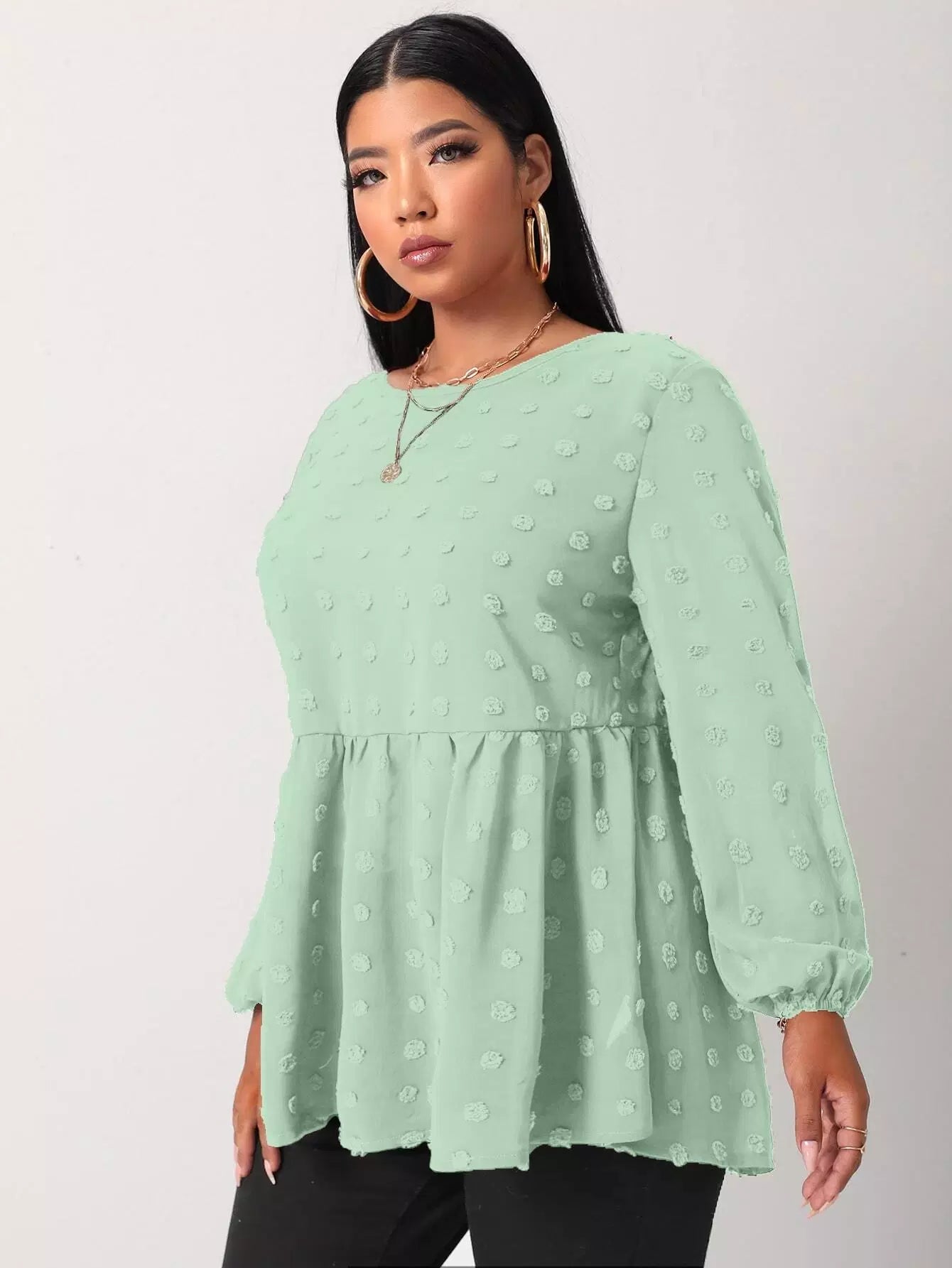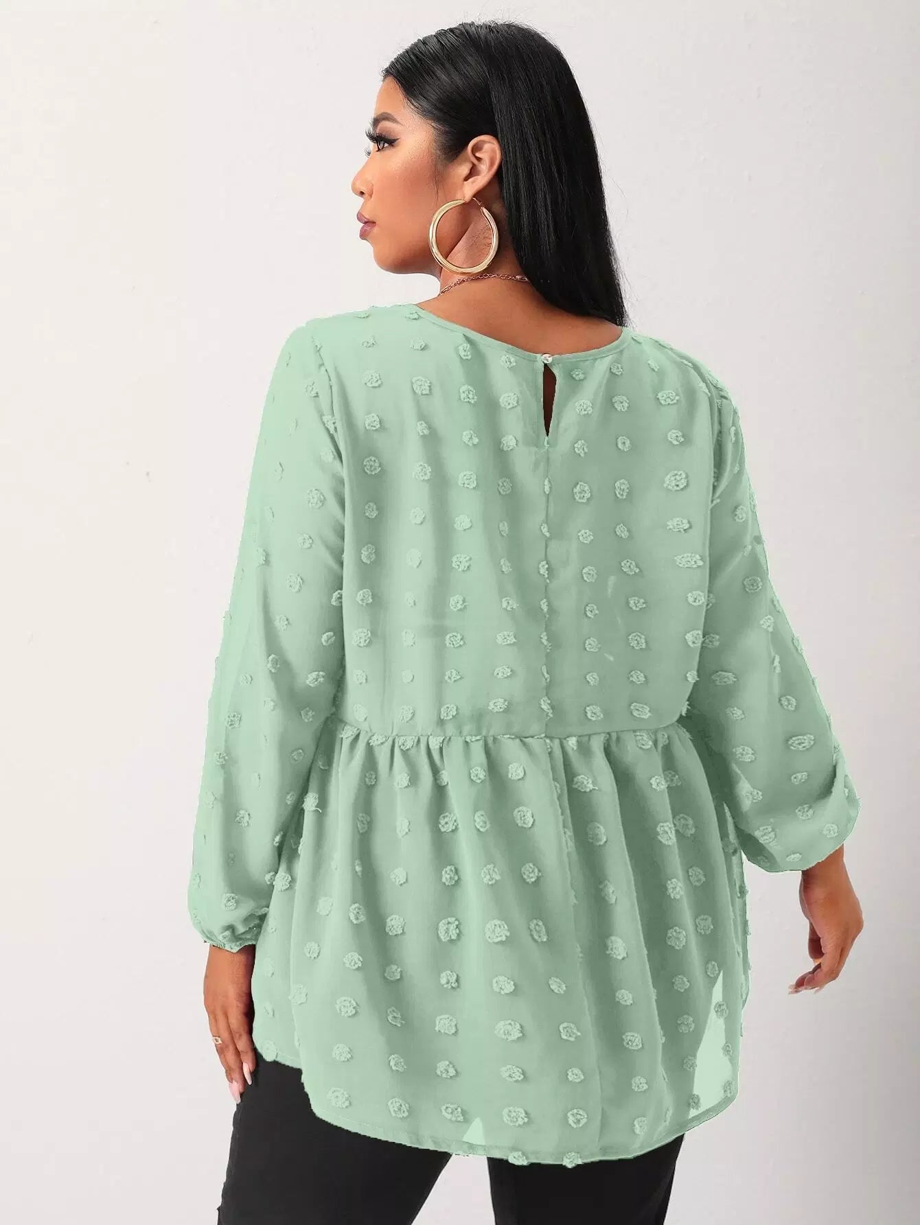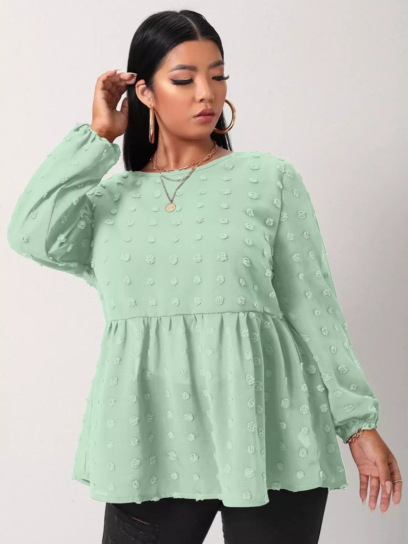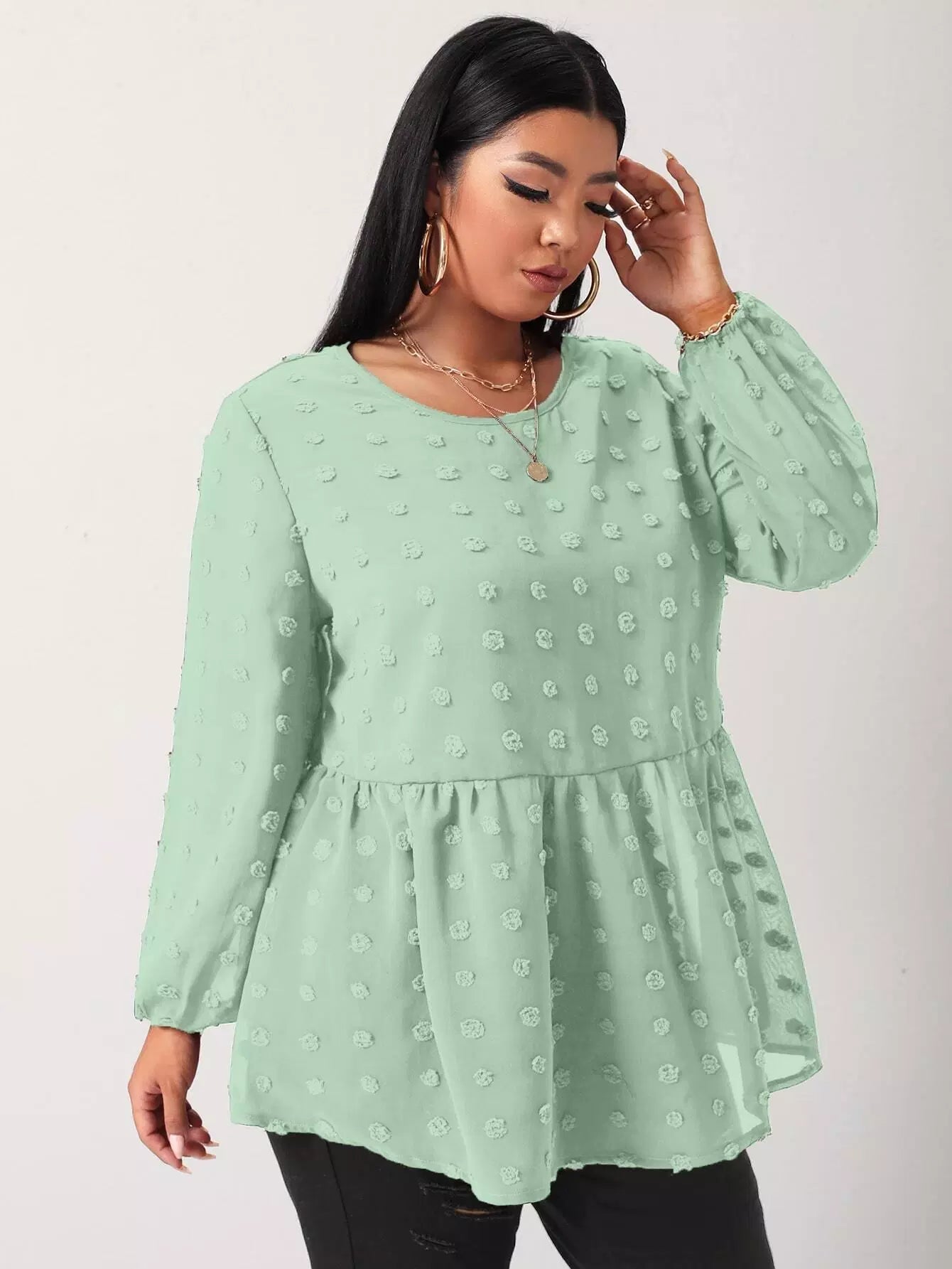 Plus Swiss Dot Ruffle Hem Tunic Blouse