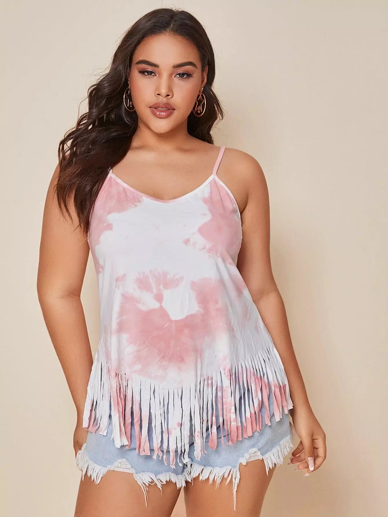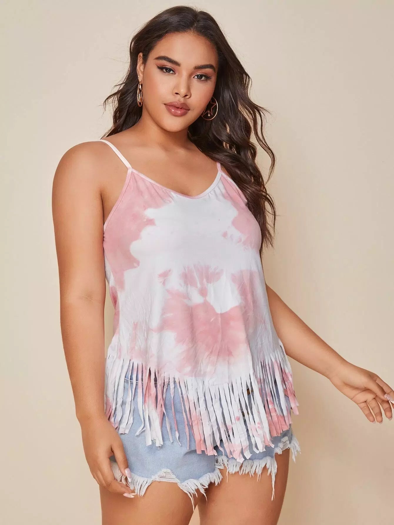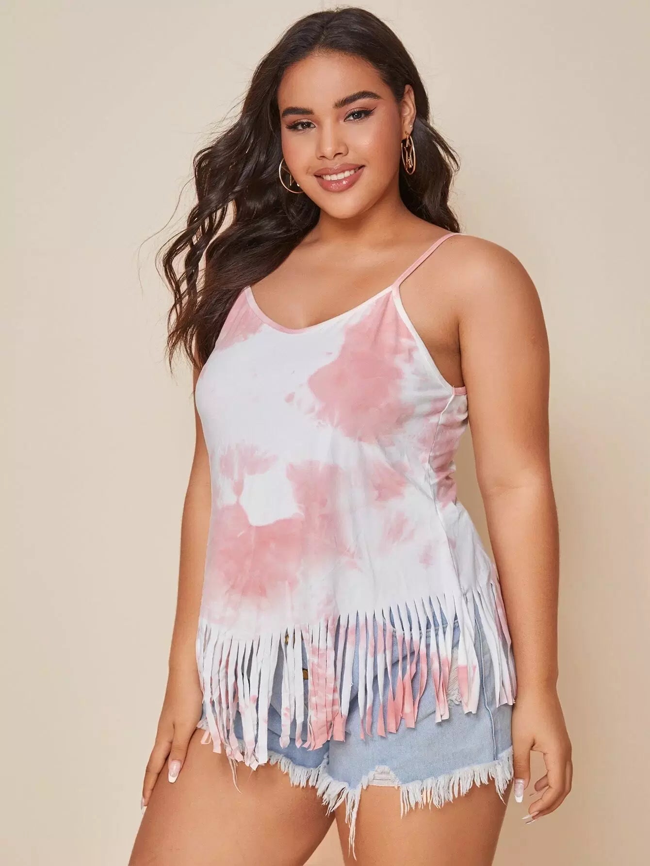 Women - Plus Tie Dye Fringe Hem Cami Top