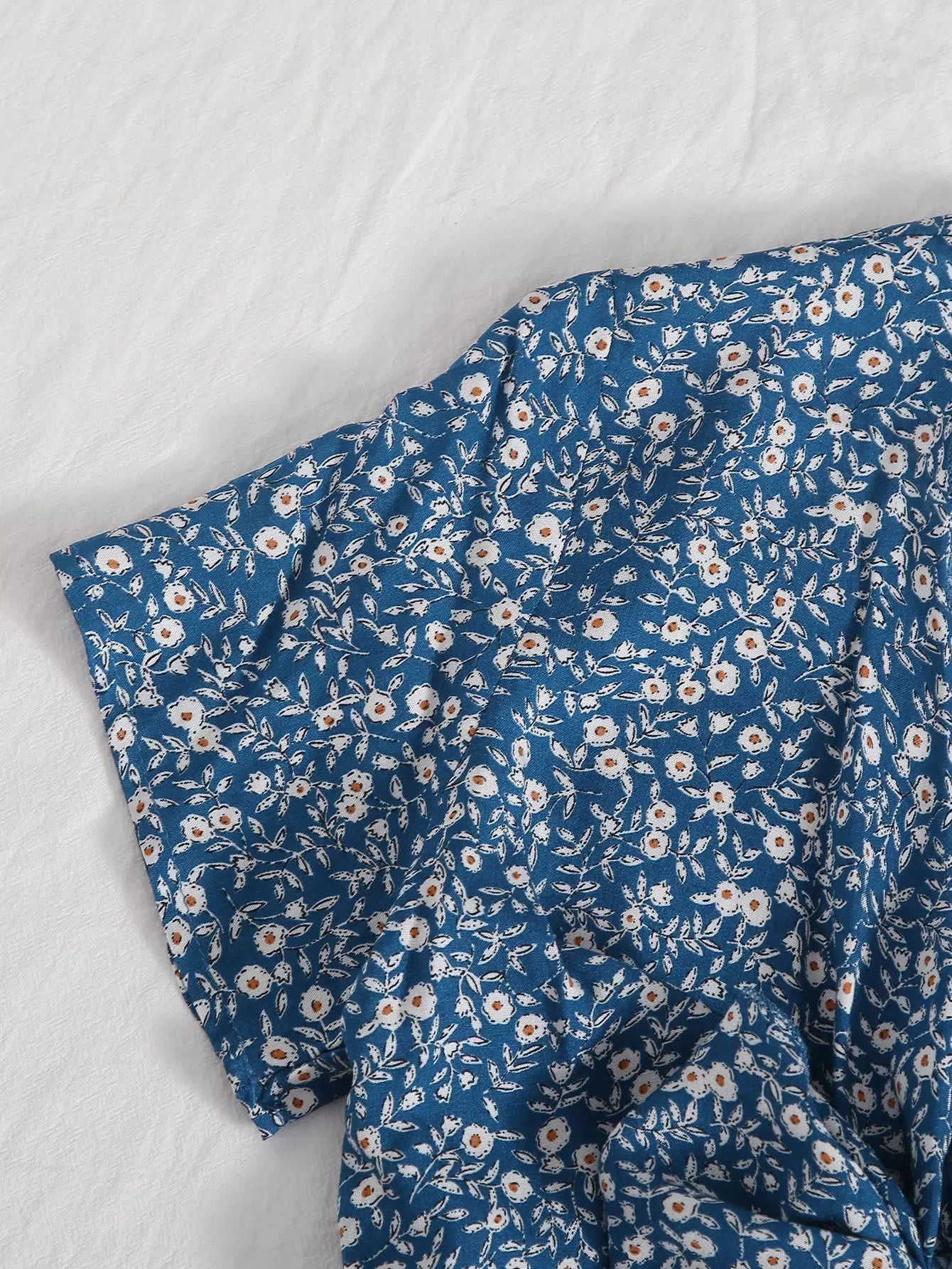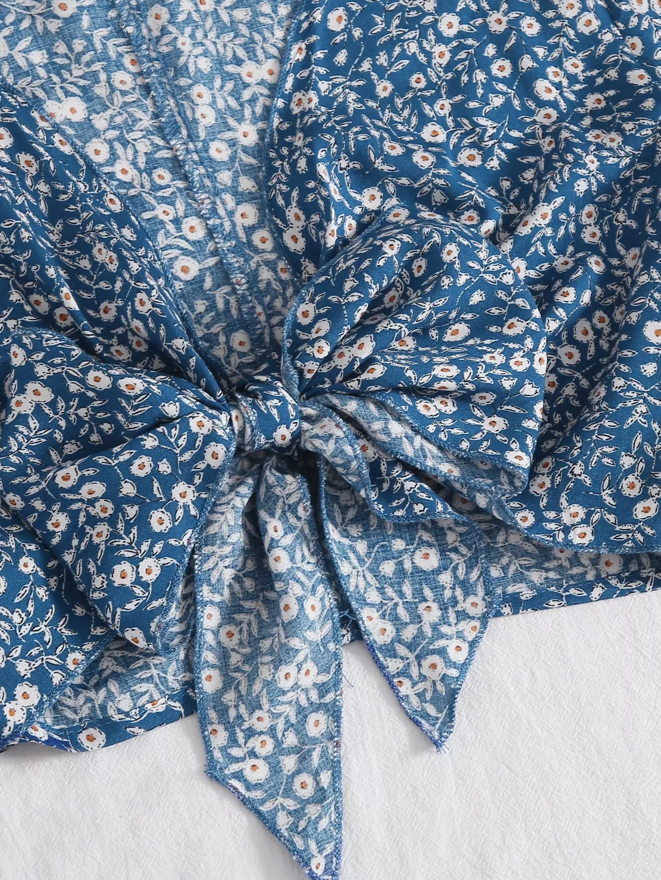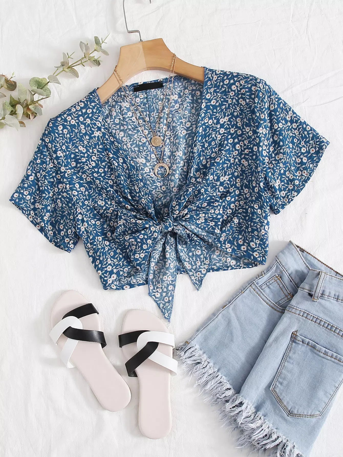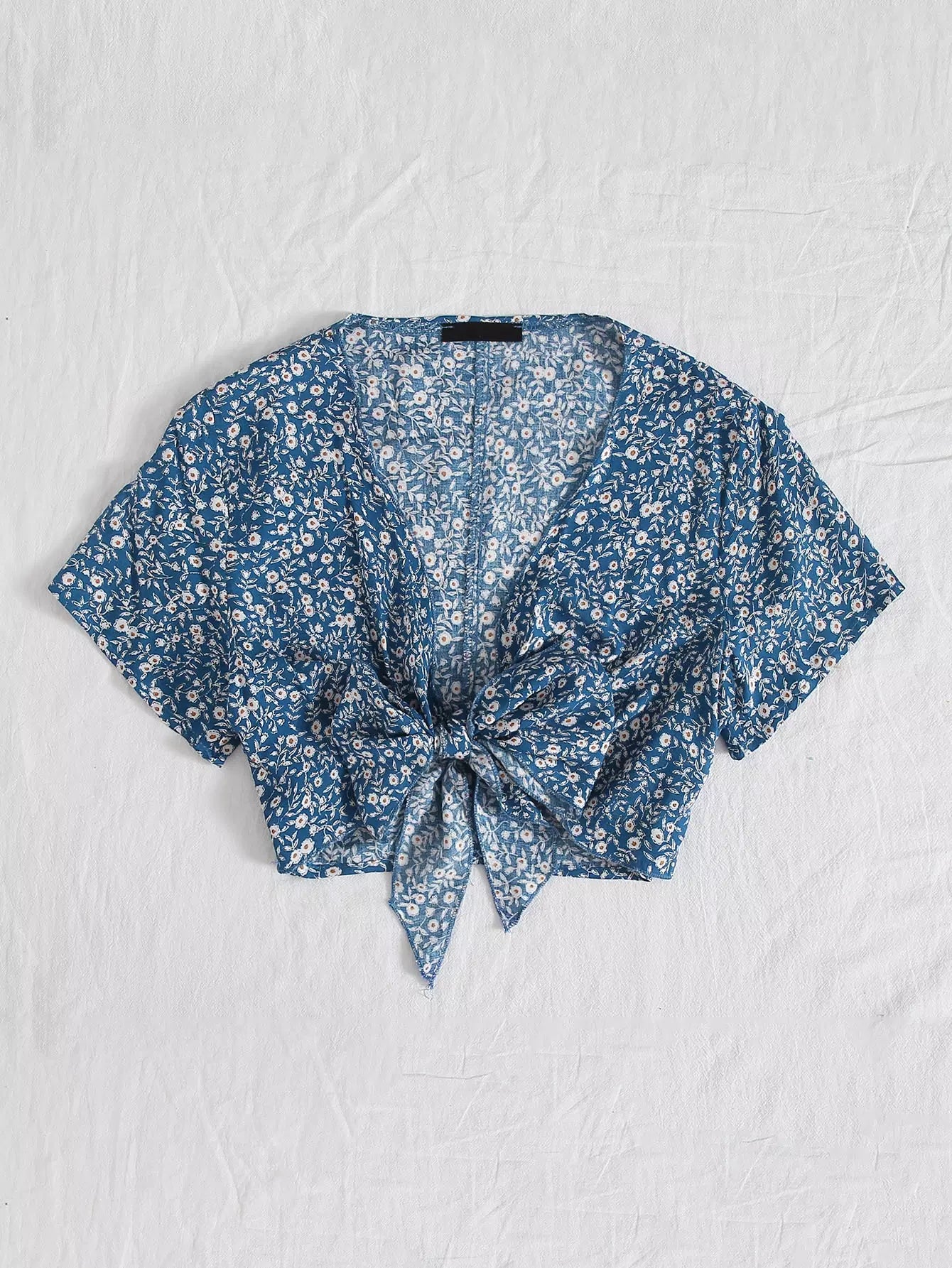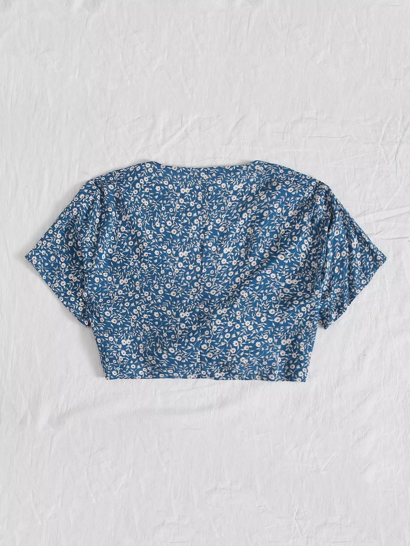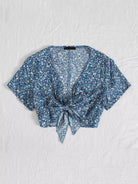 Women - Plus Tie Front Ditsy Floral Crop Top