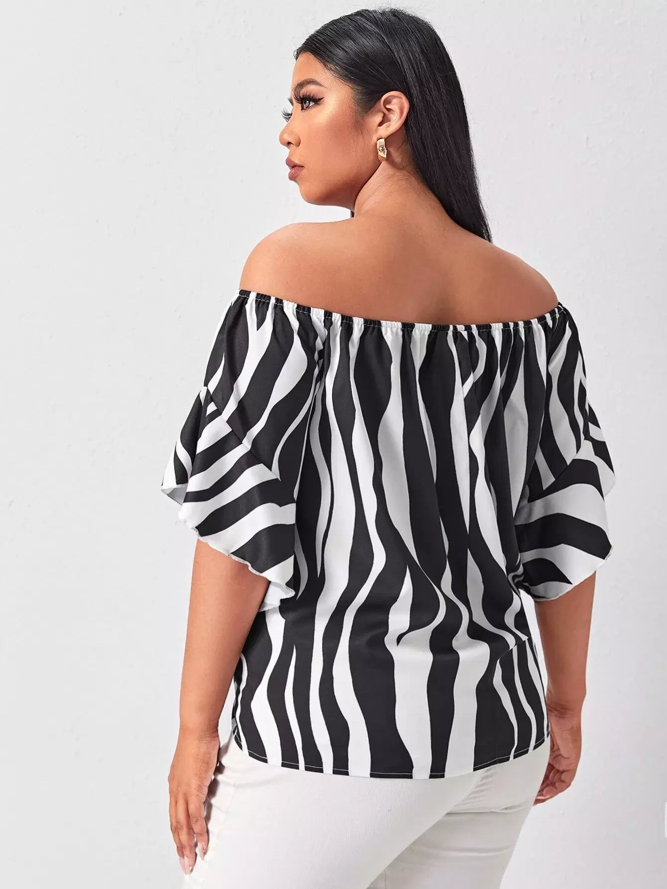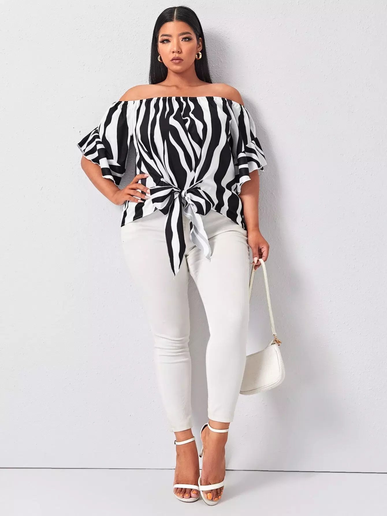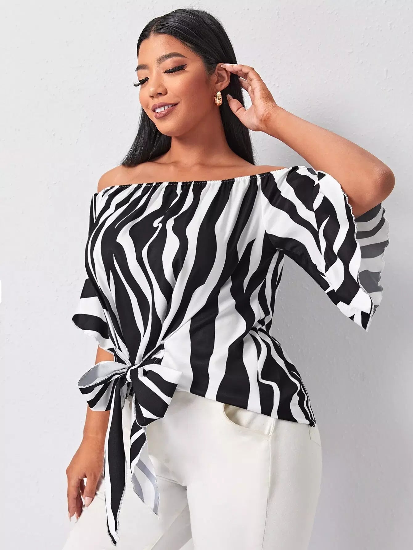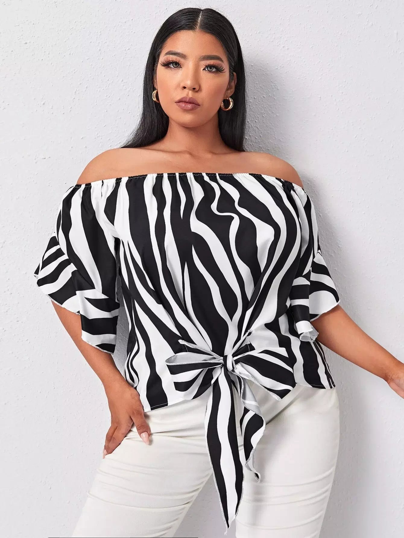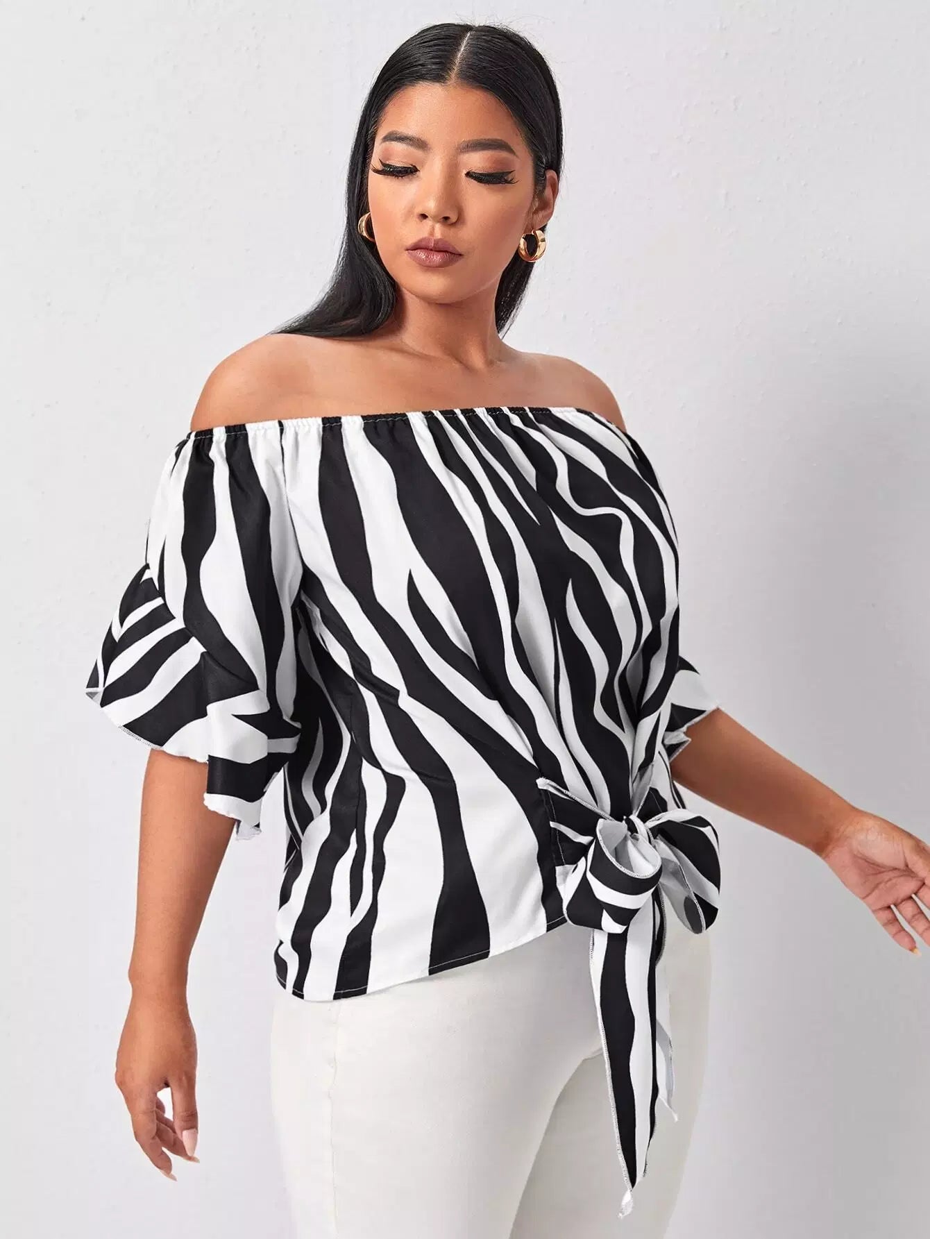 Plus Zebra Striped Knot Hem Bardot Blouse