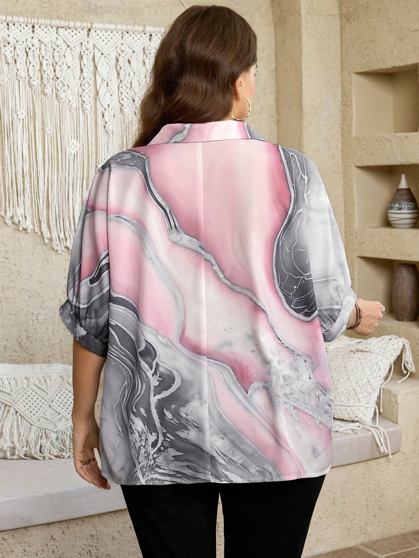 women SHEIN LUNE Plus Size Leopard Print Front Open Collar Short Sleeve Shirt Women's Vacation Clothing