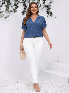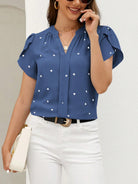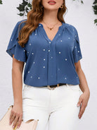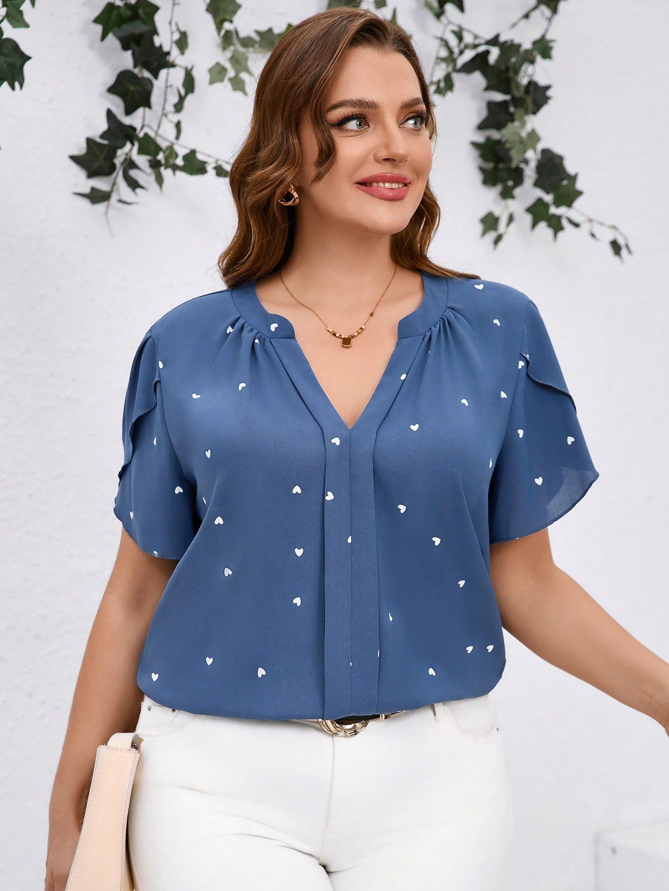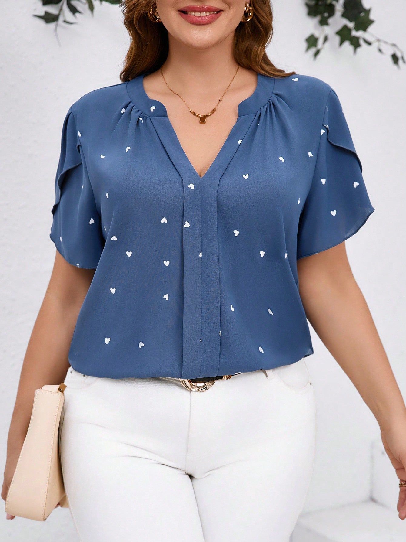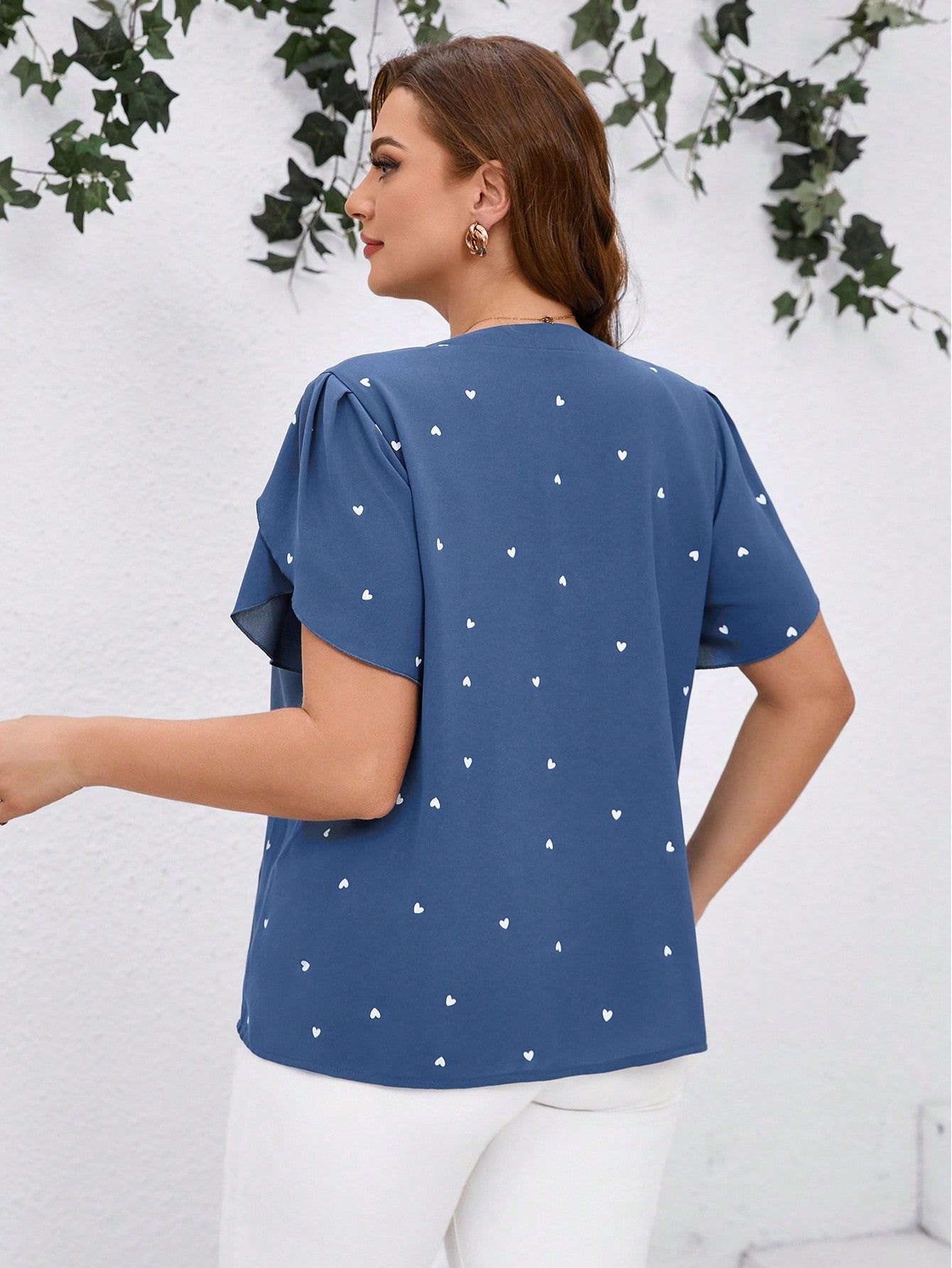 Clasi Plus Size Women Heart Print V-Neck Ruffle Sleeve Blouse