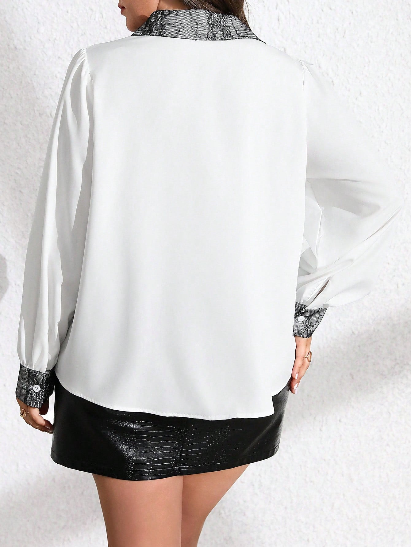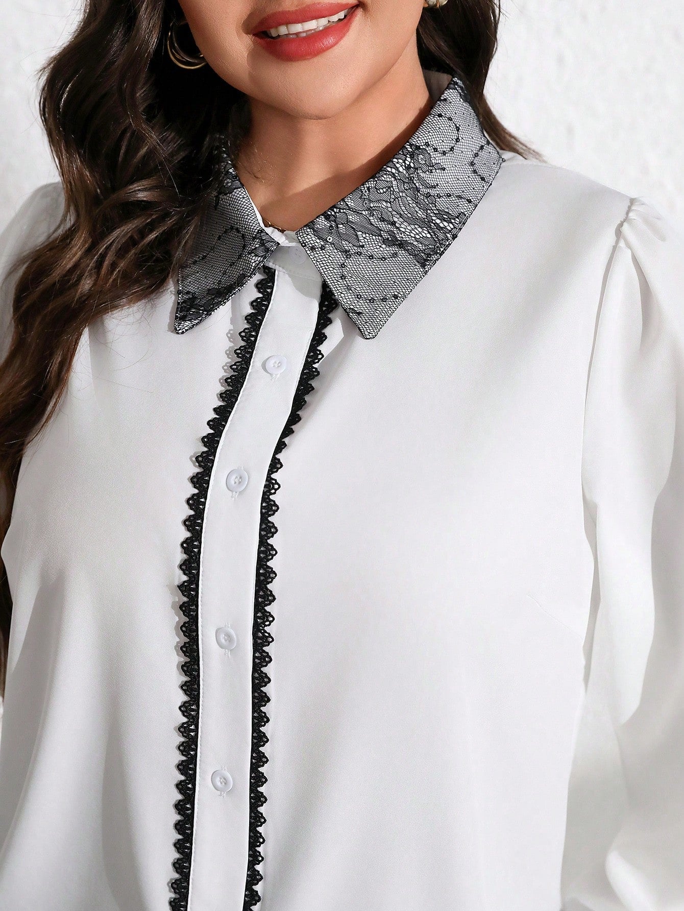 Clasi Plus Size Women's White & Black Lace Patchwork Elegant Christmas Earrings, Regular Long Sleeve