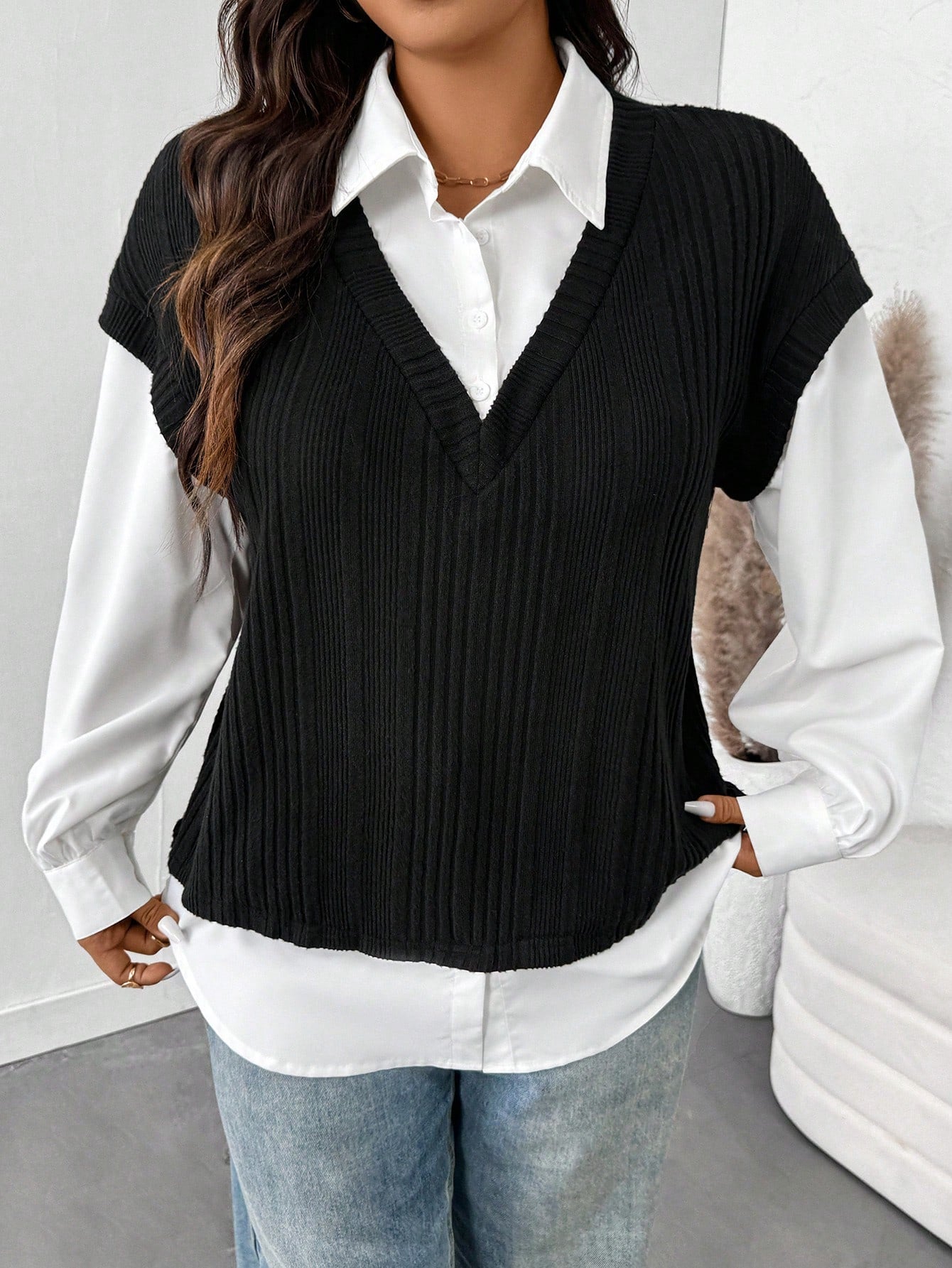Essnce Plus Size Women's Simple Casual Blouse, Suitable For Commute And Daily Wear