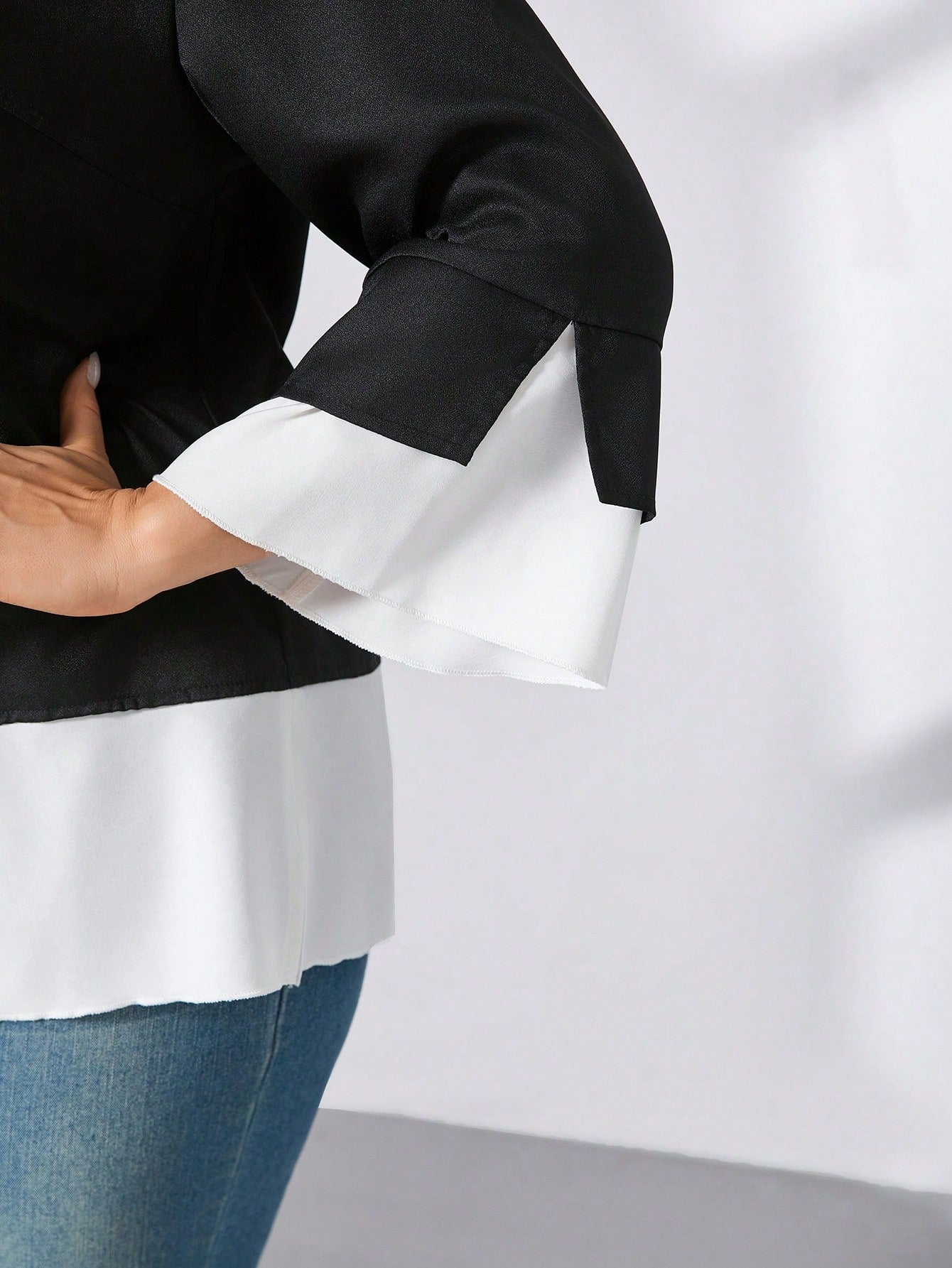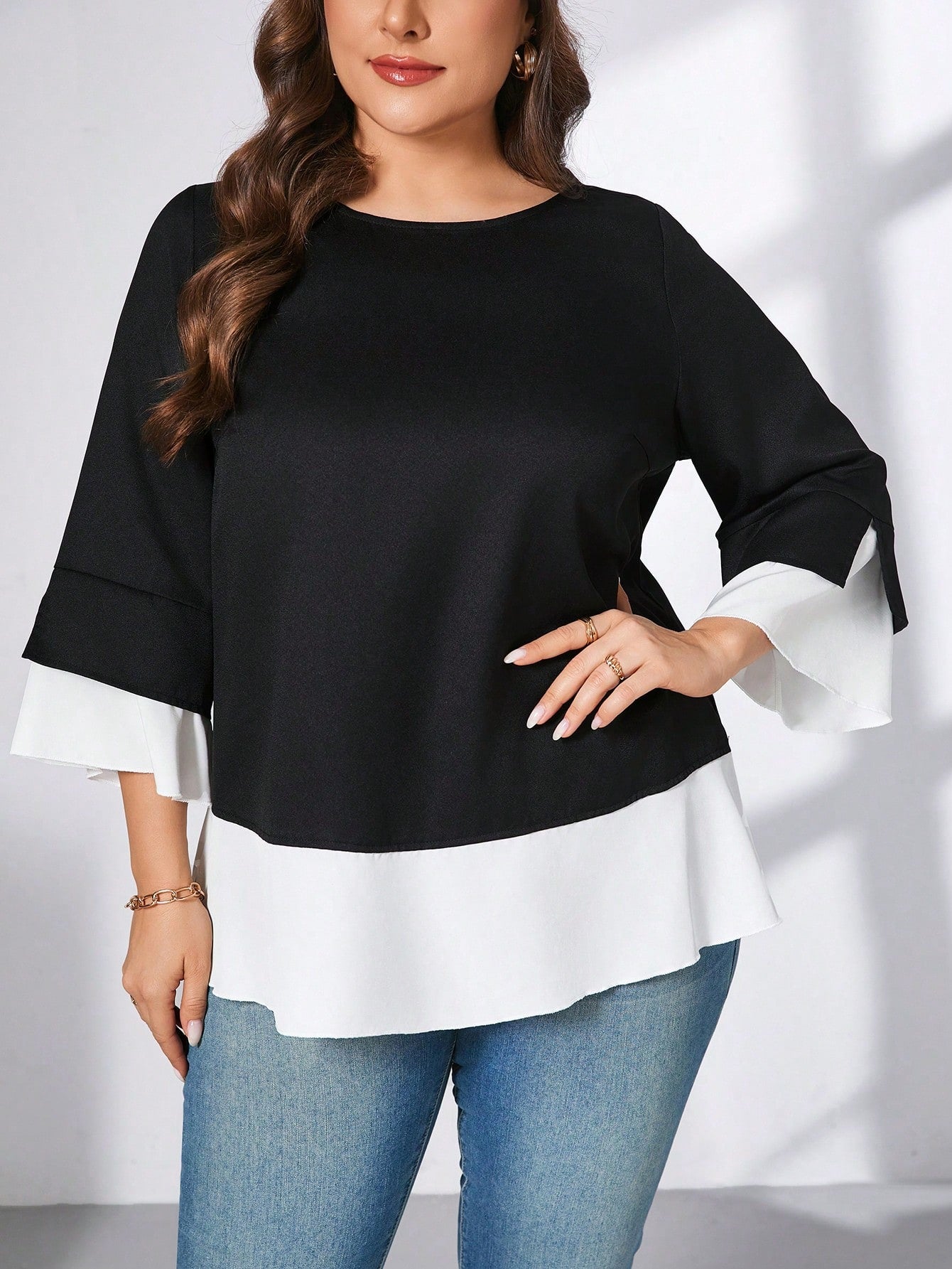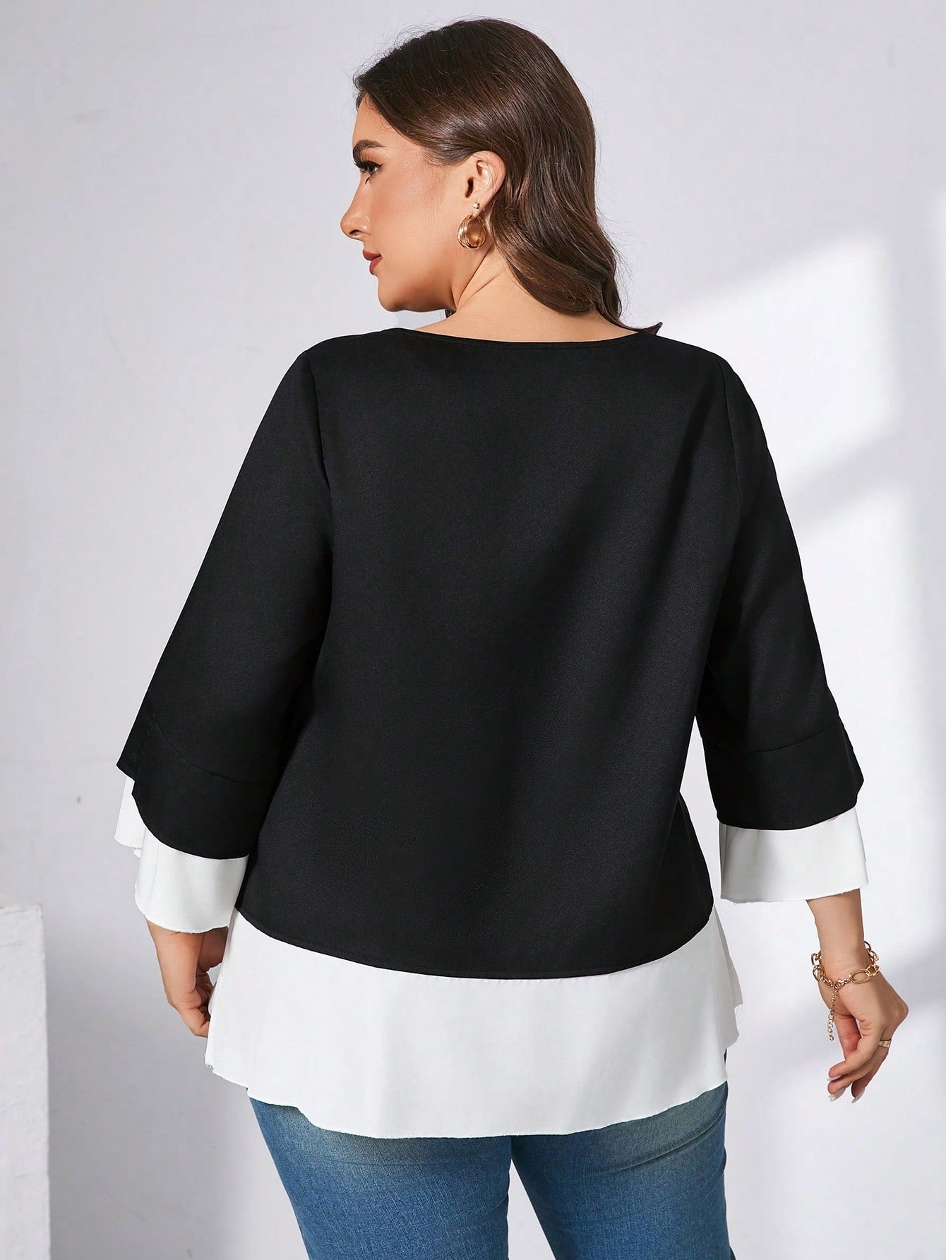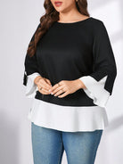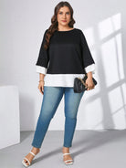 Essnce Plus Size Women's Spring And Summer Fashion Casual Loose And Comfortable Daily Black 2 In 1 Three-Quarter