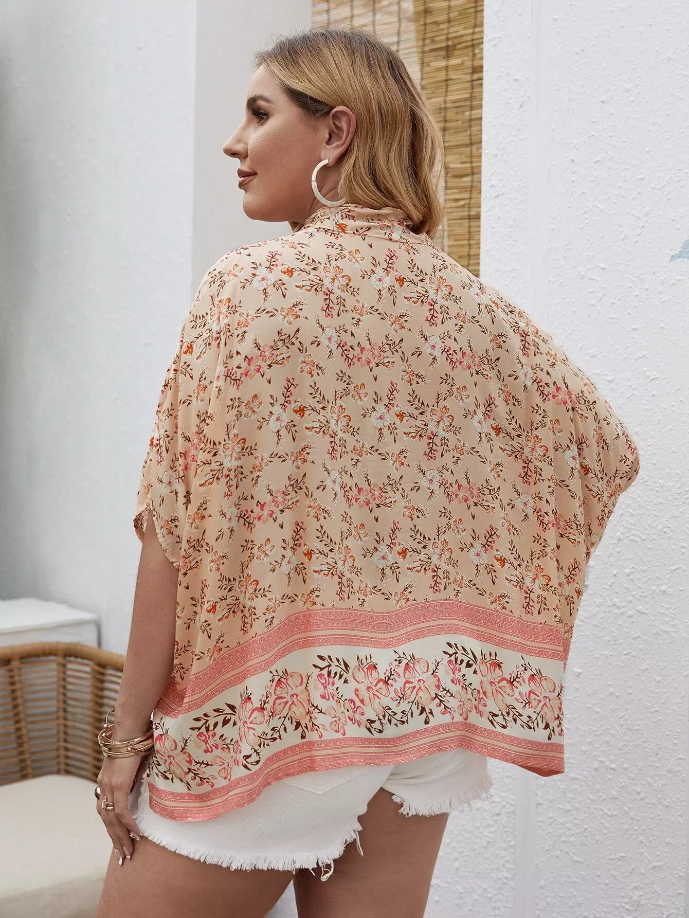 Plus Batwing Sleeve Floral Top