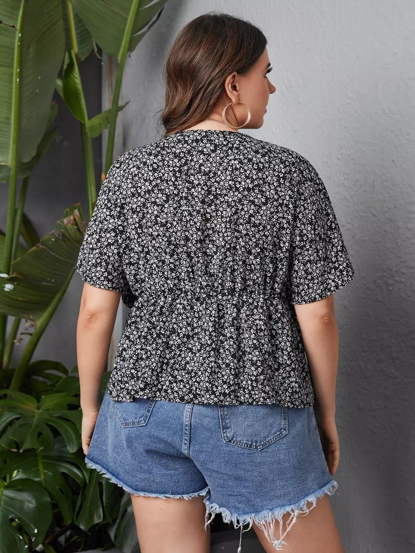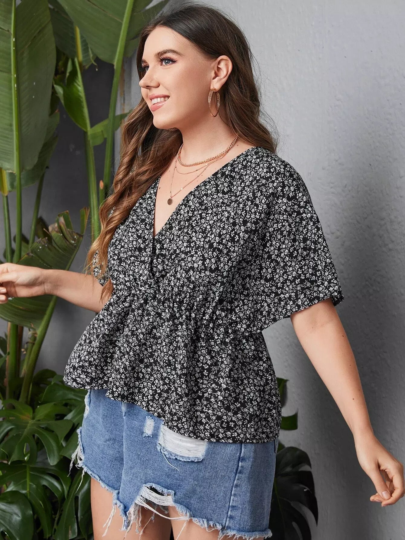 Plus Ditsy Floral Batwing Sleeve Blouse