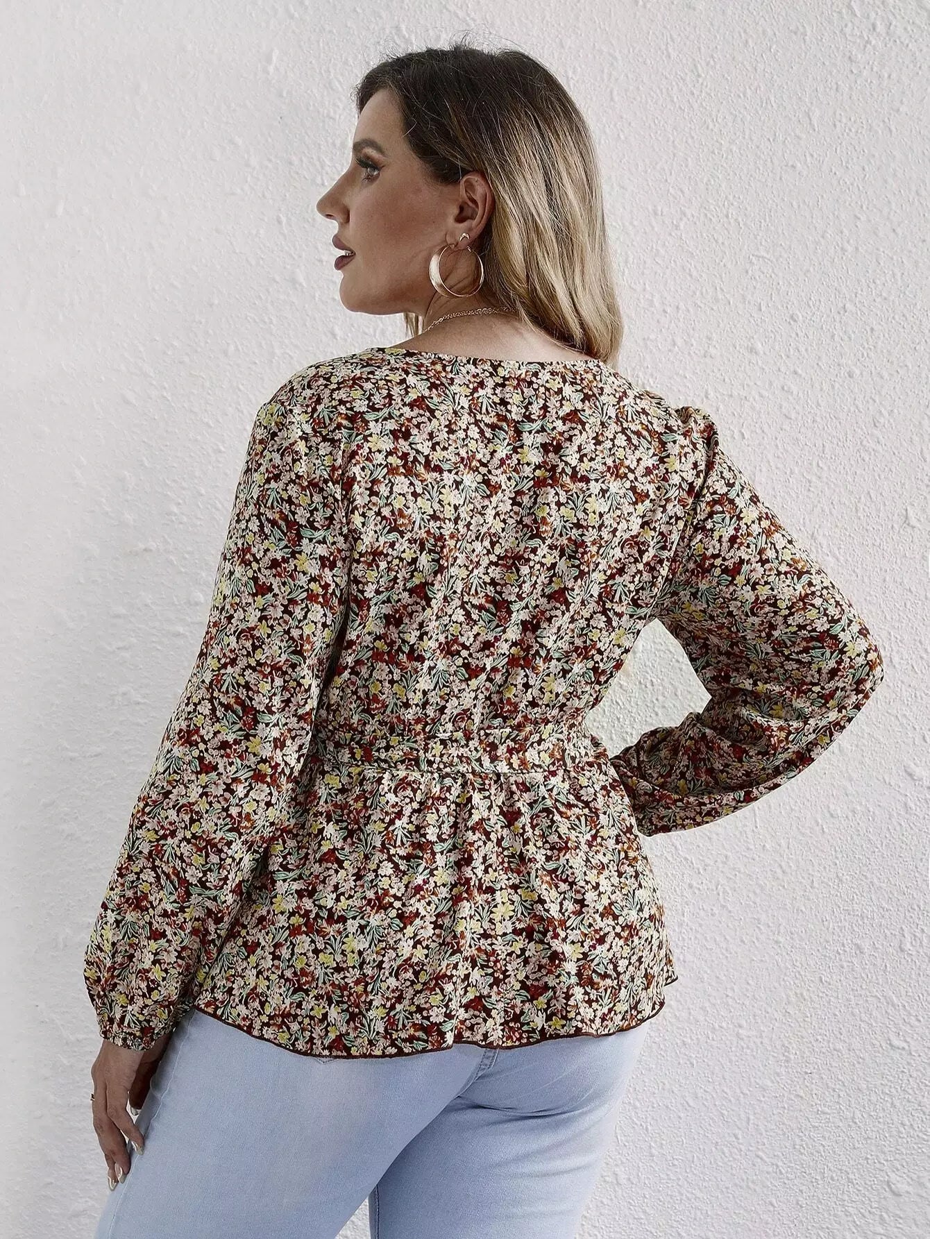 Plus Ditsy Floral Peplum Blouse Without Belt