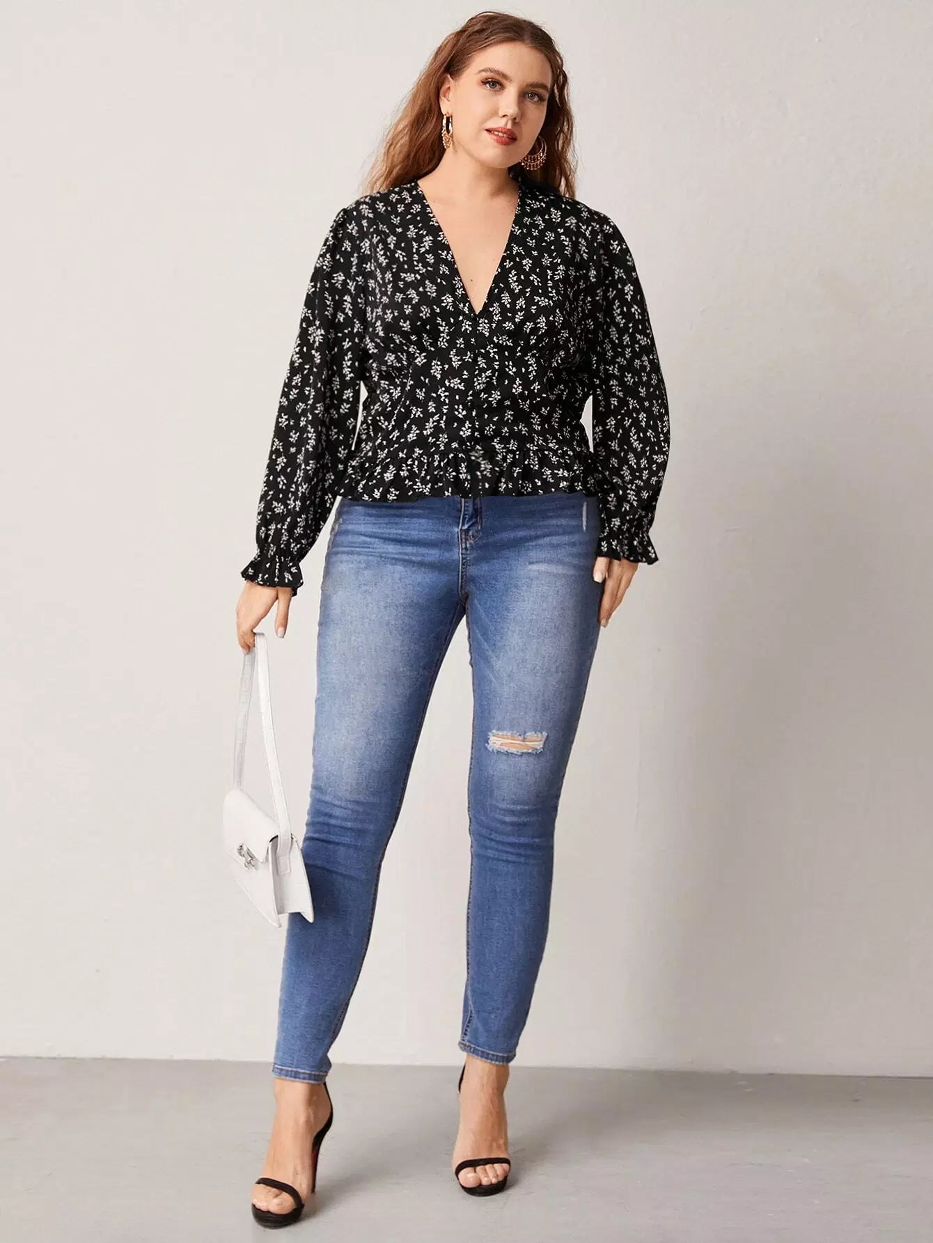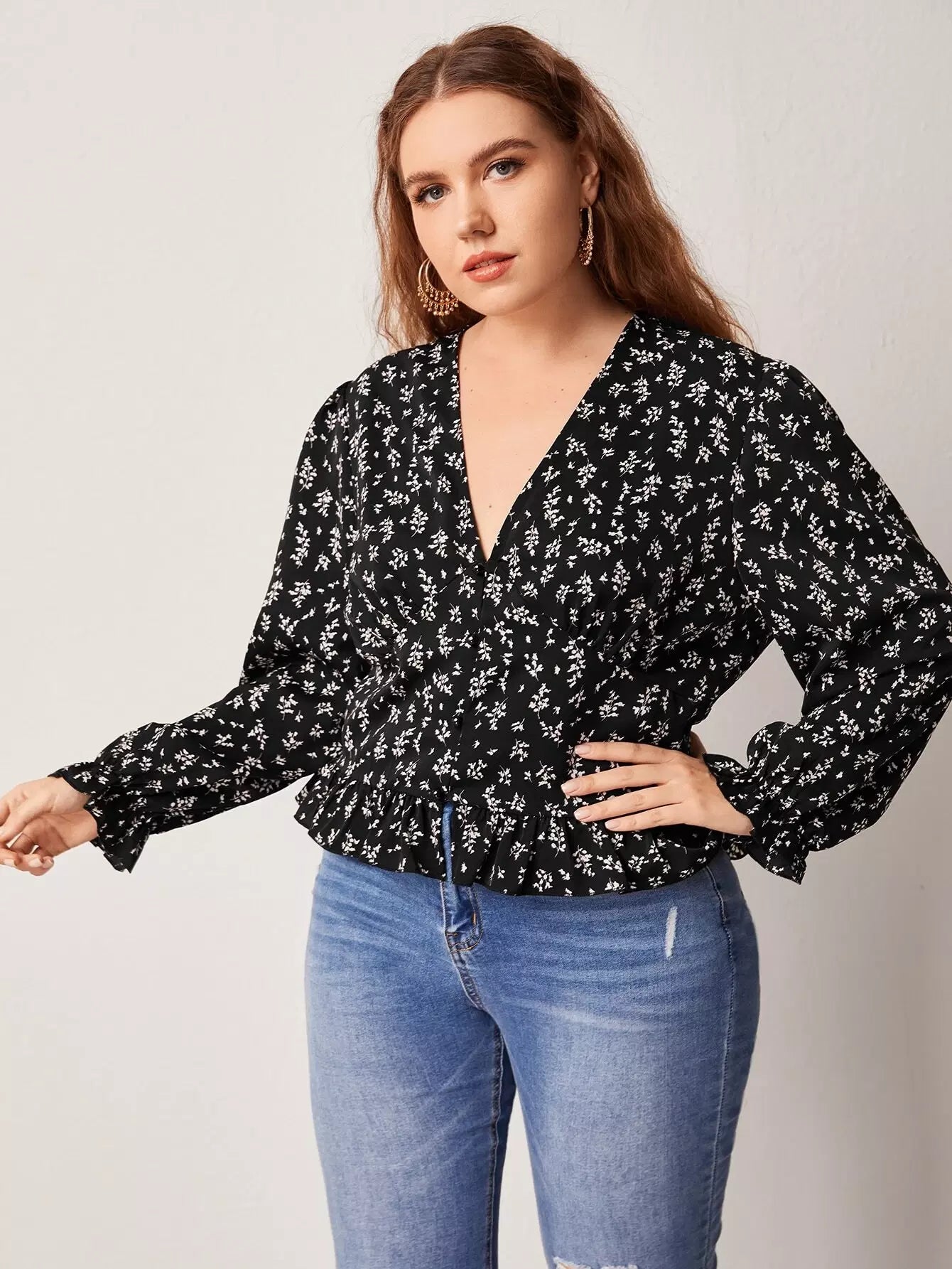 Plus Ditsy Floral Button Up Blouse
