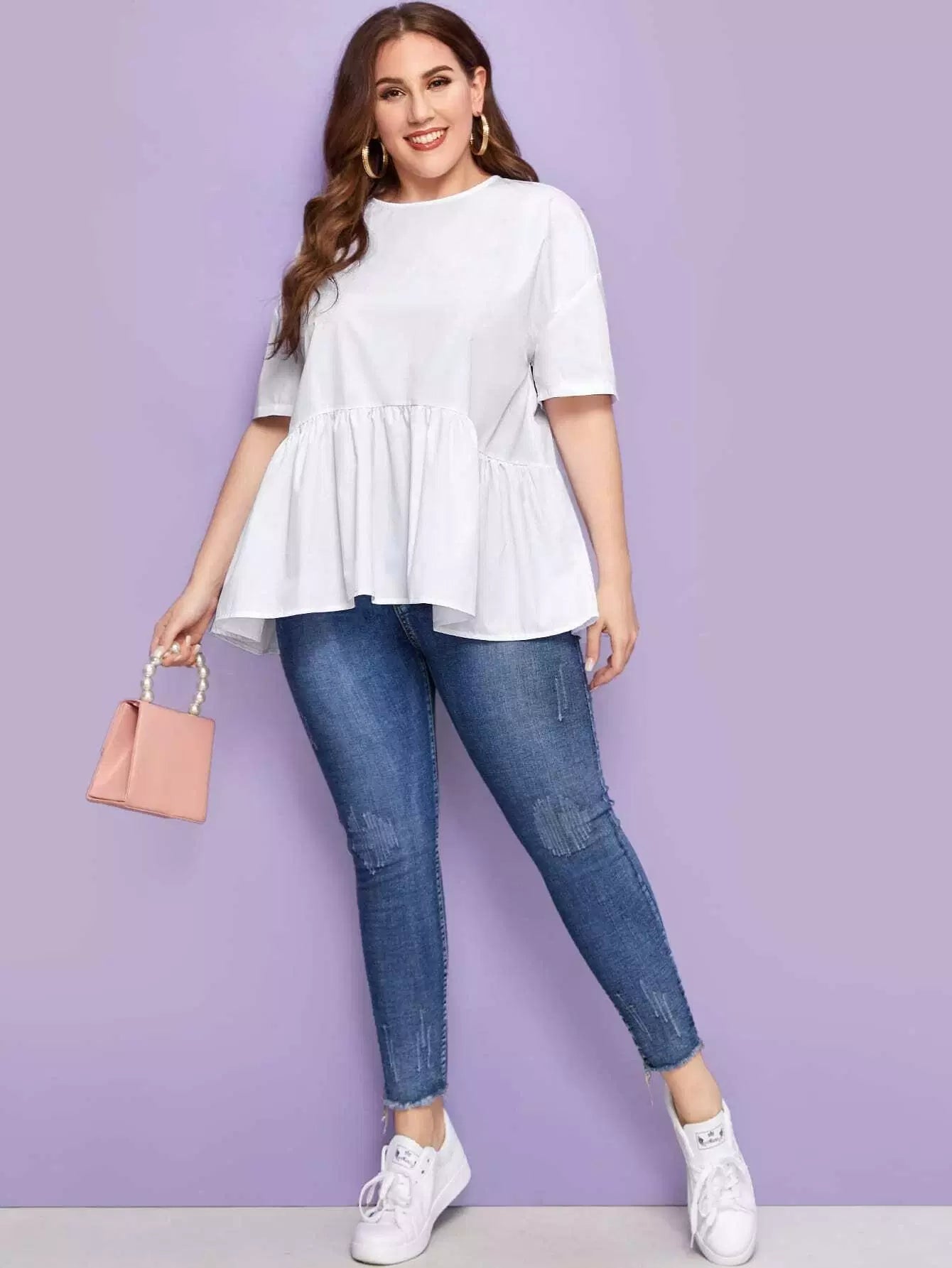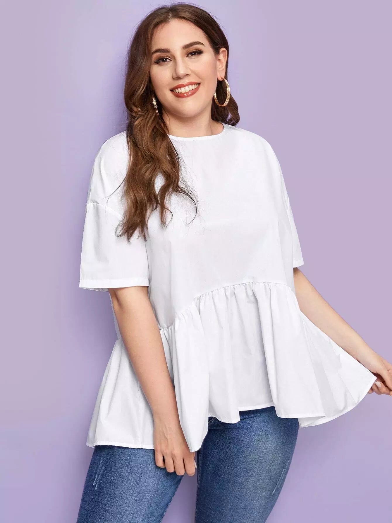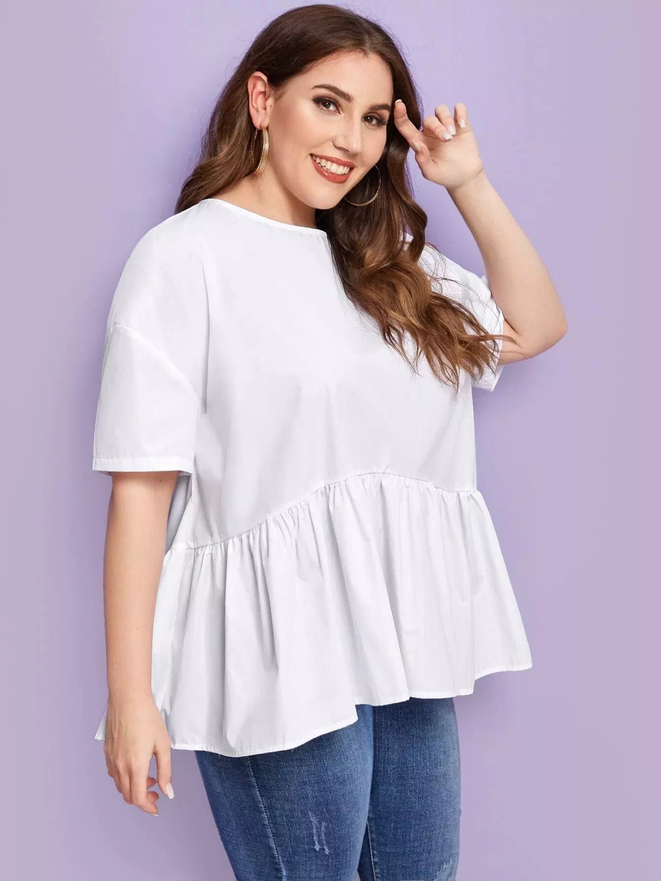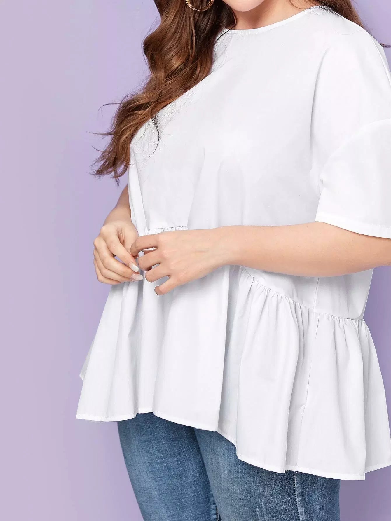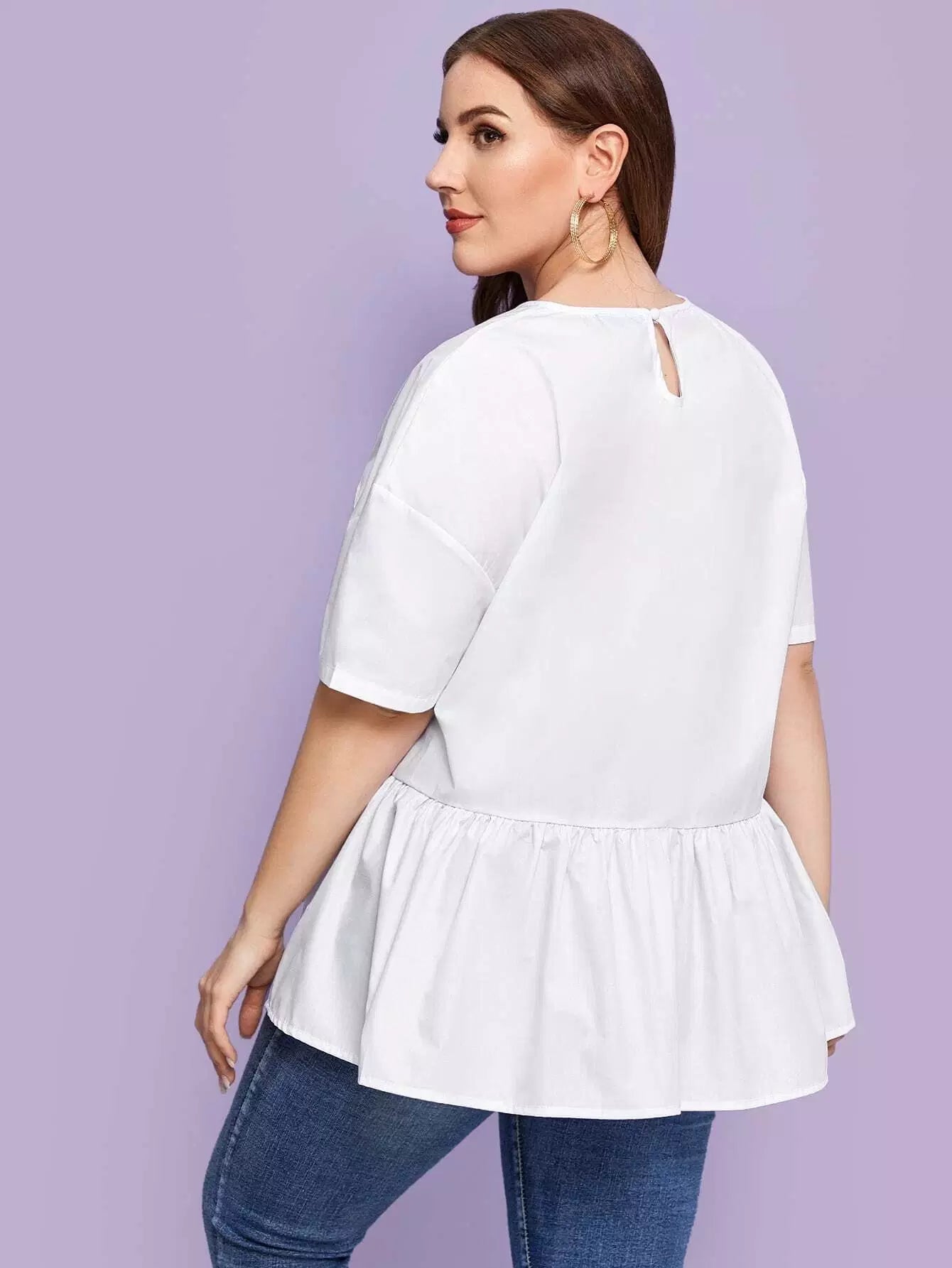 Plus Drop Shoulder Solid Peplum Top