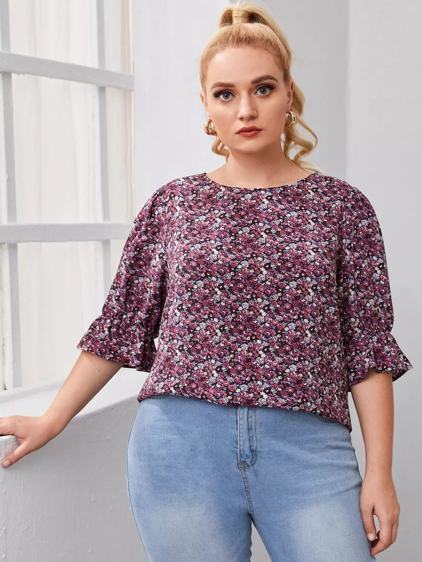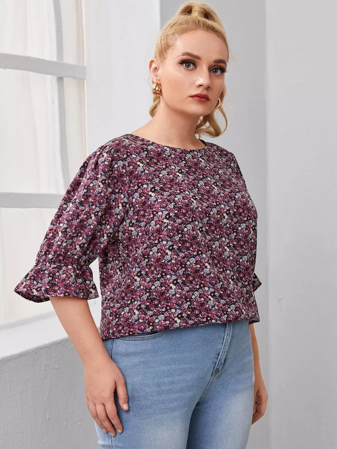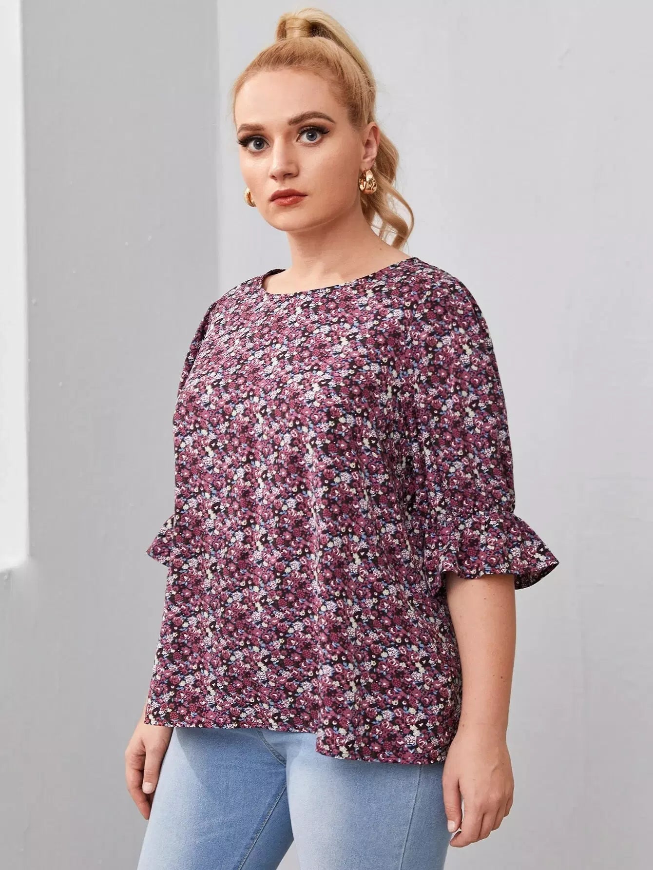 Women - Plus Flounce Sleeve Ditsy Floral Top