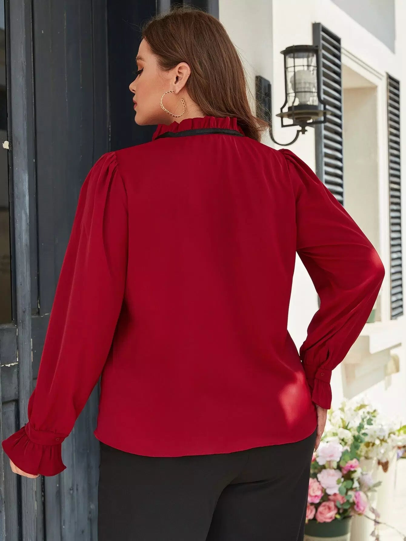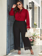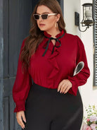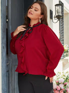 Plus Frilled Ruffle Trim Tie Neck Flounce Sleeve Blouse