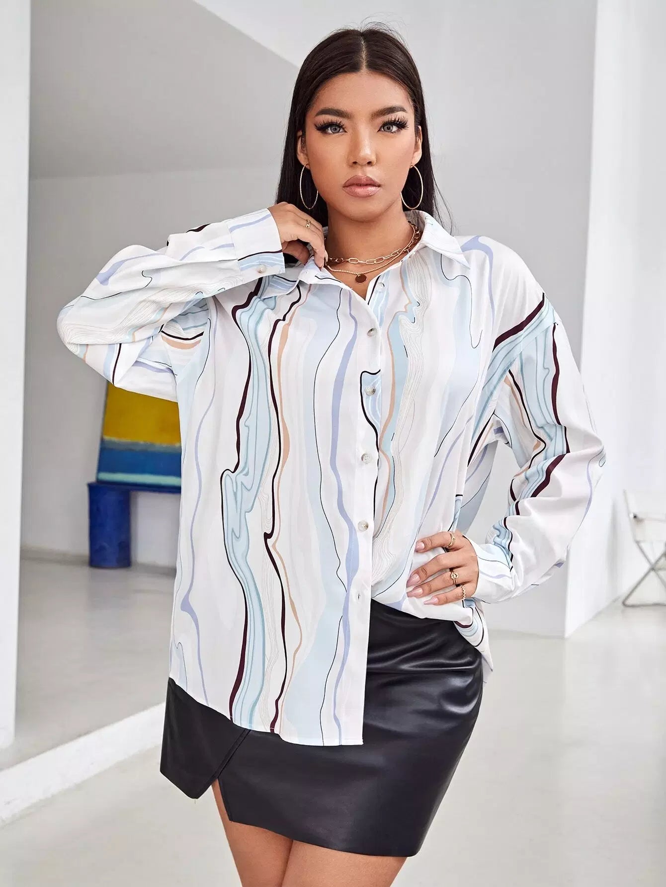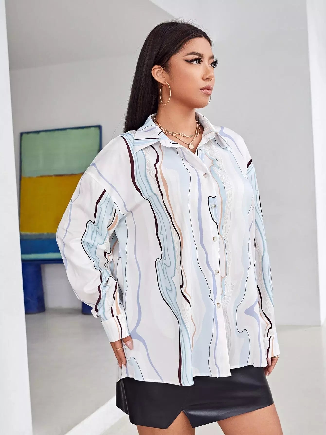 Women - Plus Graphic Print Drop Shoulder Blouse