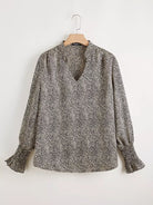 Plus Notch Neck Allover Print Blouse