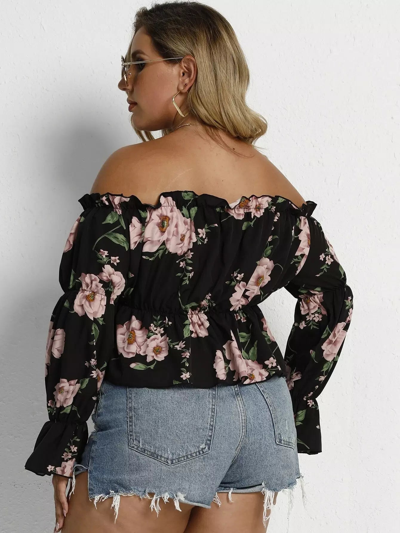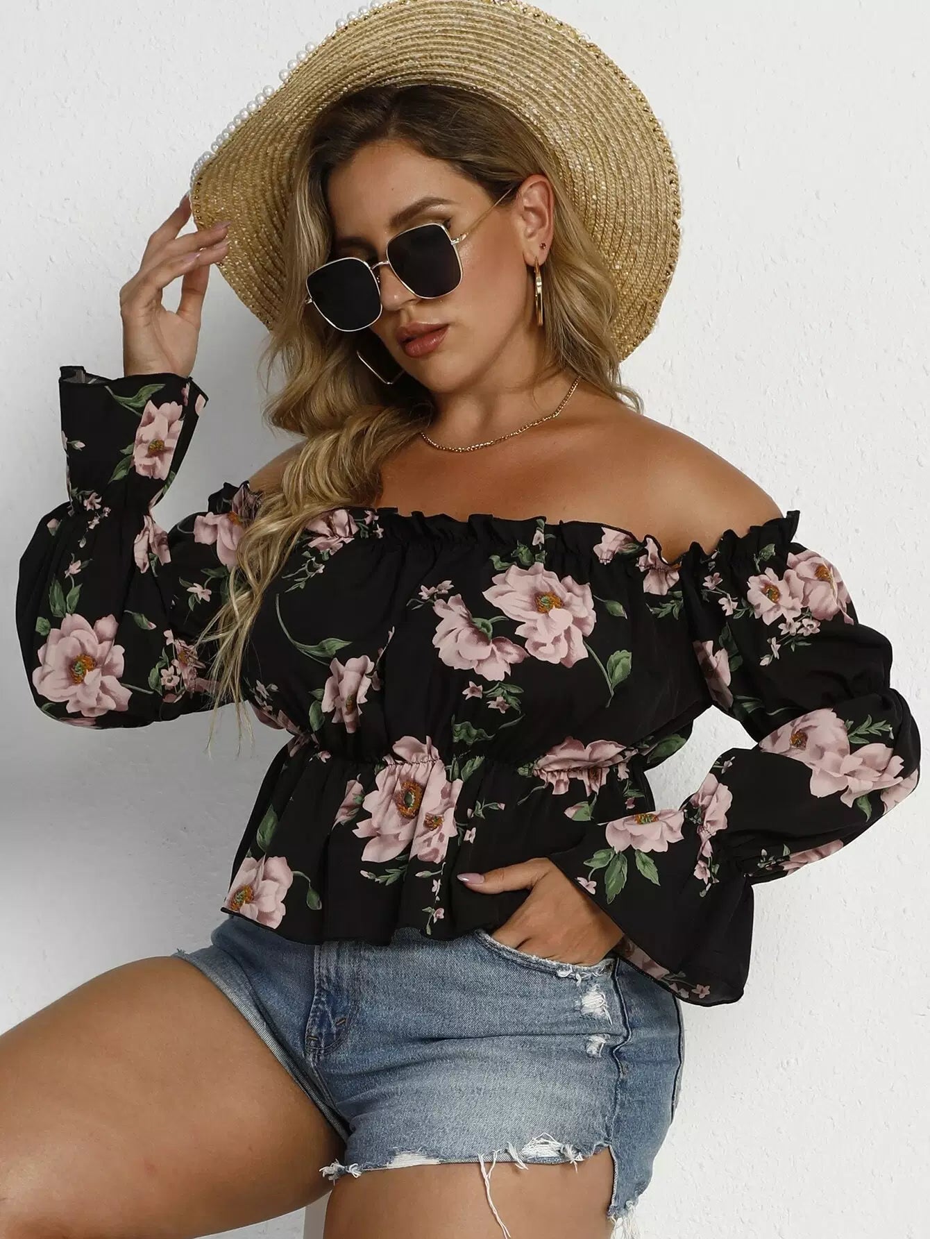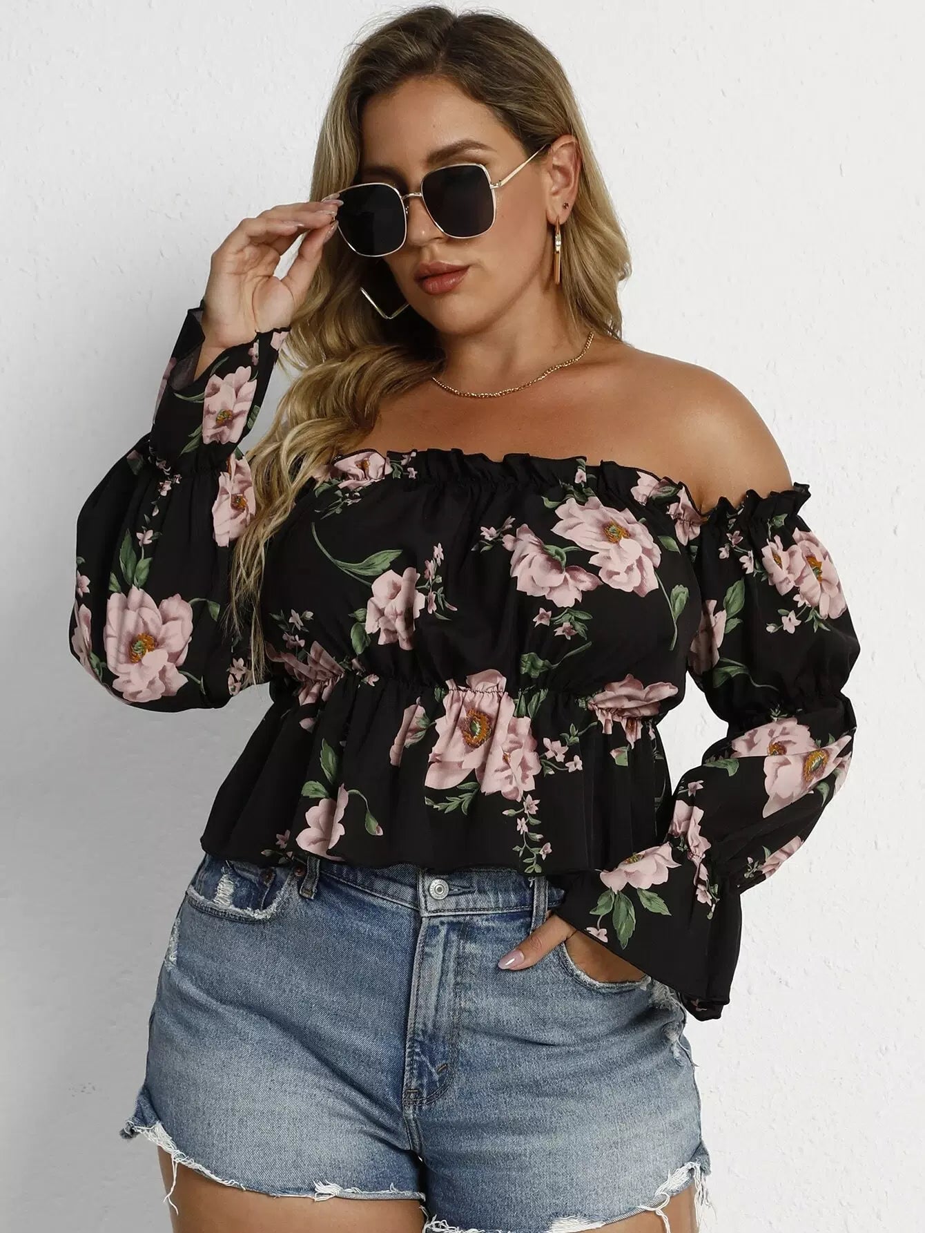 Plus Off Shoulder Floral Print Blouse