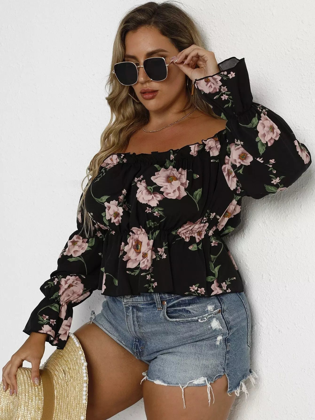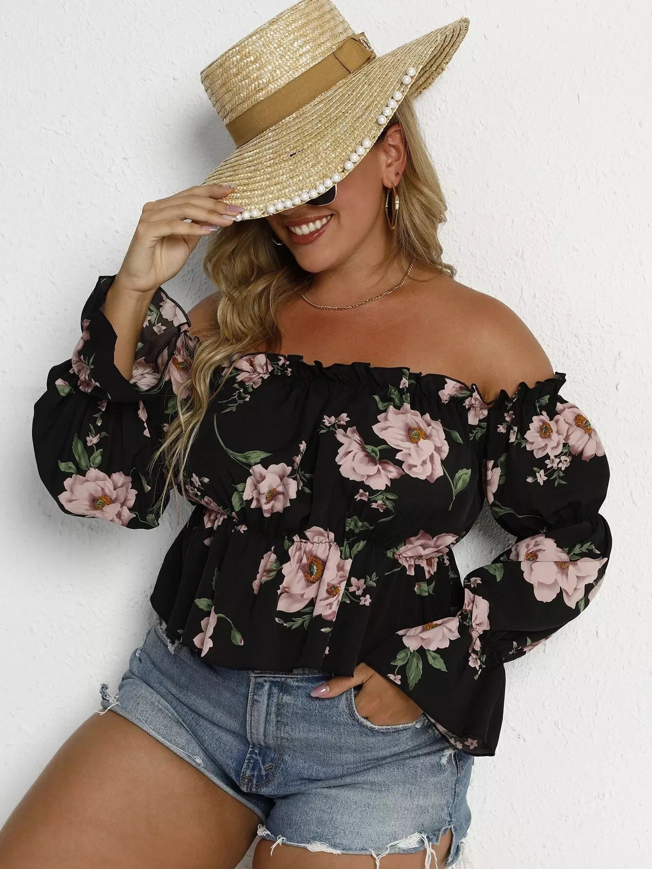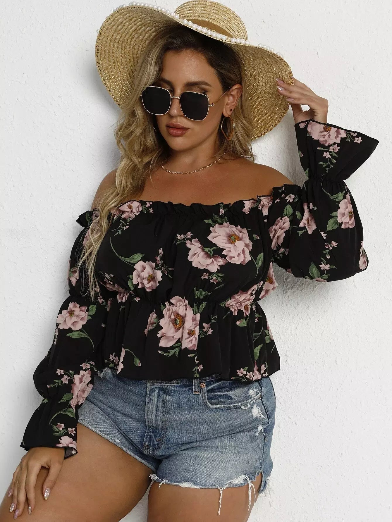 Plus Off Shoulder Floral Print Blouse
