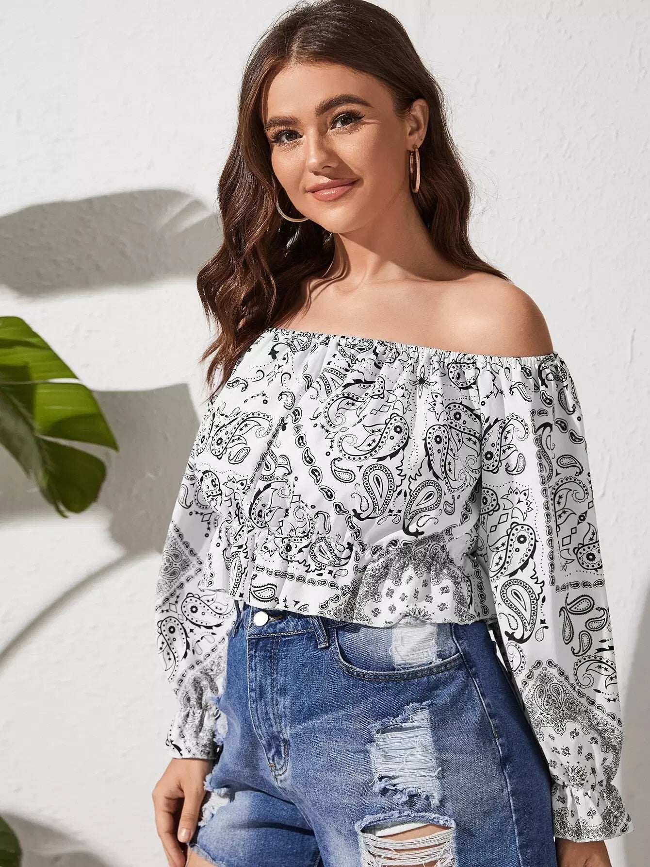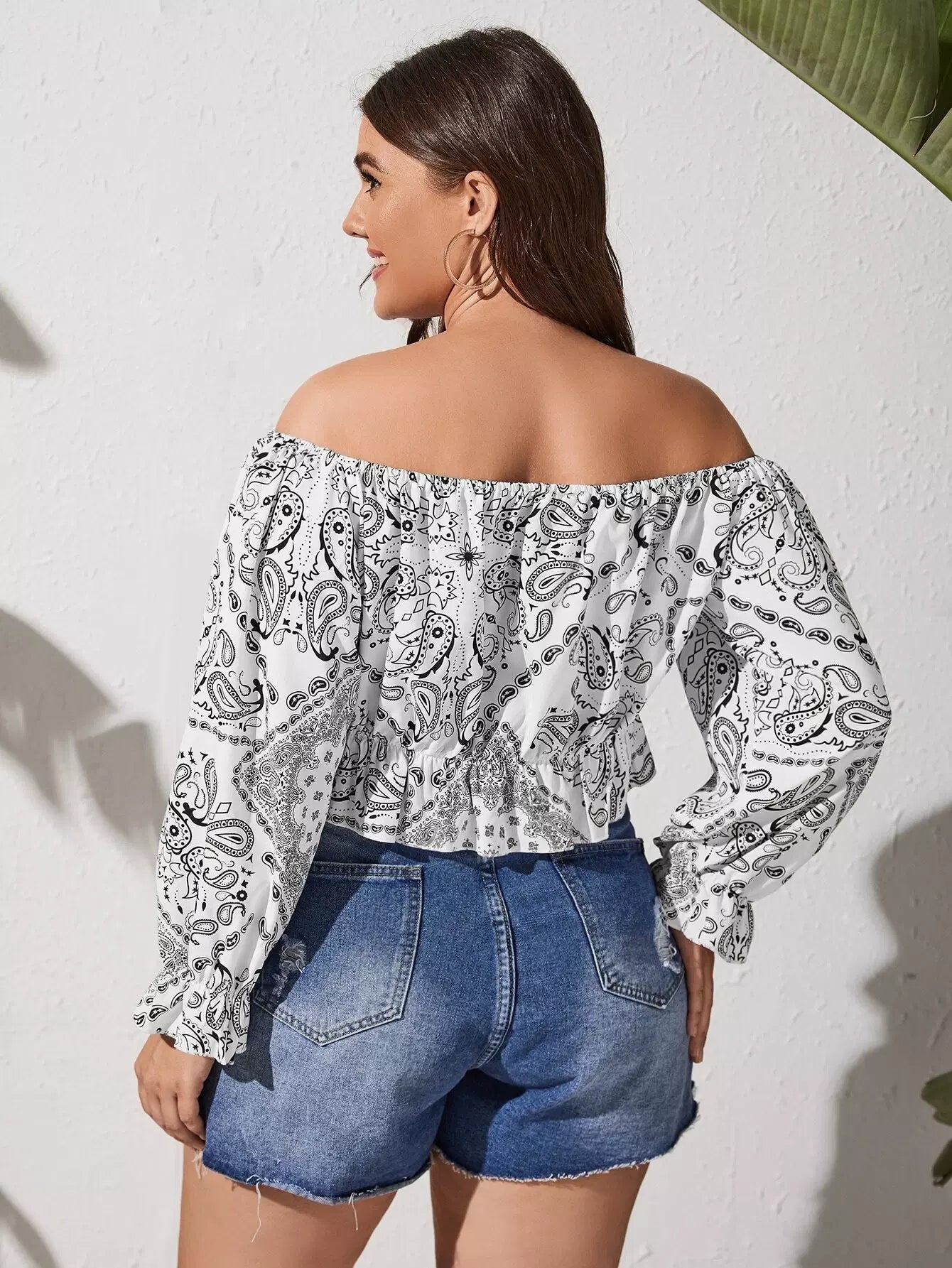 Plus Off-shoulder Paisley Print Peplum Blouse