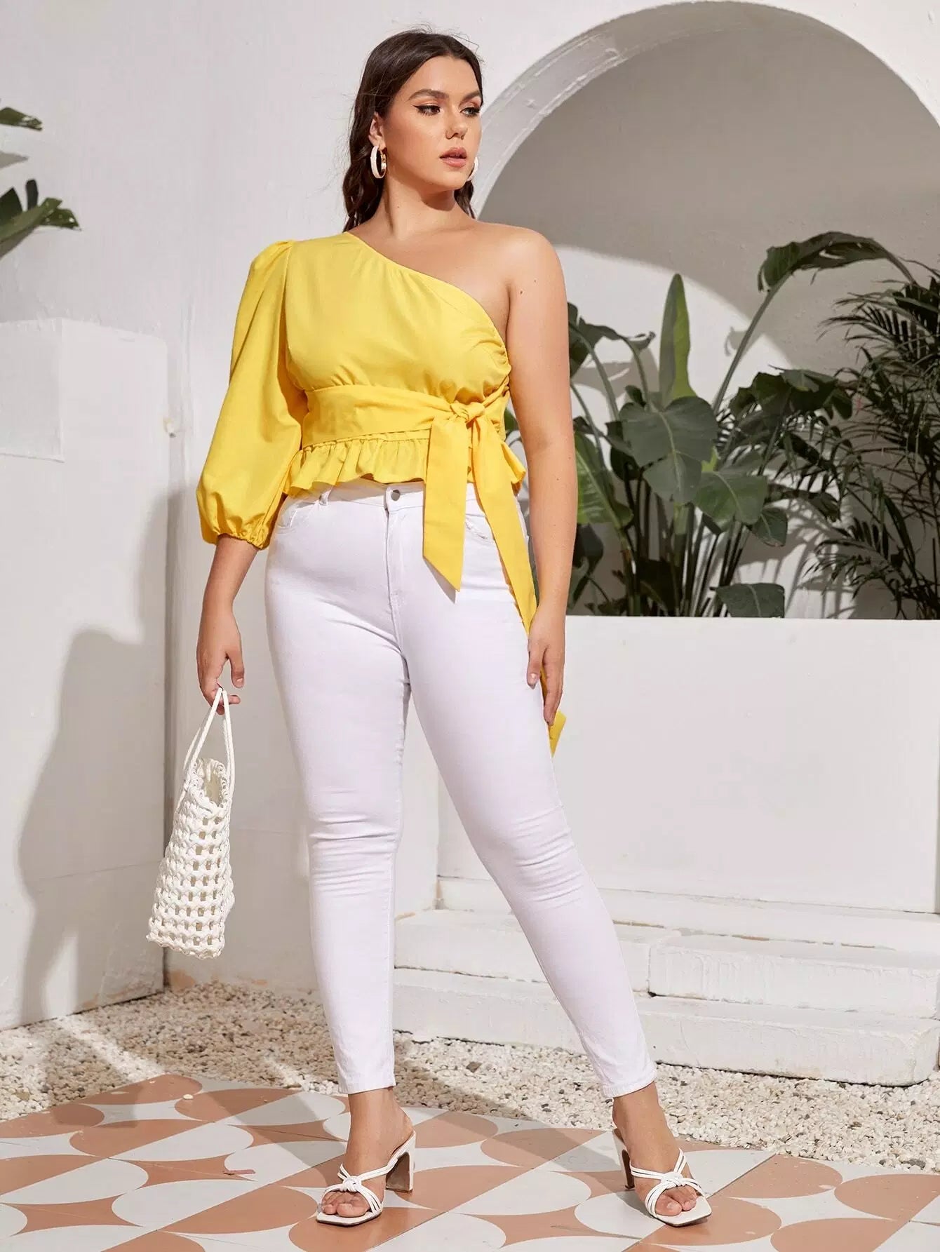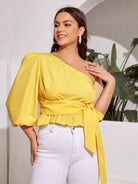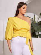 Plus One Shoulder Puff Sleeve Blouse Without Belt