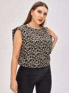 Plus Padded Shoulder Leopard Top