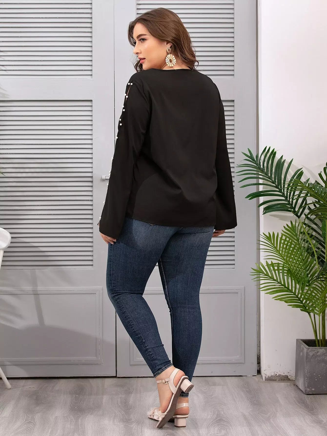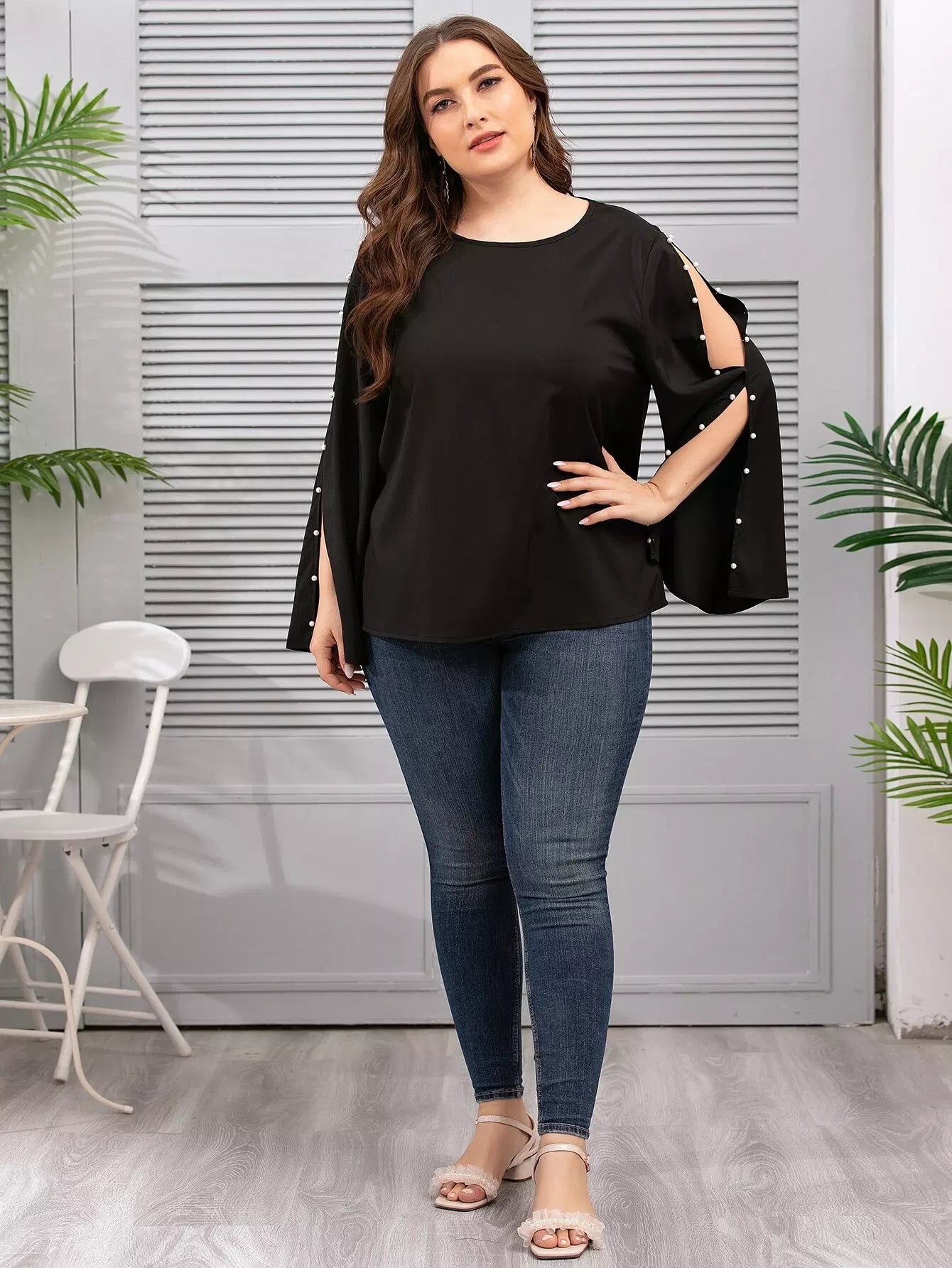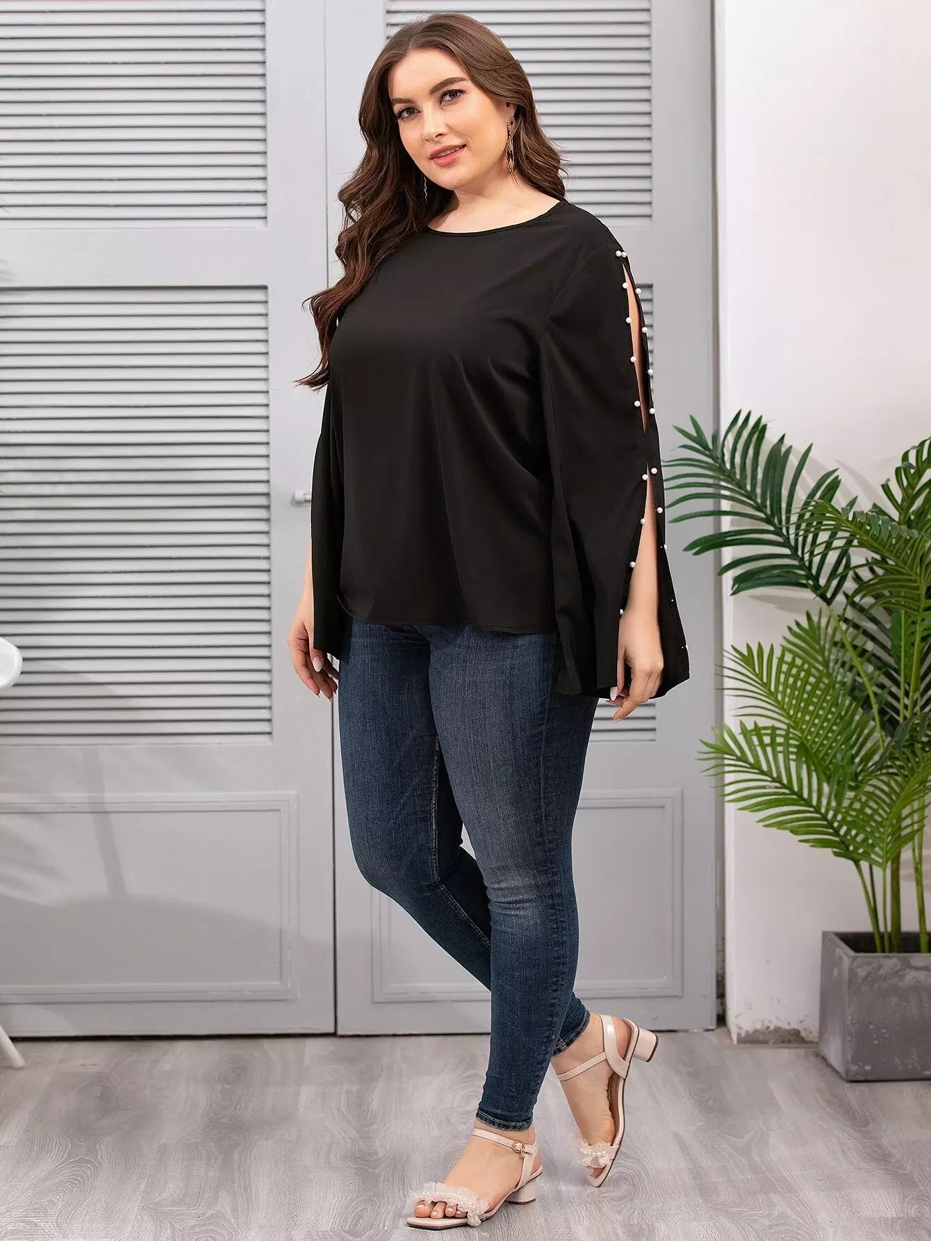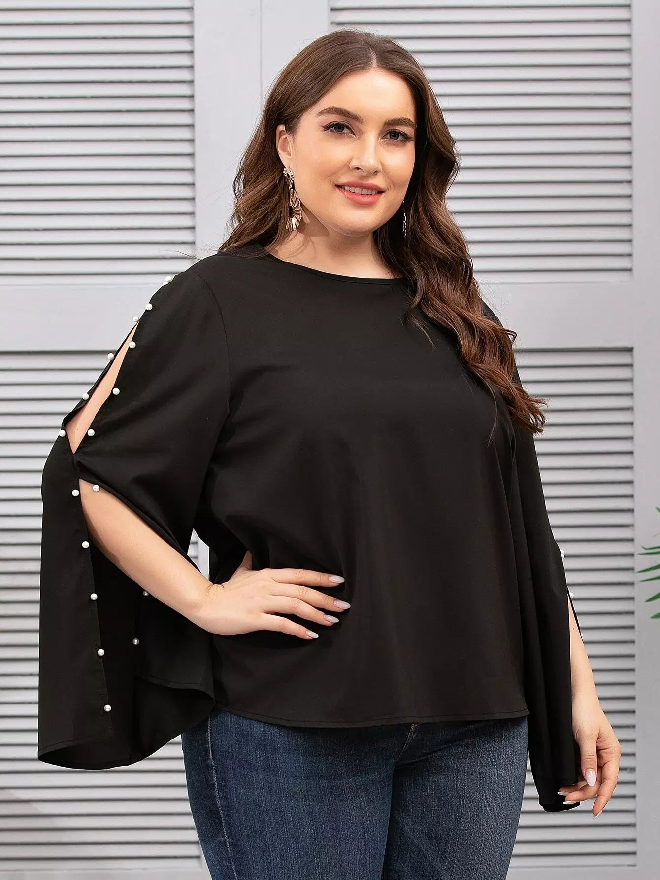 Plus Pearls Beaded Split Sleeve Blouse