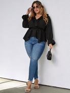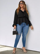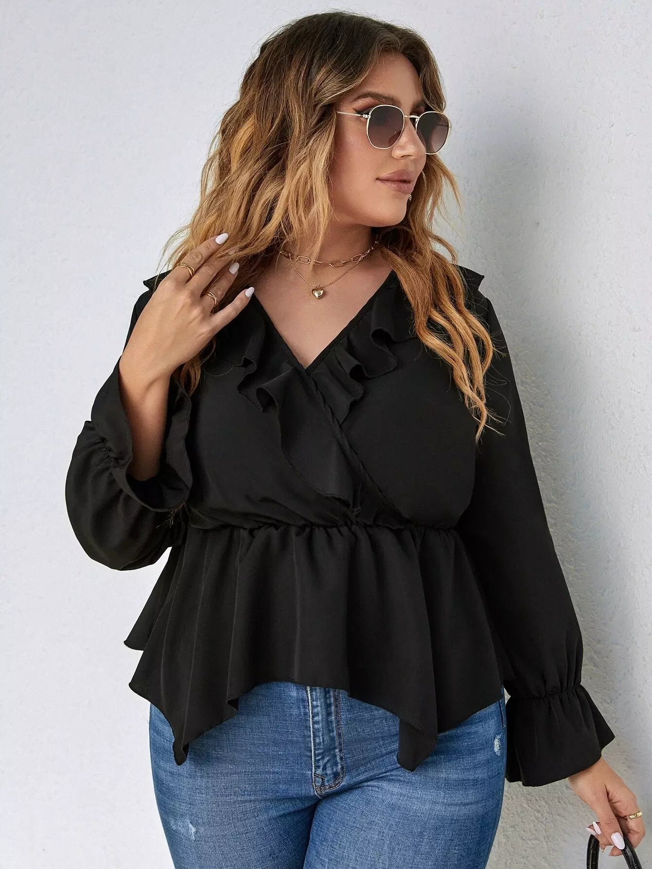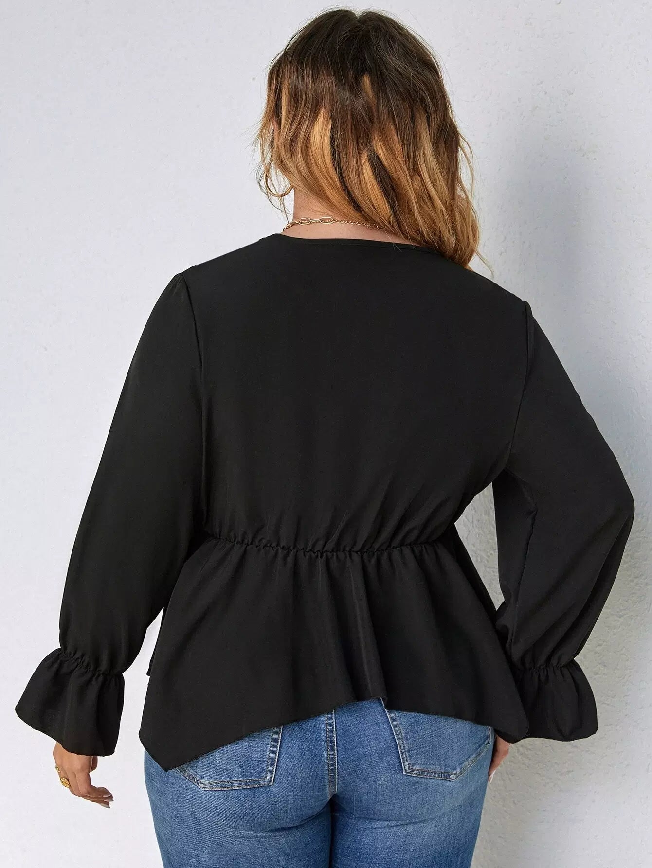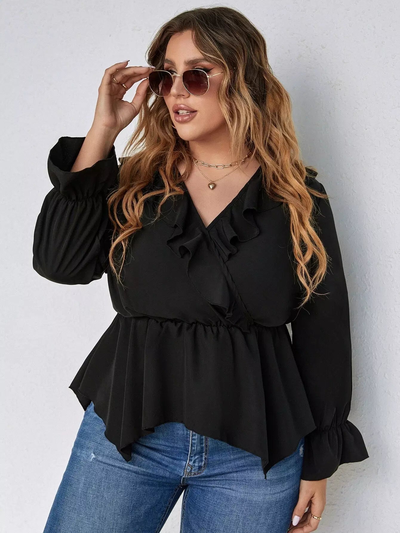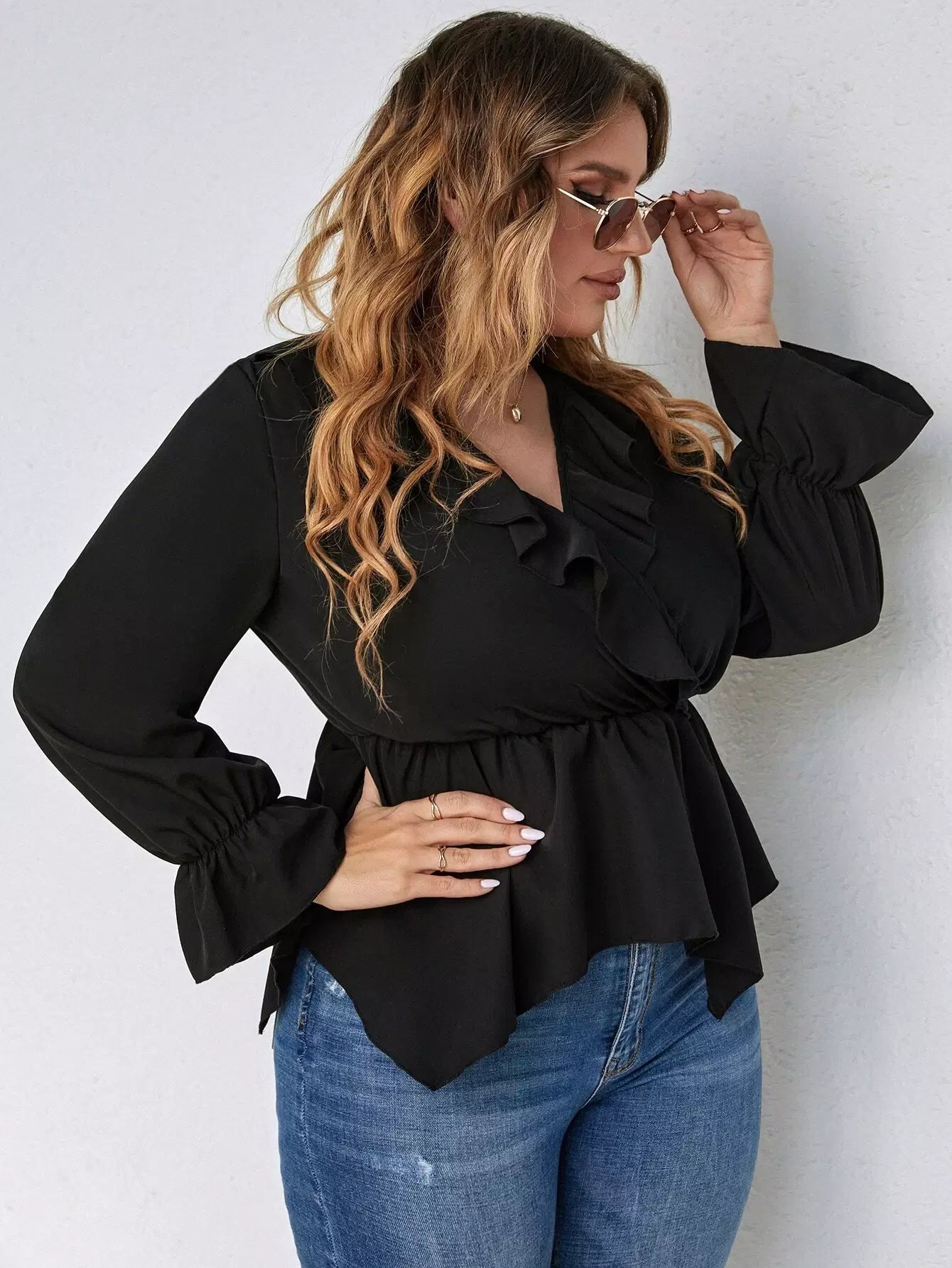 Plus Ruffle Trim Asymmetrical Peplum Blouse