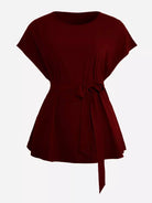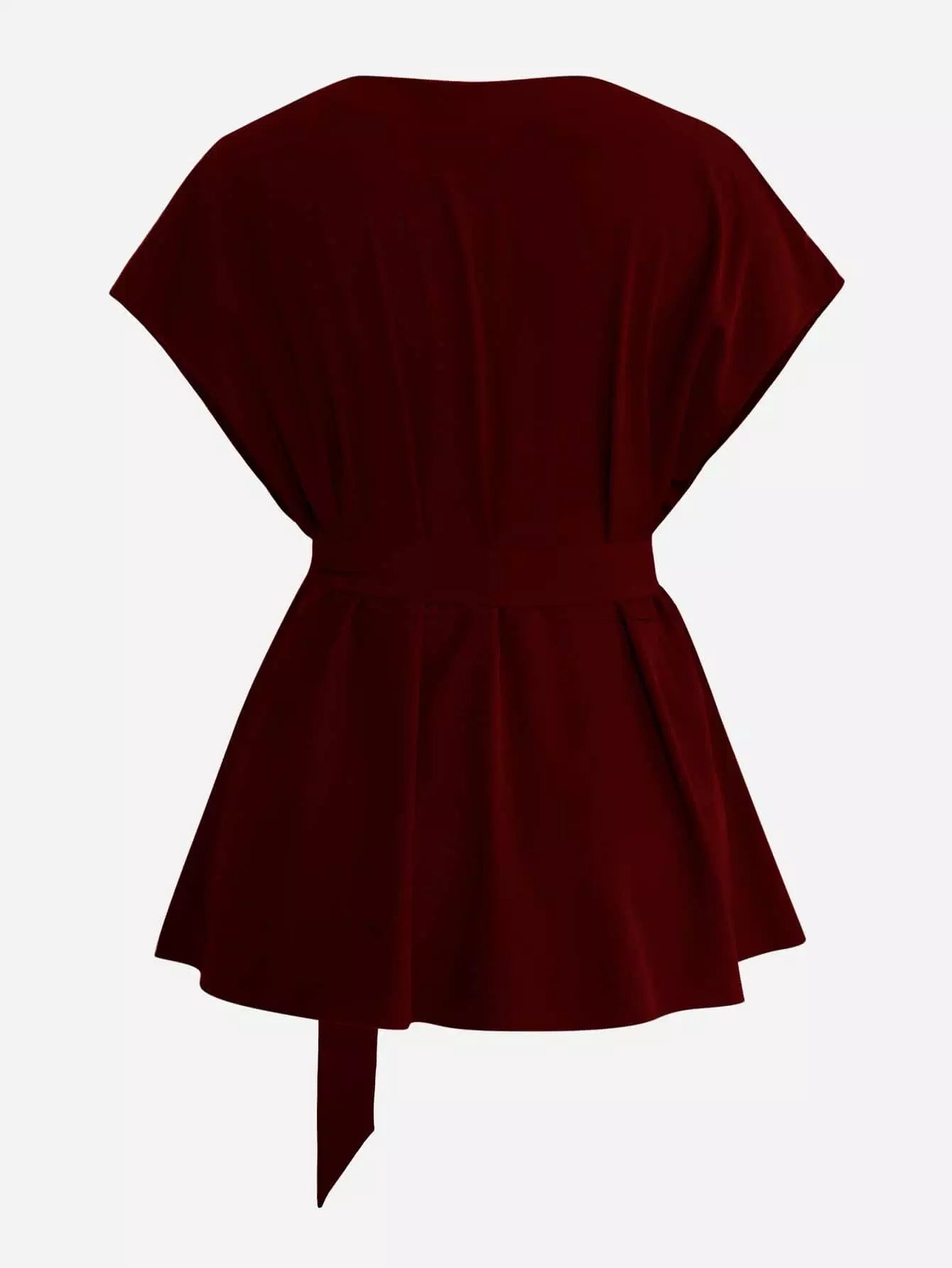Plus Solid Batwing Sleeve Blouse Without Belt